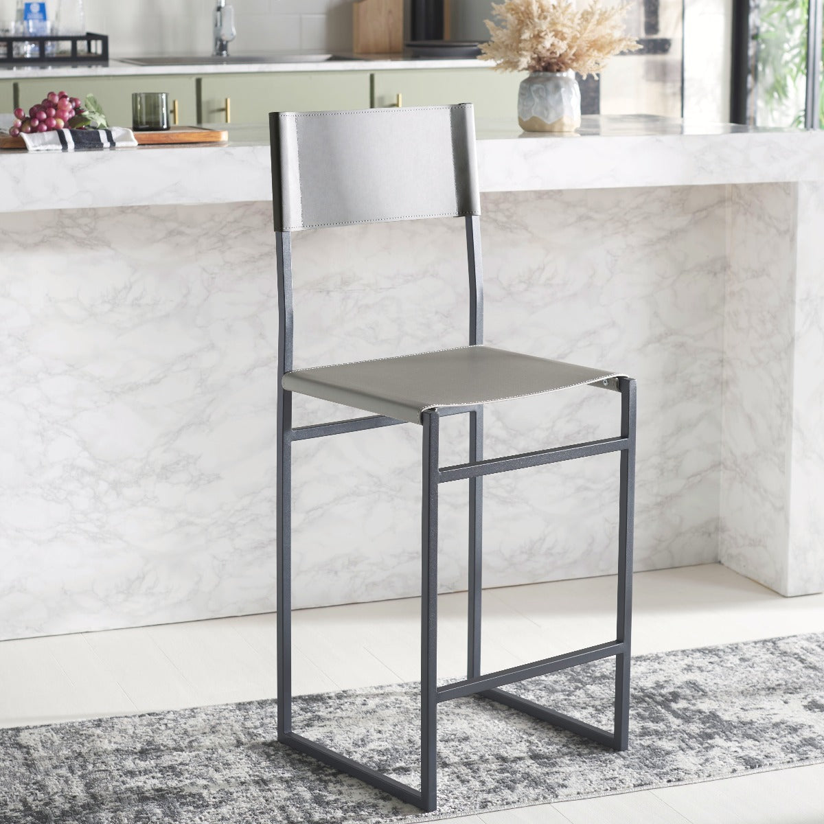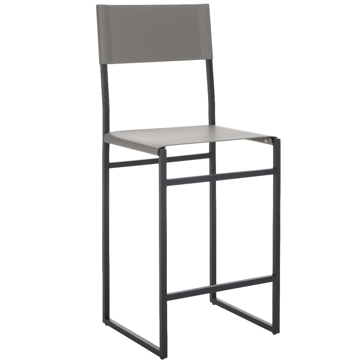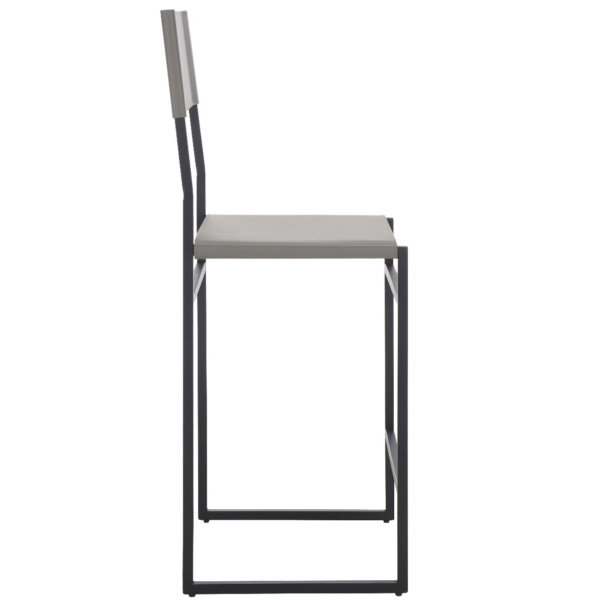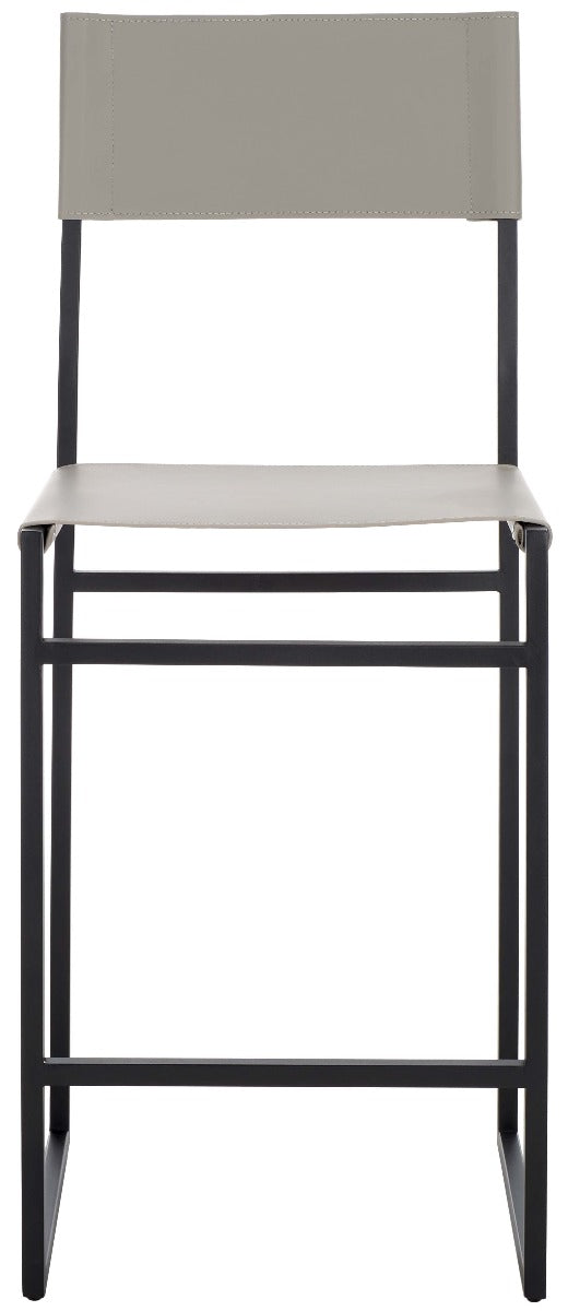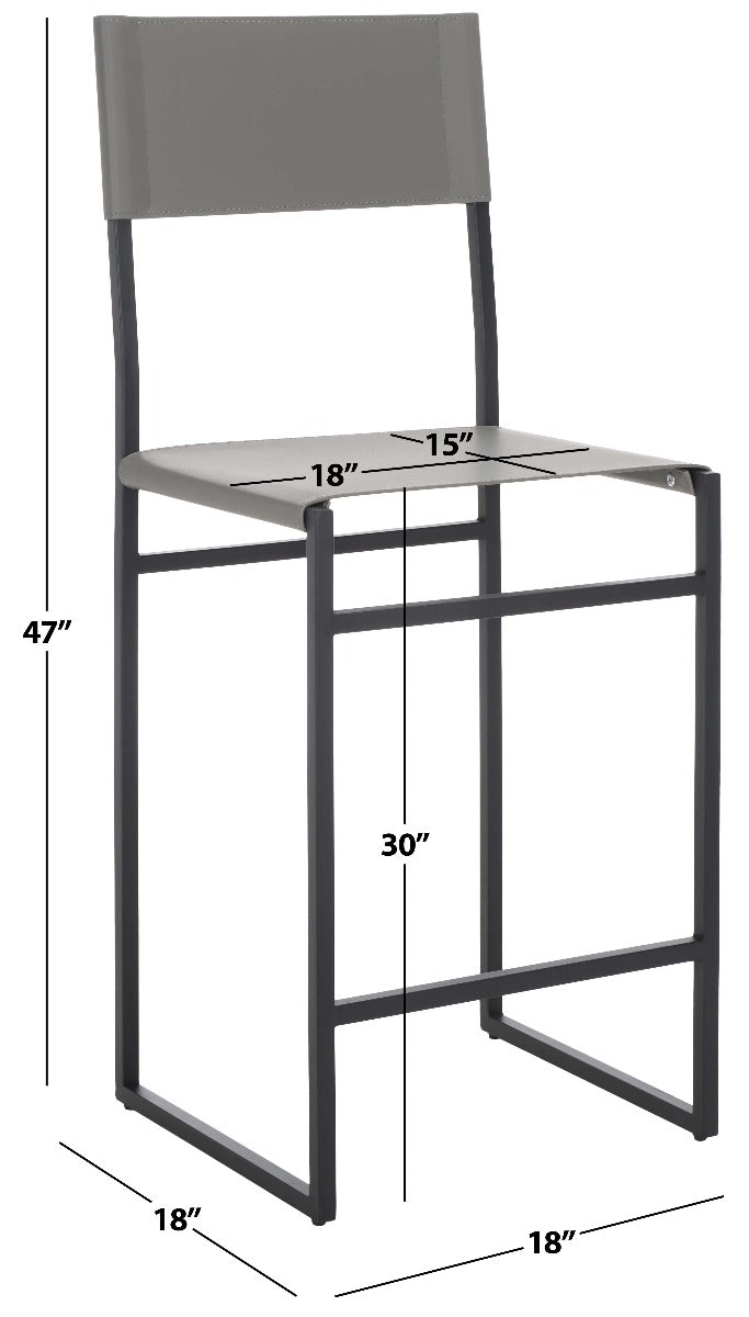 Give a sleek and stylish update to your home with our Layne counter stool. Our minimal and clean-lined stool stands out with a mid-century industrial vibe. Stunning regenerated leather wraps through and around its black metallic frame. Adorned in light grey leather, our versatile counter stool opens up any compact space with its sleek and minimal style. The stool is perfectly scaled to complement your kitchen counter, high dining areas, and work table.