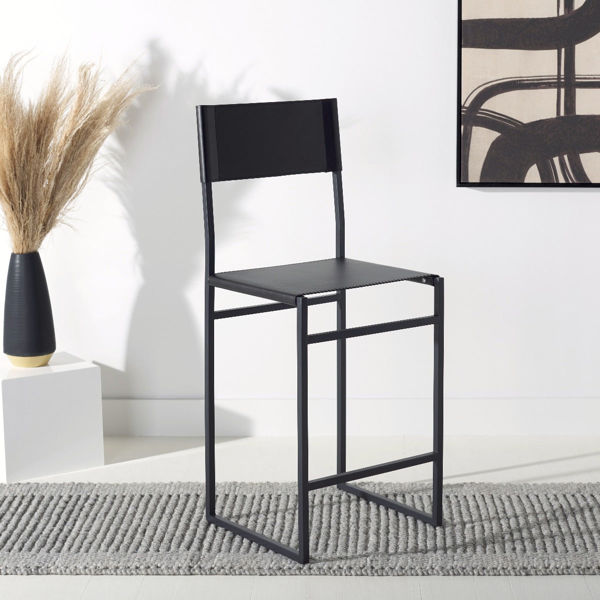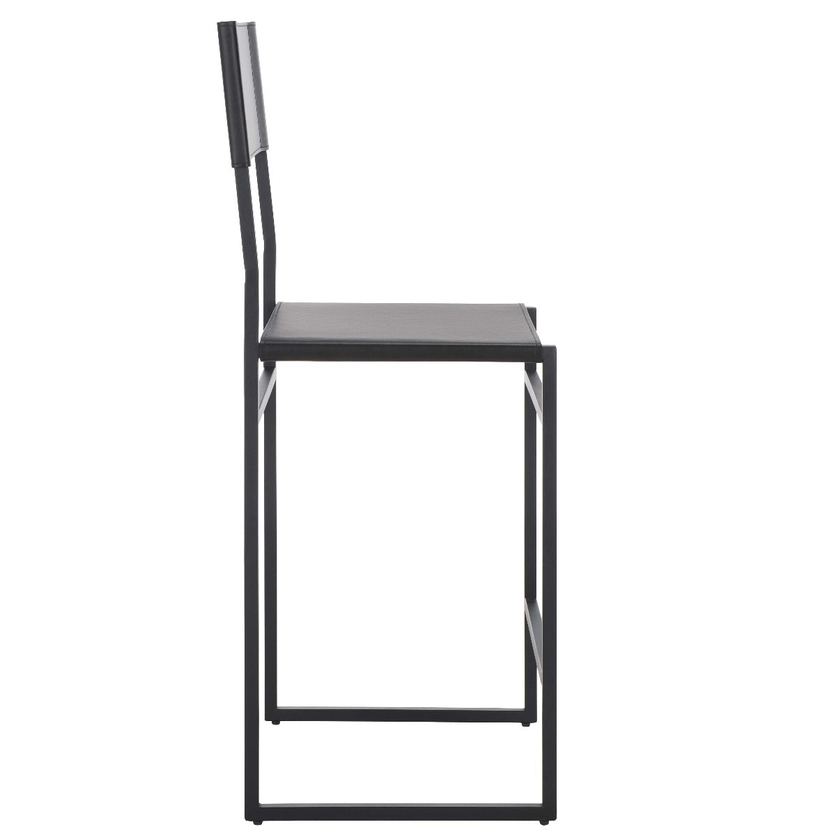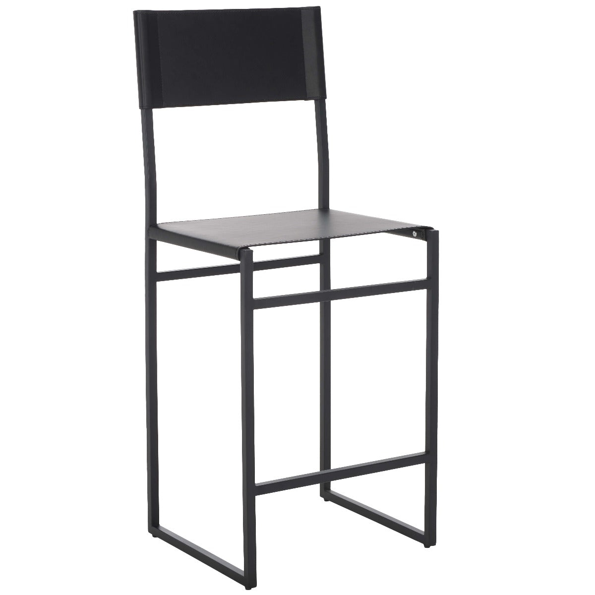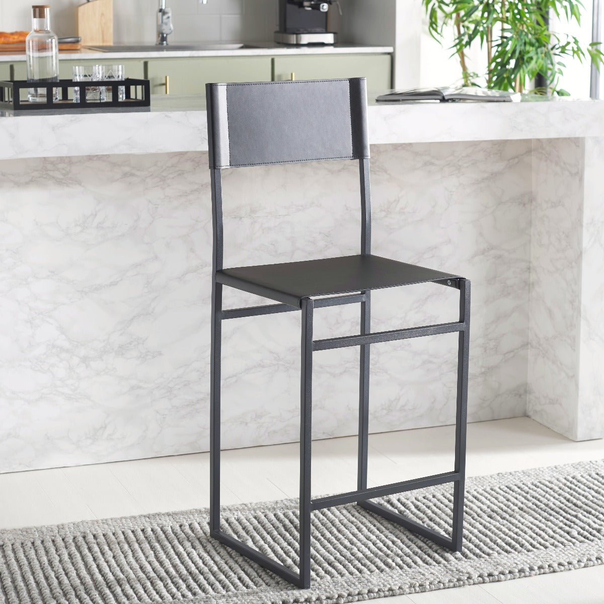 Give a sleek and stylish update to your home with our Layne counter stool. Our minimal and clean-lined stool stands out with a mid-century industrial vibe. Stunning regenerated leather wraps through and around its black metallic frame. Adorned in light grey leather, our versatile counter stool opens up any compact space with its sleek and minimal style. The stool is perfectly scaled to complement your kitchen counter, high dining areas, and work table.