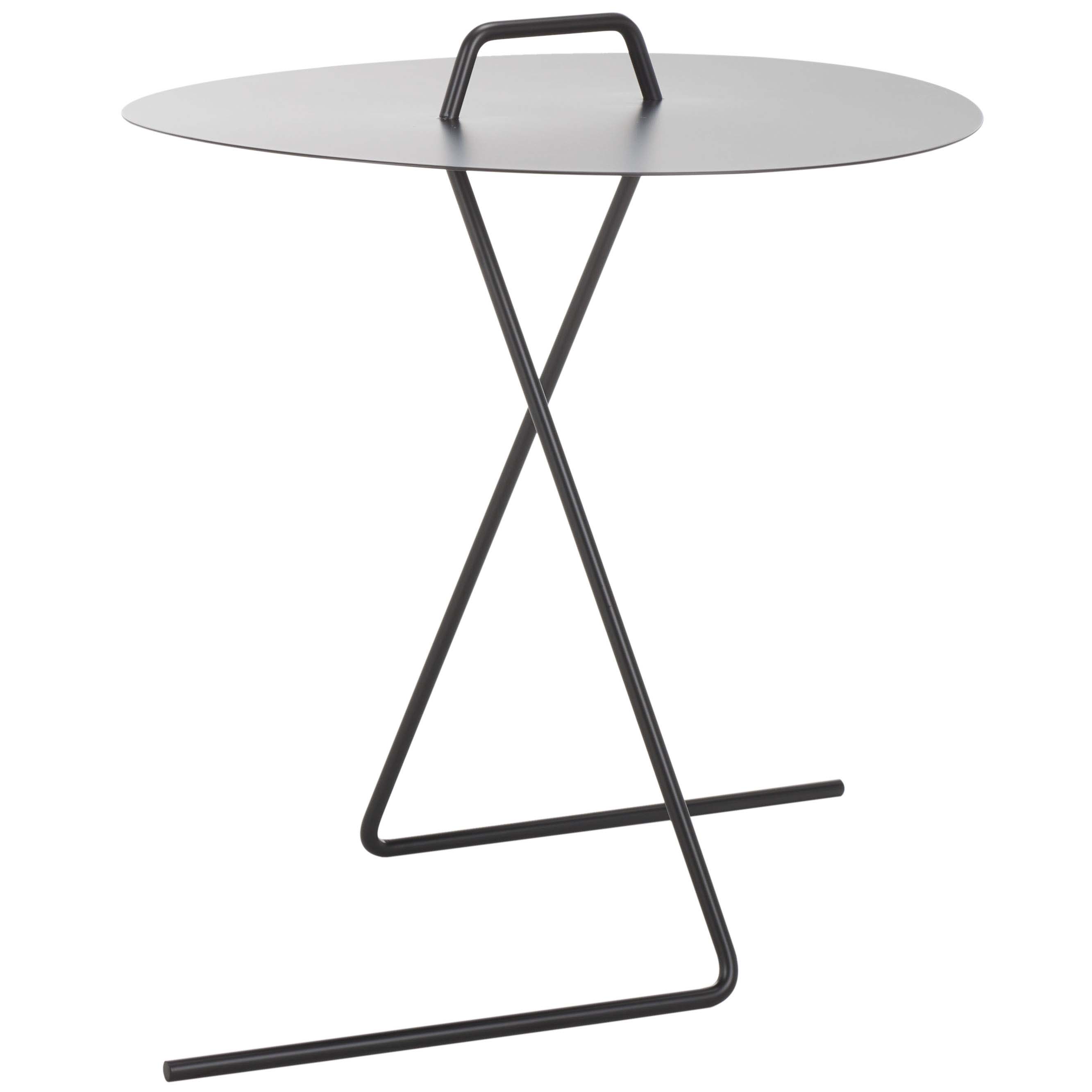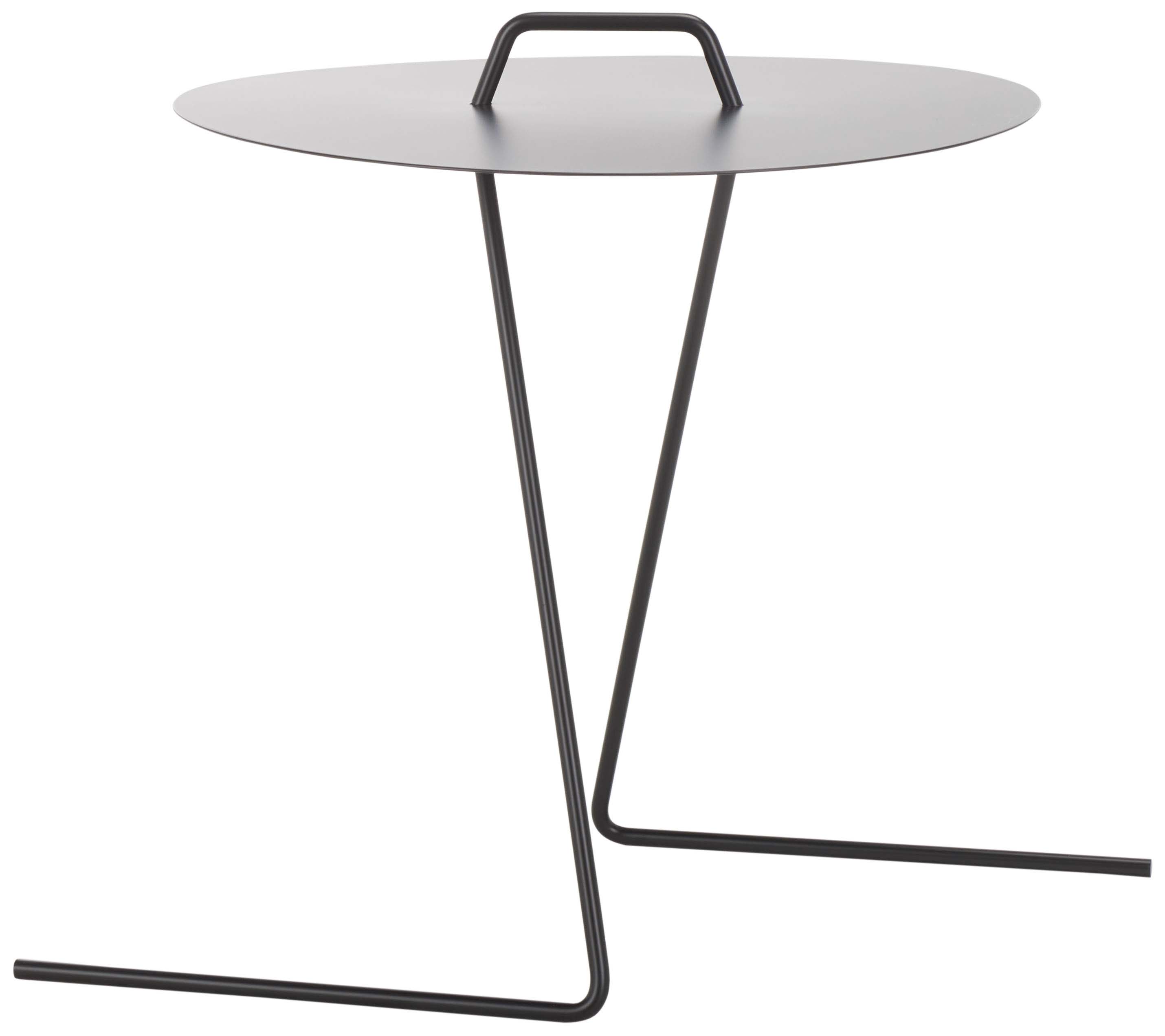 Update your home with our utterly sleek and functional Medalia side table. The refined design of our end table beautifully blends style and functionality. Its slender, angular legs poke through the round tabletop to deliver a stunning visual play and a distinct handle. Both portable and stylish, the end table adorns a black matte finish to lend contemporary flair to your home. With versatile styling potential, our end table allows you to display and keep your essentials within reach.
