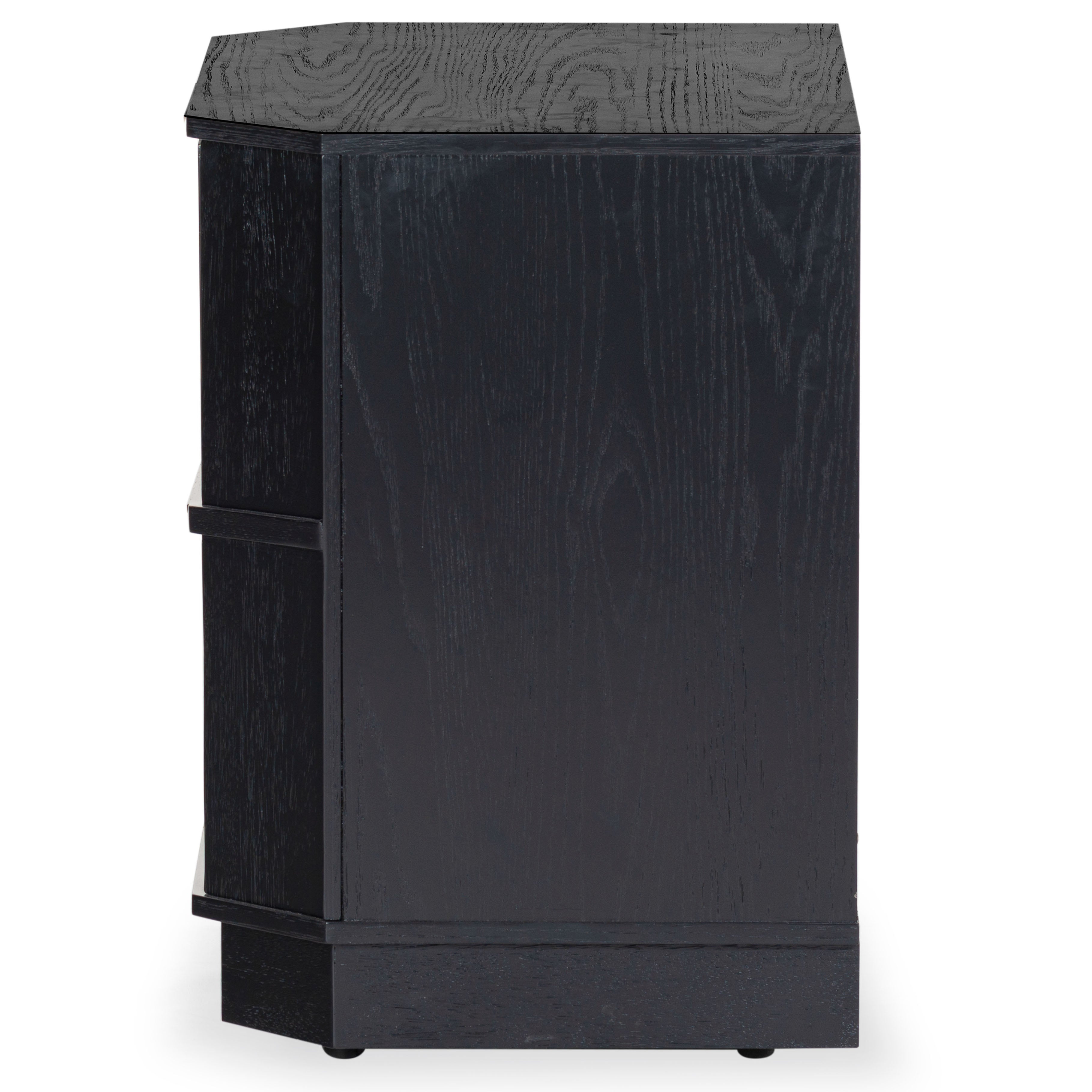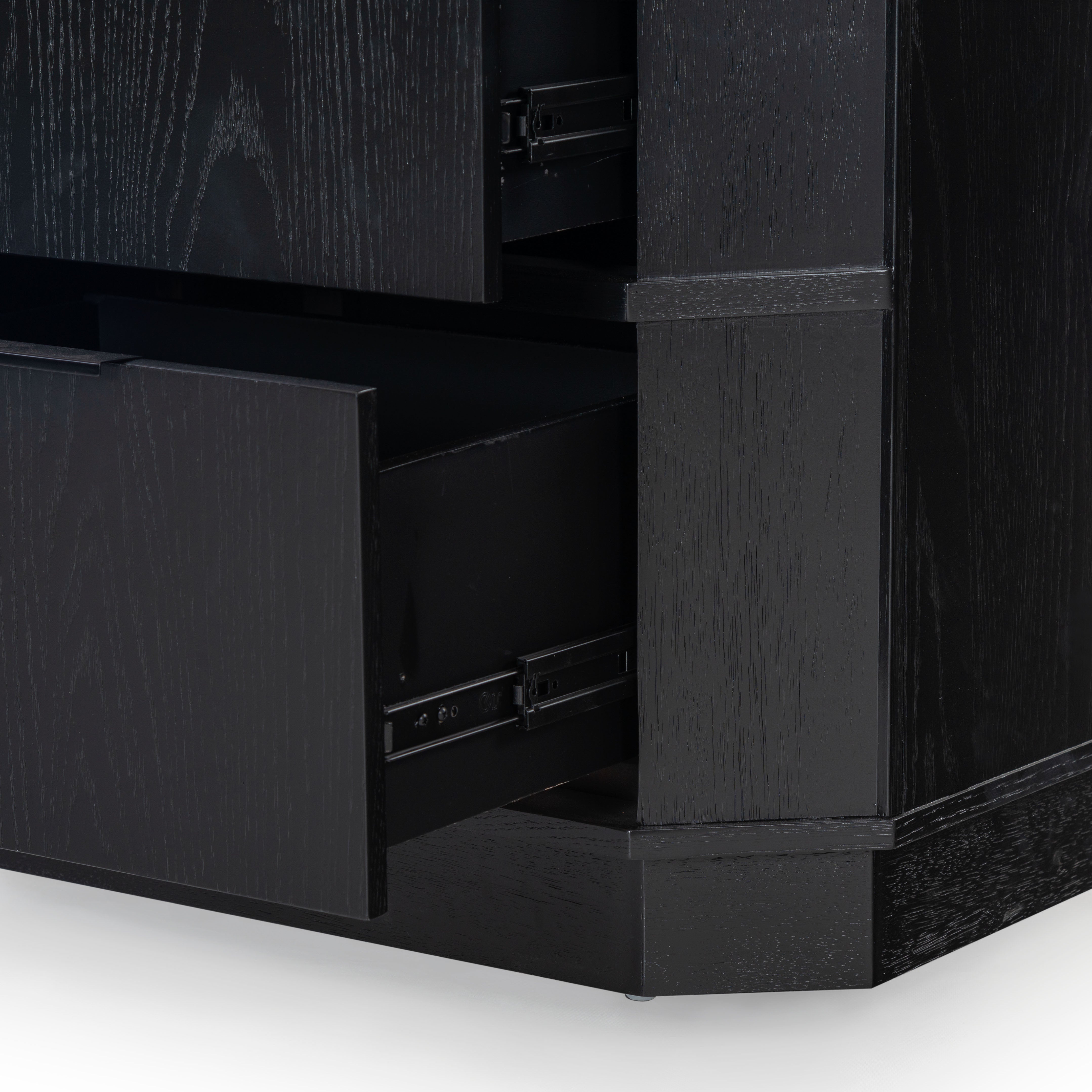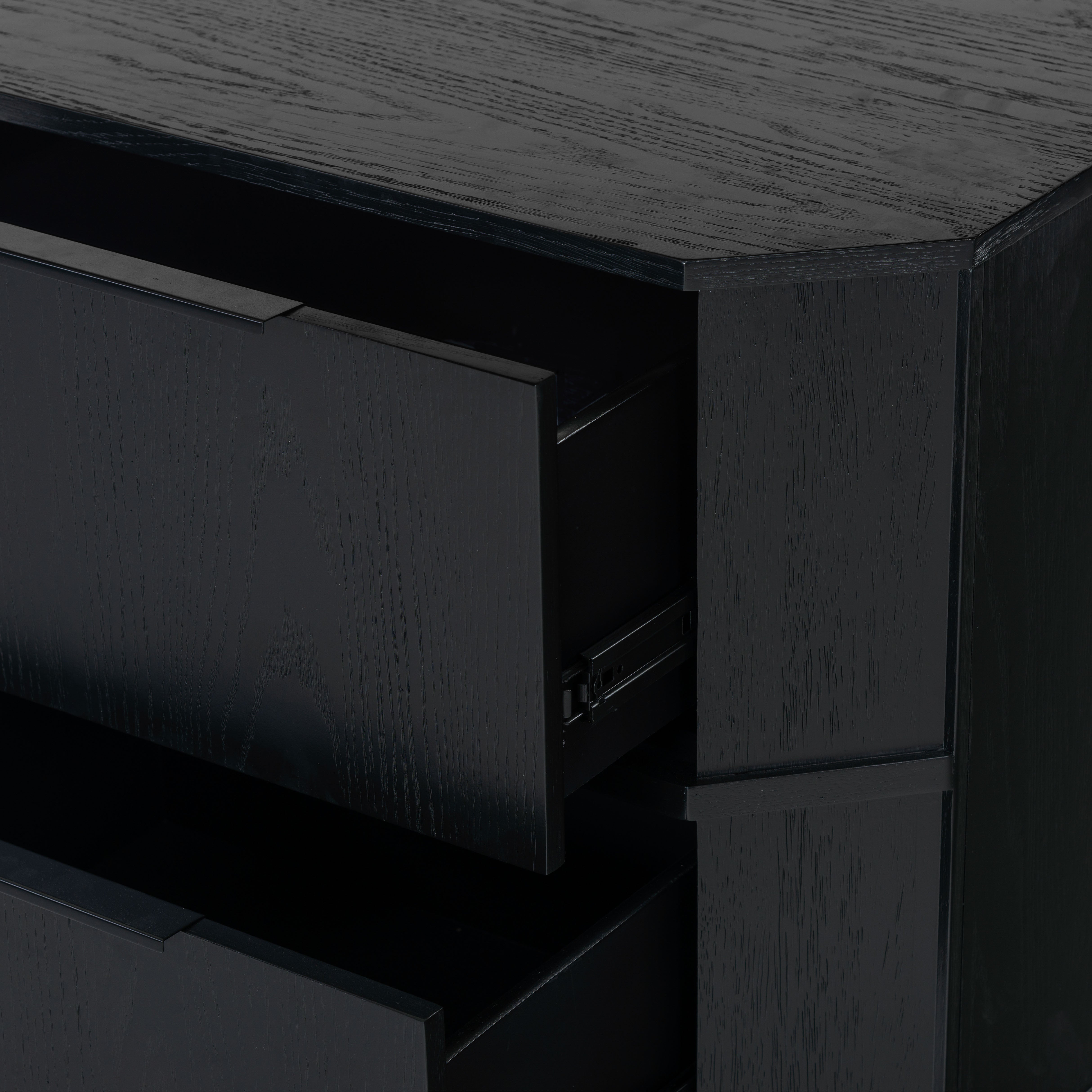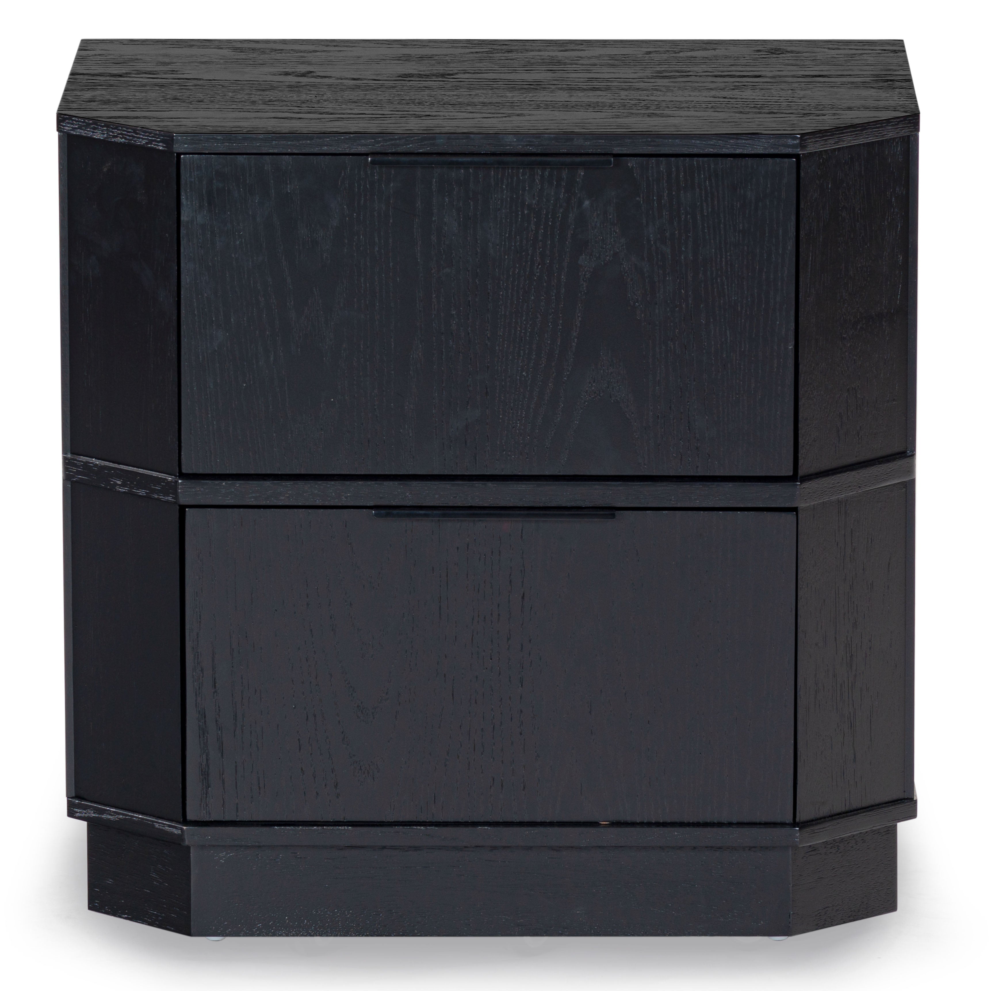 Introducing the Aerilyn Curved Front 2 Drawer Nightstand - a timeless addition to your living space. This nightstand stands out in a sophisticated black finish or medium oak. Crafted from a thoughtful combination of solid rubberwood, oak veneer, plywood and manufactured wood, this piece showcases strength and durability. Its curved front design and two spacious drawers enhance not only storage capacity but also its visual appeal. A smooth iron frame lends a modern touch to this classic piece, capturing the essence of contemporary style. This nightstand isn't just furniture - it's your statement of elegance. Welcome this versatile masterpiece into your home and bask in homely inspiration. Bring on the cozy night-time reading sessions!