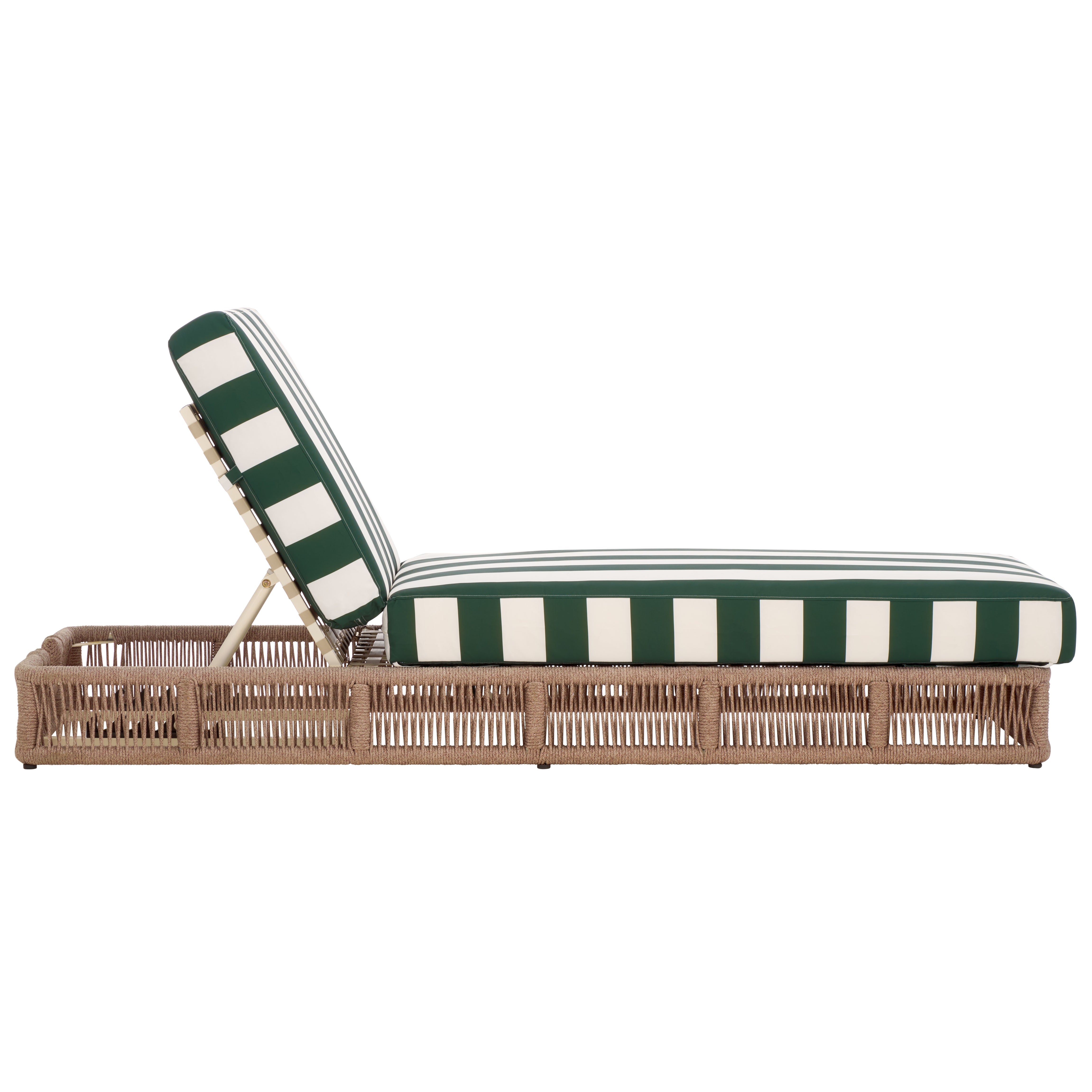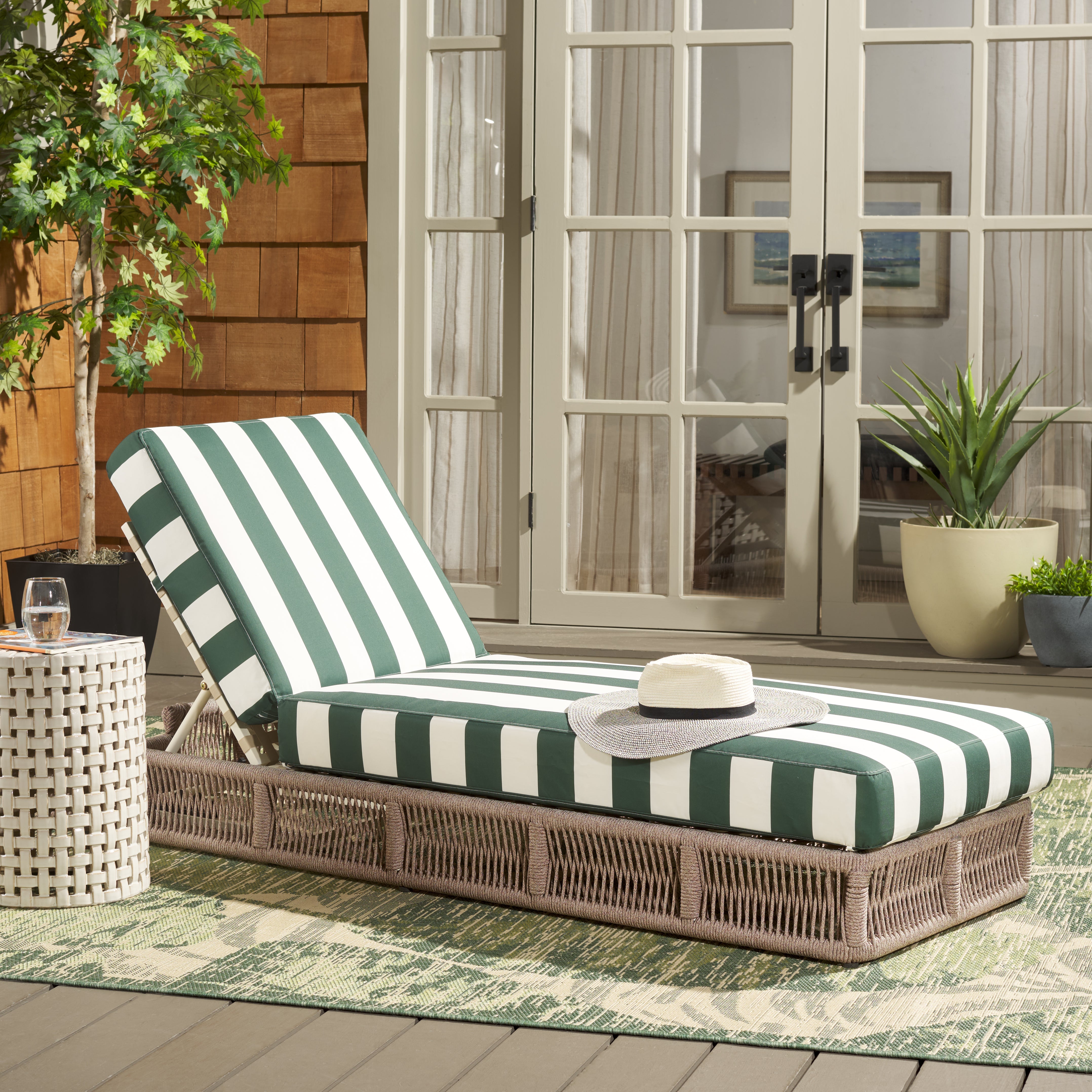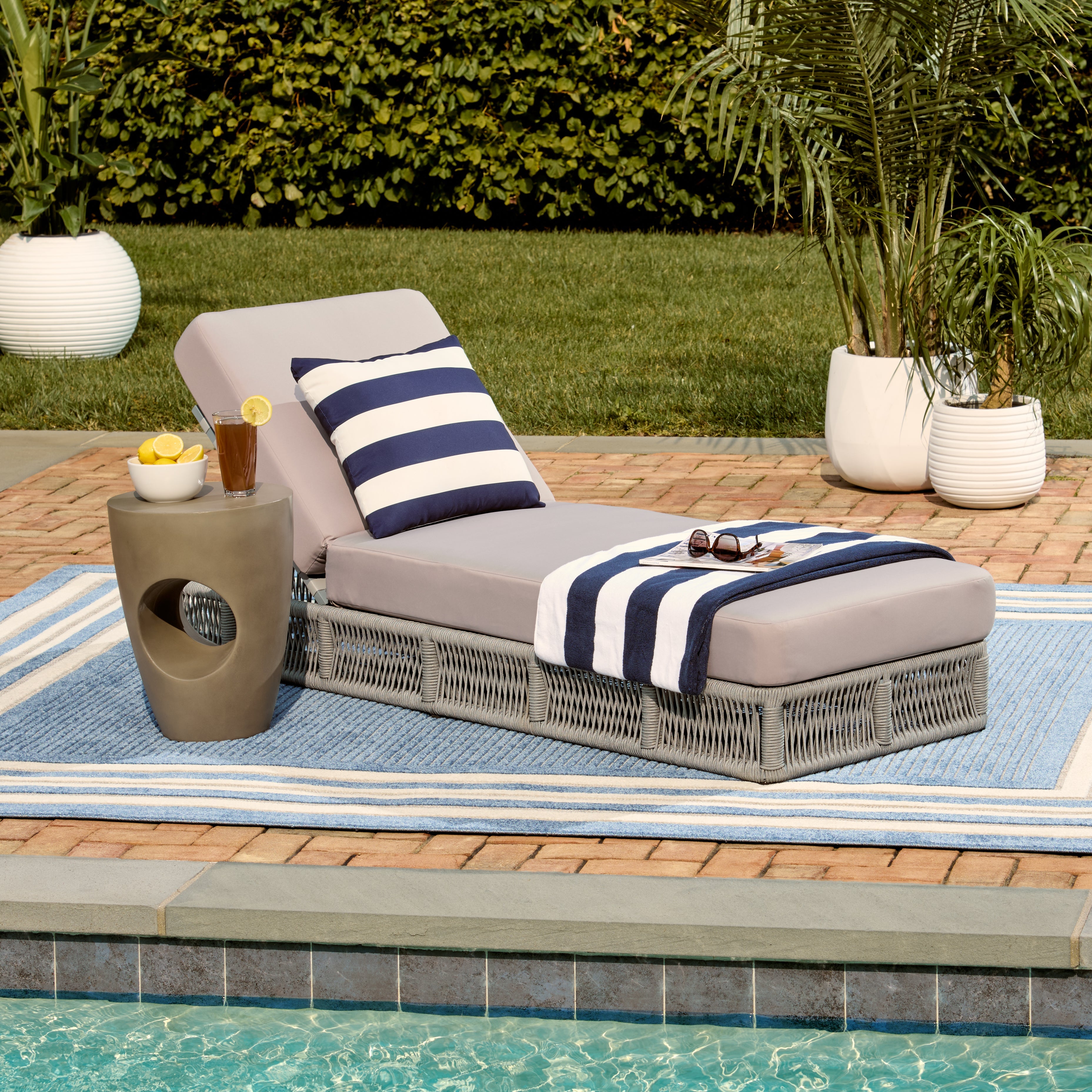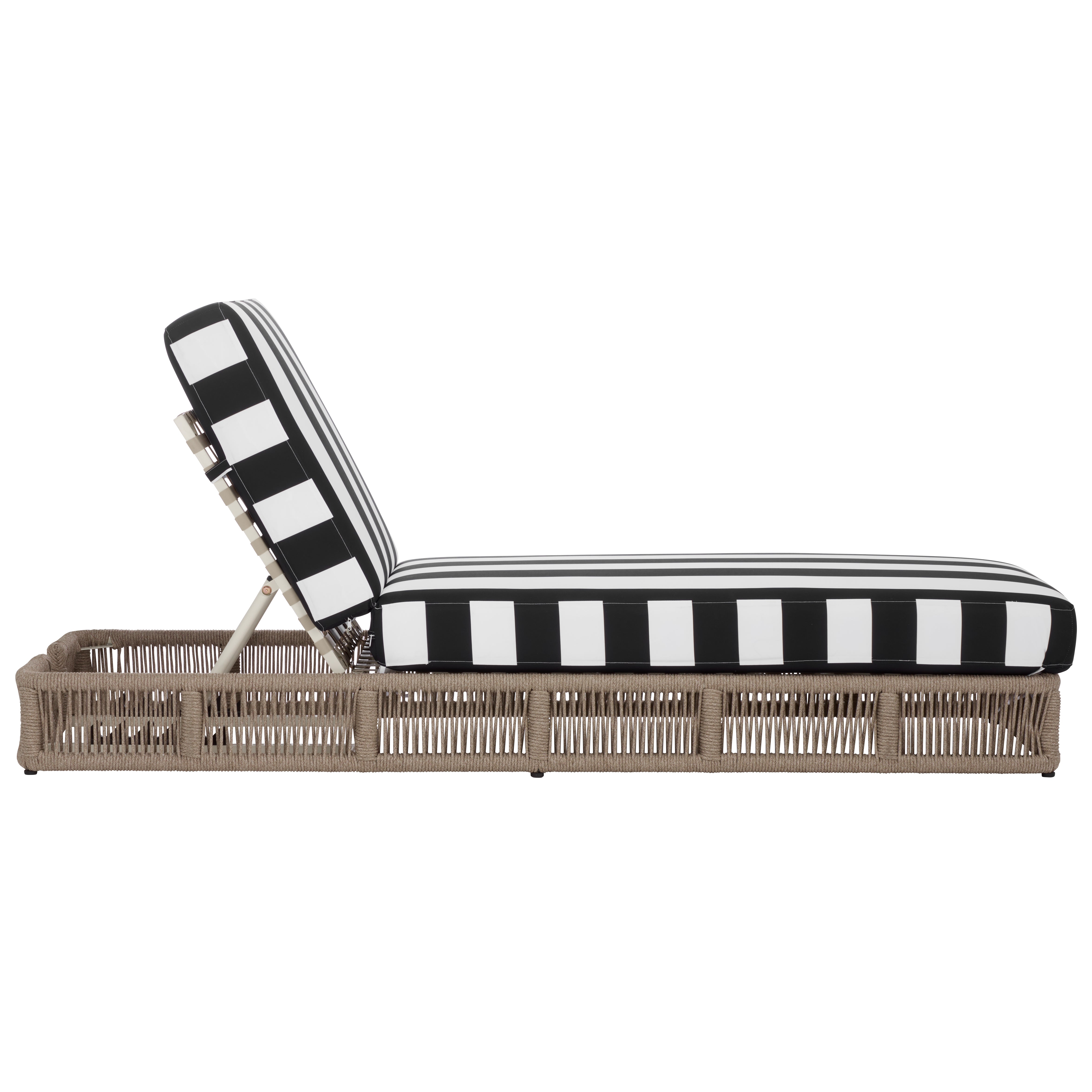 Transform your outdoors into a staycation oasis with this stunning Gillian Sun Lounger. Coastally styled with woven heather tan rope details and a matching black striped cushion, Gillian is the ultimate epitome of relaxation.