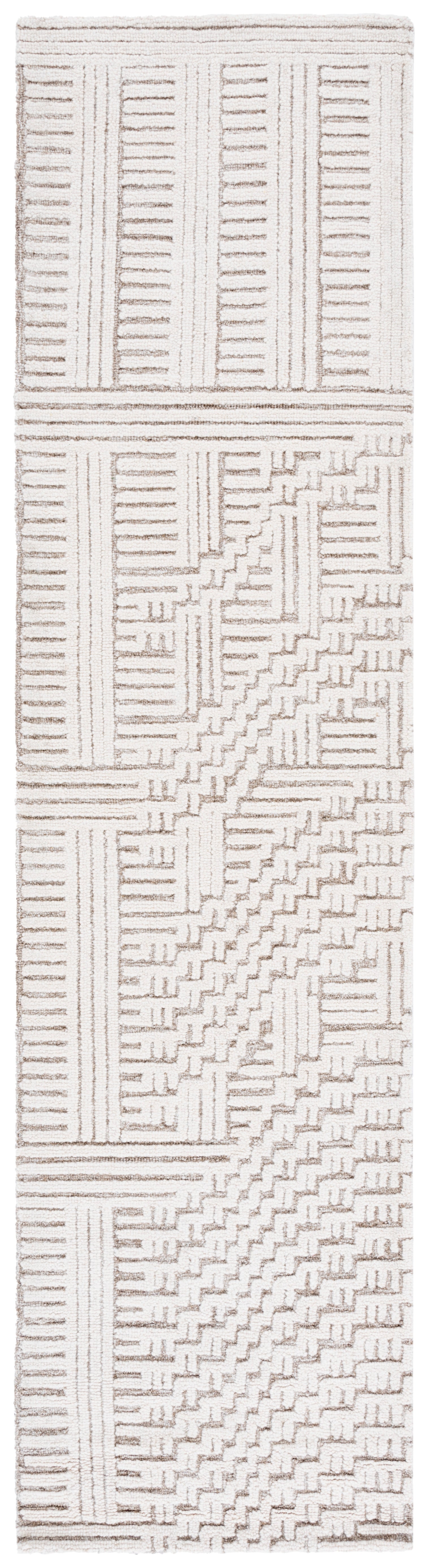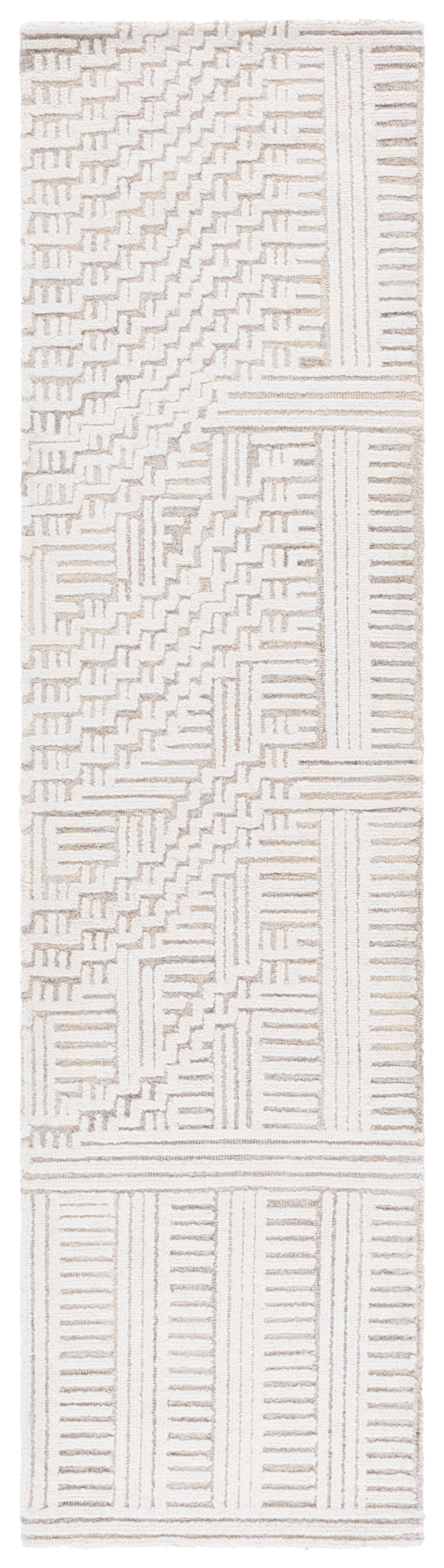 Introducing the epitome of modern elegance, our Hand Tufted Wool-Cotton Runner Rug in Natural/Ivory. This exquisite piece is meticulously crafted in India with an intricate geometric pattern that instantly draws the eye, offering a sophisticated accent to any hallway or elongated space. With a size of 2 feet 3 inches by 9 feet, this runner rug provides an ample area of style and comfort.