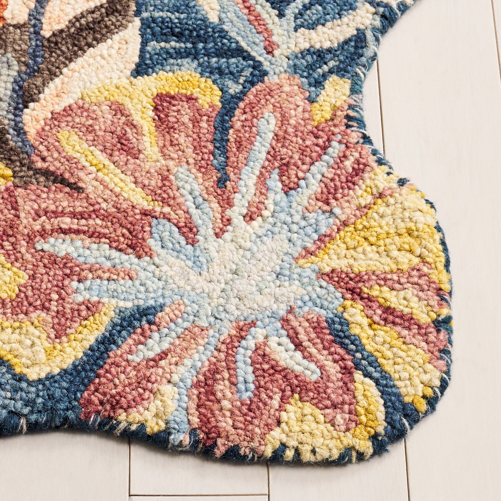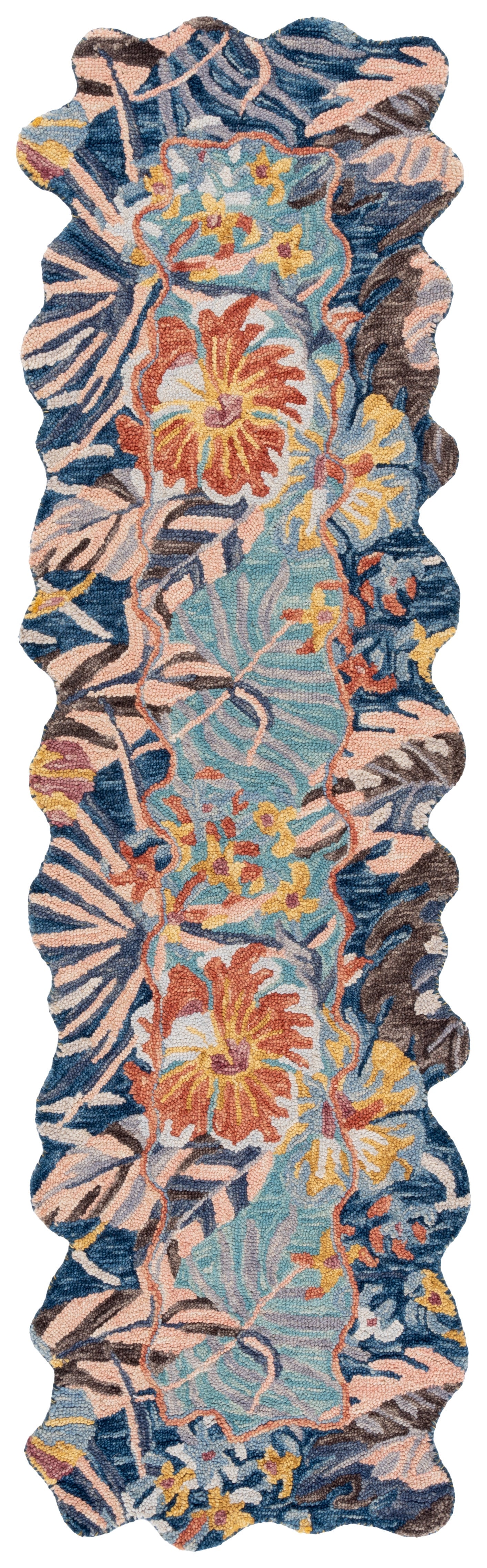 Indulge in the exquisite appeal of this meticulously hand-tufted runner rug, sized 2'-3" X 8'. Made with an artful blend of 85% wool and 15% cotton, this aesthetically pleasing rug will provide your home with years of style and comfort. Masterfully constructed in India, it boasts an intricate floral design awash in a refreshing blend of navy and turquoise hues that lend an exquisite vibrancy to any room. Its 1/2'' height offers plush comfort underfoot, while its timeless design and exceptional craftsmanship make it a prime choice for taste-conscious homeowners. Give any area of your house a touch of class with this luxurious runner rug.