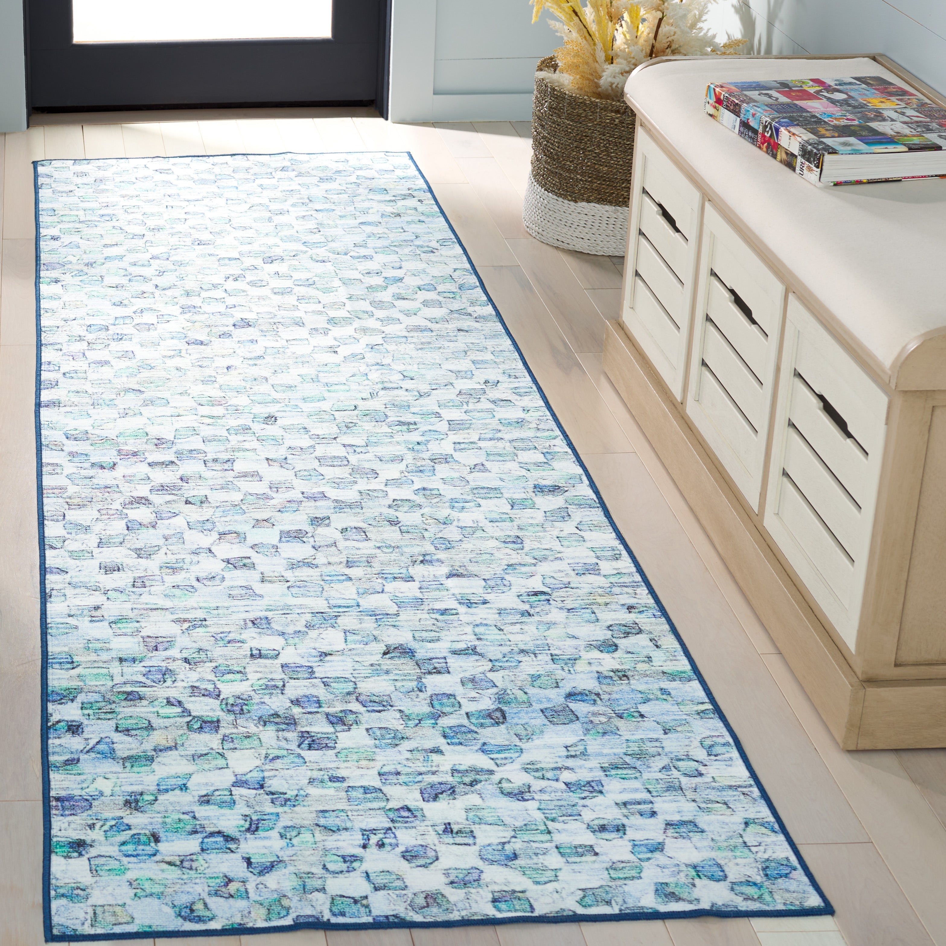 Developed for convenience, our runner is not only washable but comes with a slip-resistant feature, offering a safe and practical solution for your flooring needs. Whether it graces your hallway or adorns your living space, this runner, made in China, strikes the perfect balance between style and function. Choose this stunning accessory to add a splash of artful design and plush comfort to your cherished home environment.