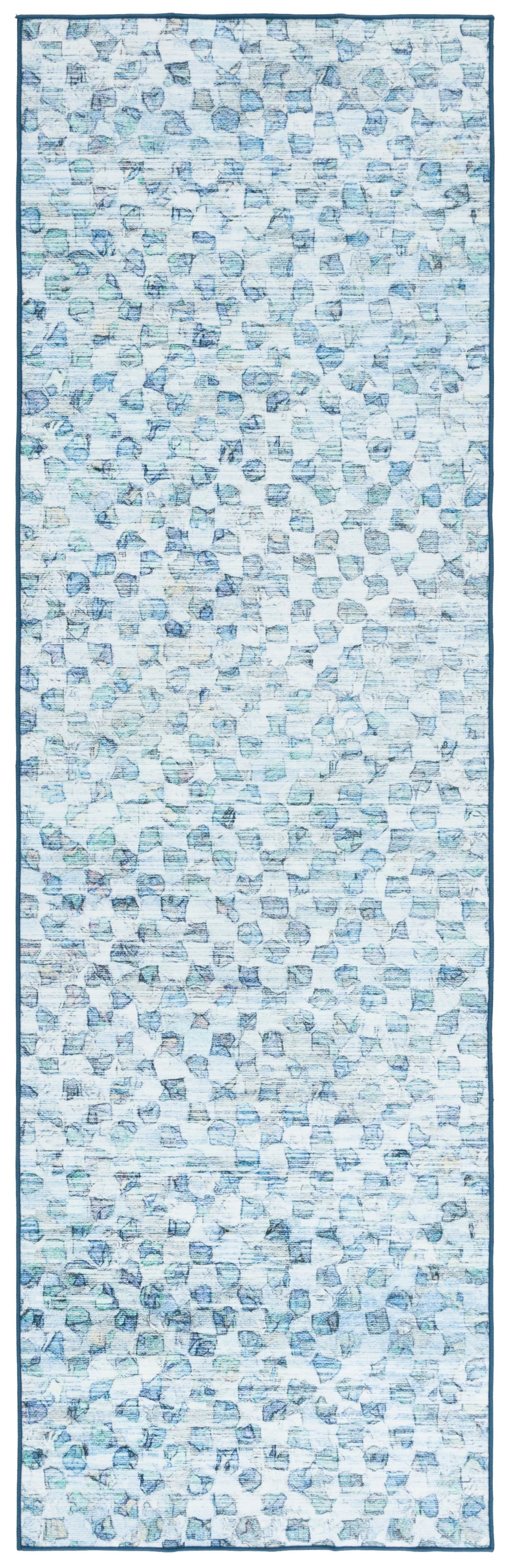Transform your living space with the sophisticated charm of our transitional runner area rug, sized 2'-6" X 8', and finished in a harmonious blend of grey and aqua hues. Crafted with the utmost precision using a Power Loomed technique, this exquisite piece boasts a durable construction of high-quality polyester, ensuring long-lasting beauty and ease of care.