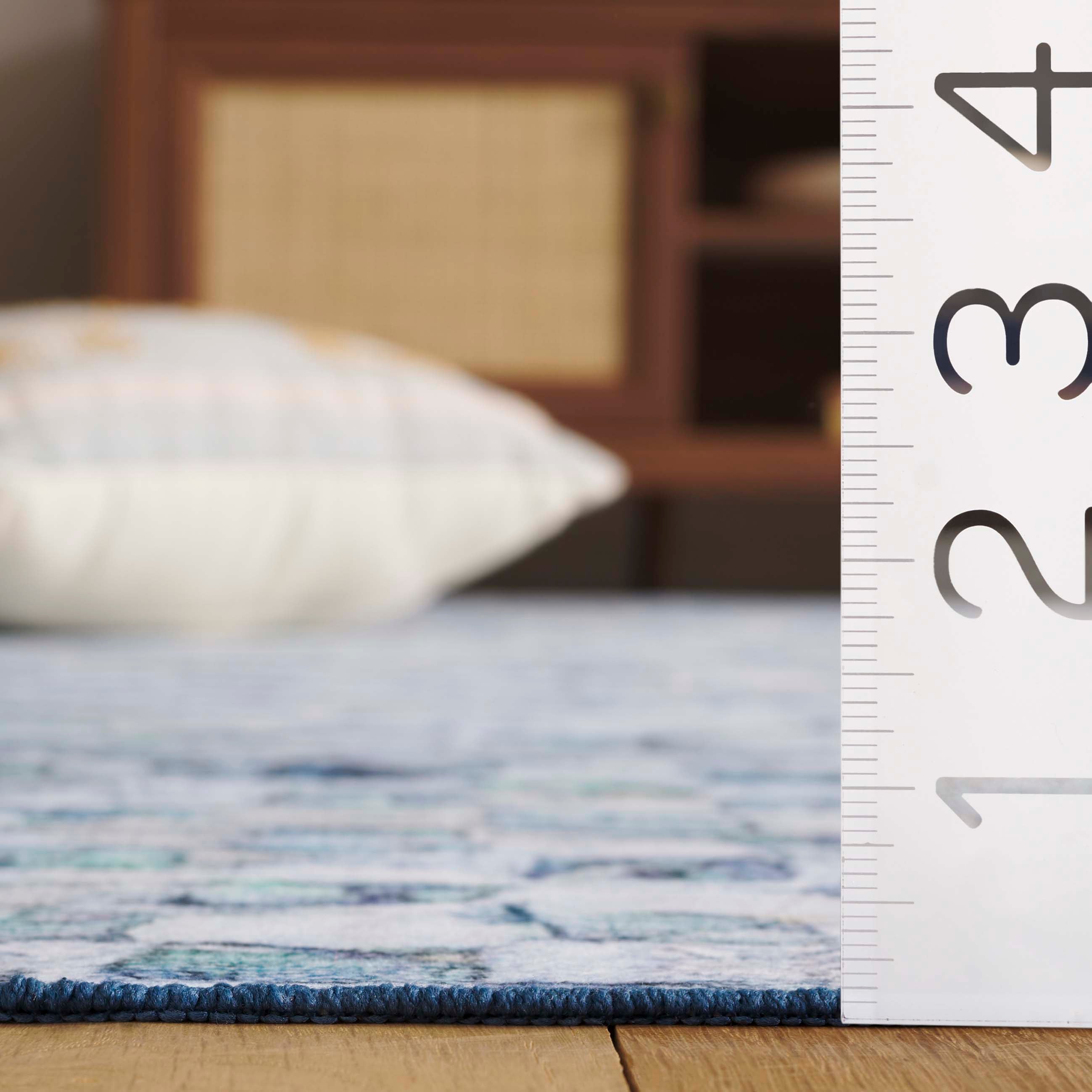 Created with modern living in mind, this runner features a modest pile height of 1/8", making it a perfect addition to high-traffic areas or underneath furniture. The intricate design echoes a timeless yet contemporary aesthetic drawn from the artful blend of colors in the pattern you see before you, infusing your home with an air of elegance and sophistication.
