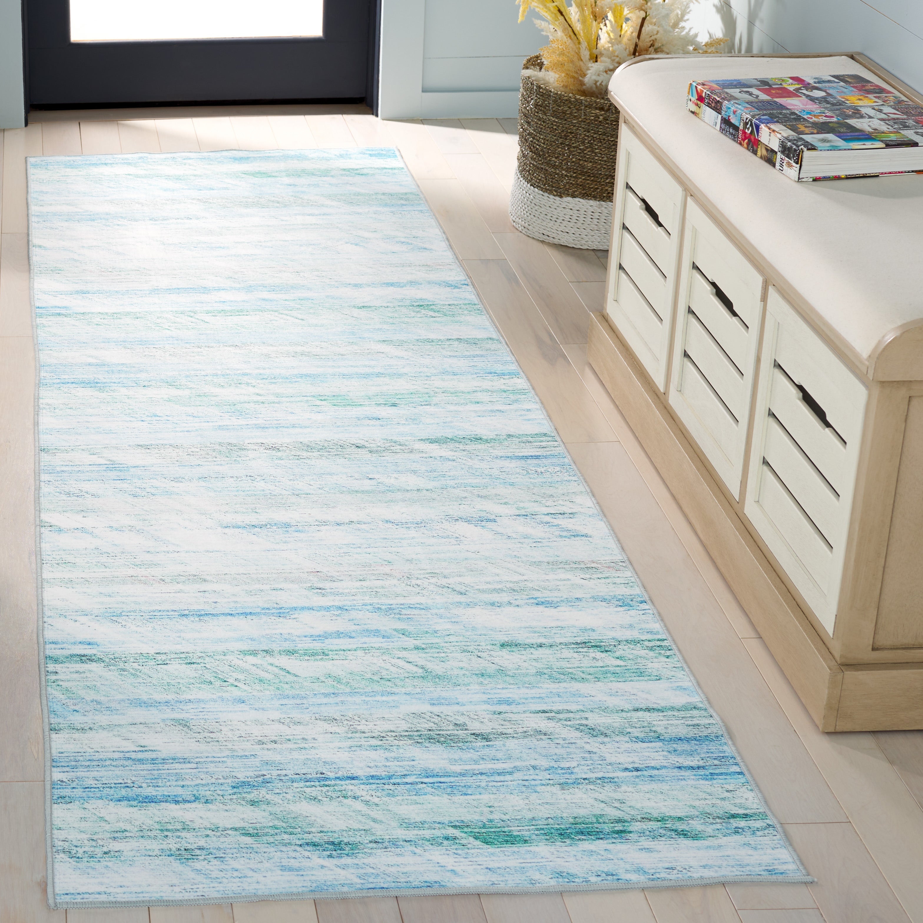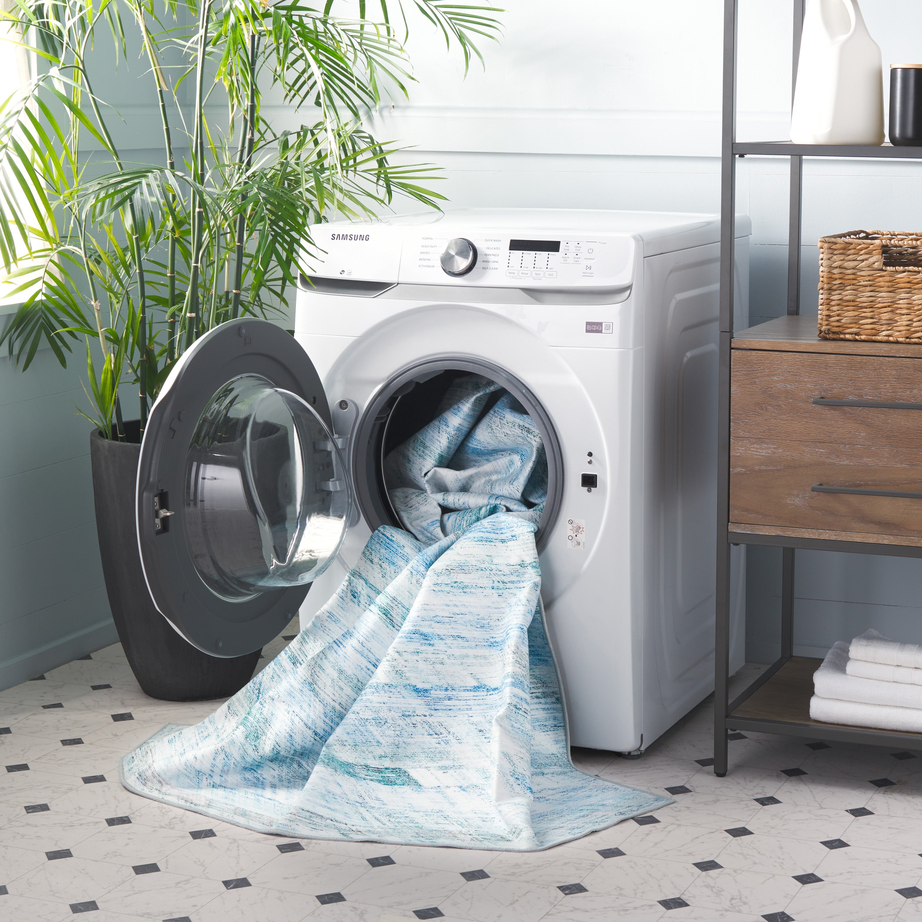 Whether it's the splash of cool aqua hues to complement your modern decor or the versatile grey tones to balance more vibrant elements, this area rug promises to be a visually compelling and pragmatic addition to any interior. Its harmonious design and practicality are sure to make it a focal point in your home for years to come.