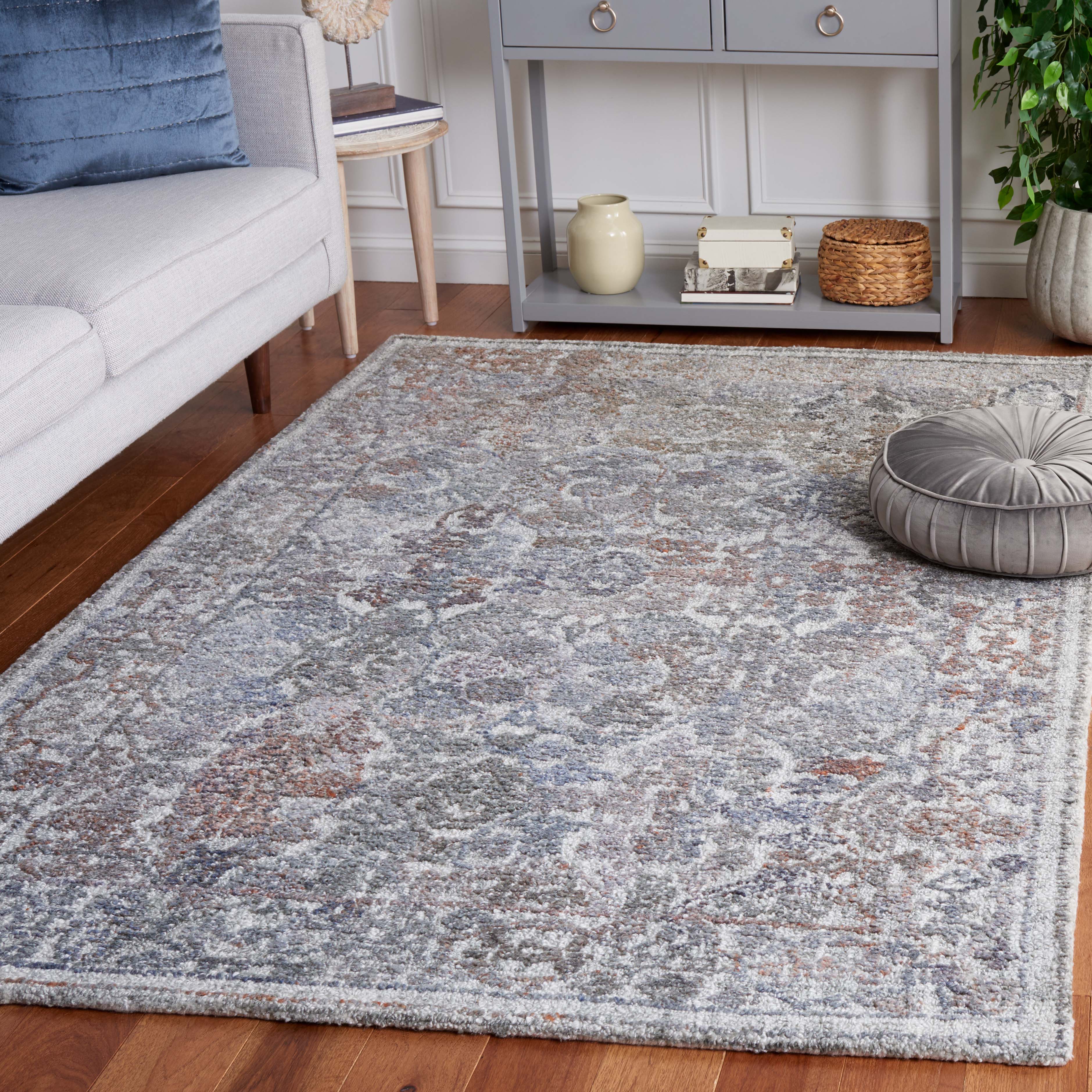 Measuring 2'-3" X 8', this rug features a generous height of 1/2", creating a plush underfoot experience. The intricate pattern, inspired by the image, showcases a harmonious blend of rust and grey hues, resonating with a timeless charm that complements a variety of interior designs.