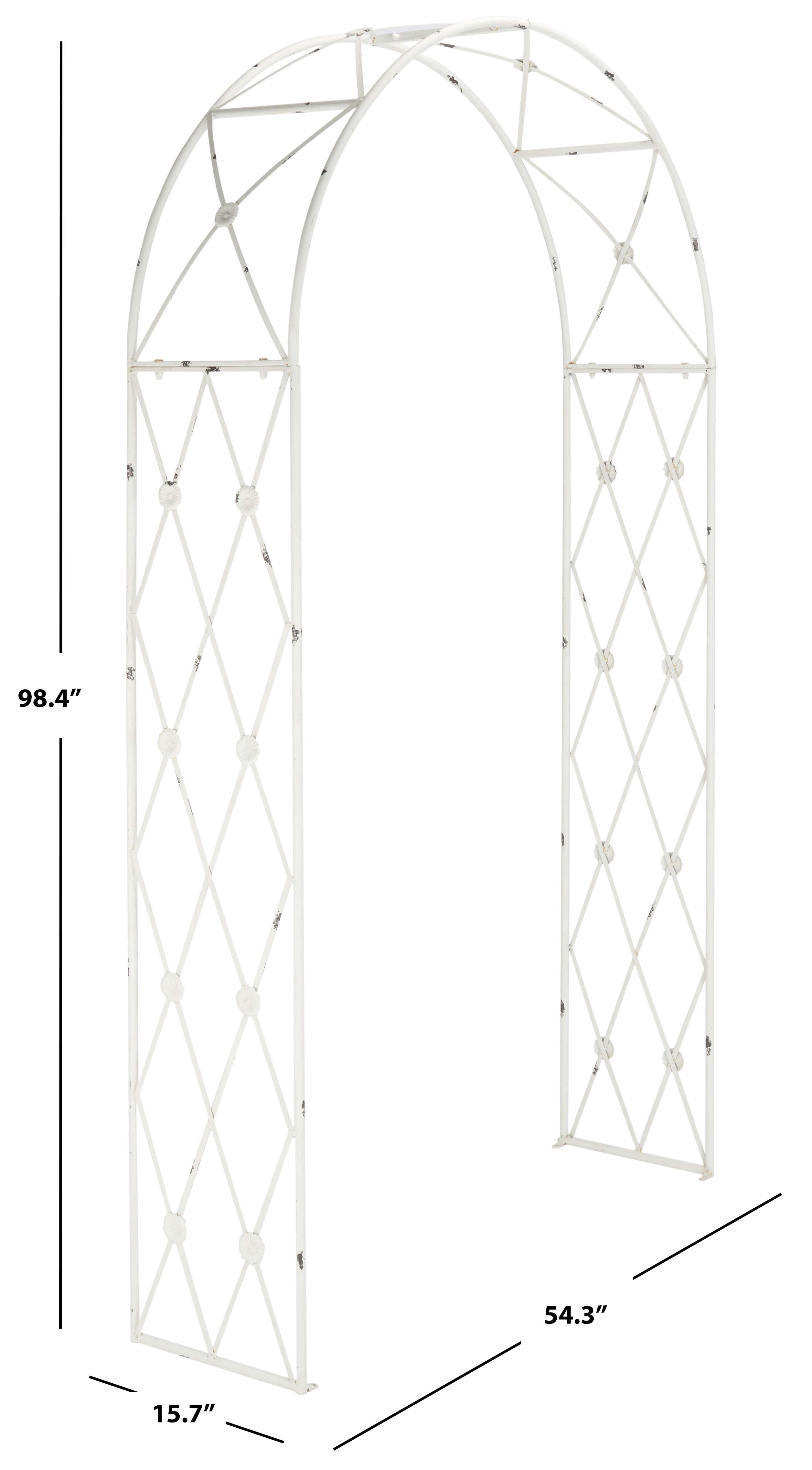 Create an elegant and inviting garden display with our Atticus archway. Adorned with elegant classic details, the arbor adds definition and charm to any outdoor space. Its iron latticework allows plants and vines to weave and grow seamlessly upon the arch. Featuring an antique white finish, our archway ages beautifully to grace your garden for years to come. It is the perfect way to frame the entrance to a garden, announce the beginning of a walkway, or create a stunning display of climbing roses.