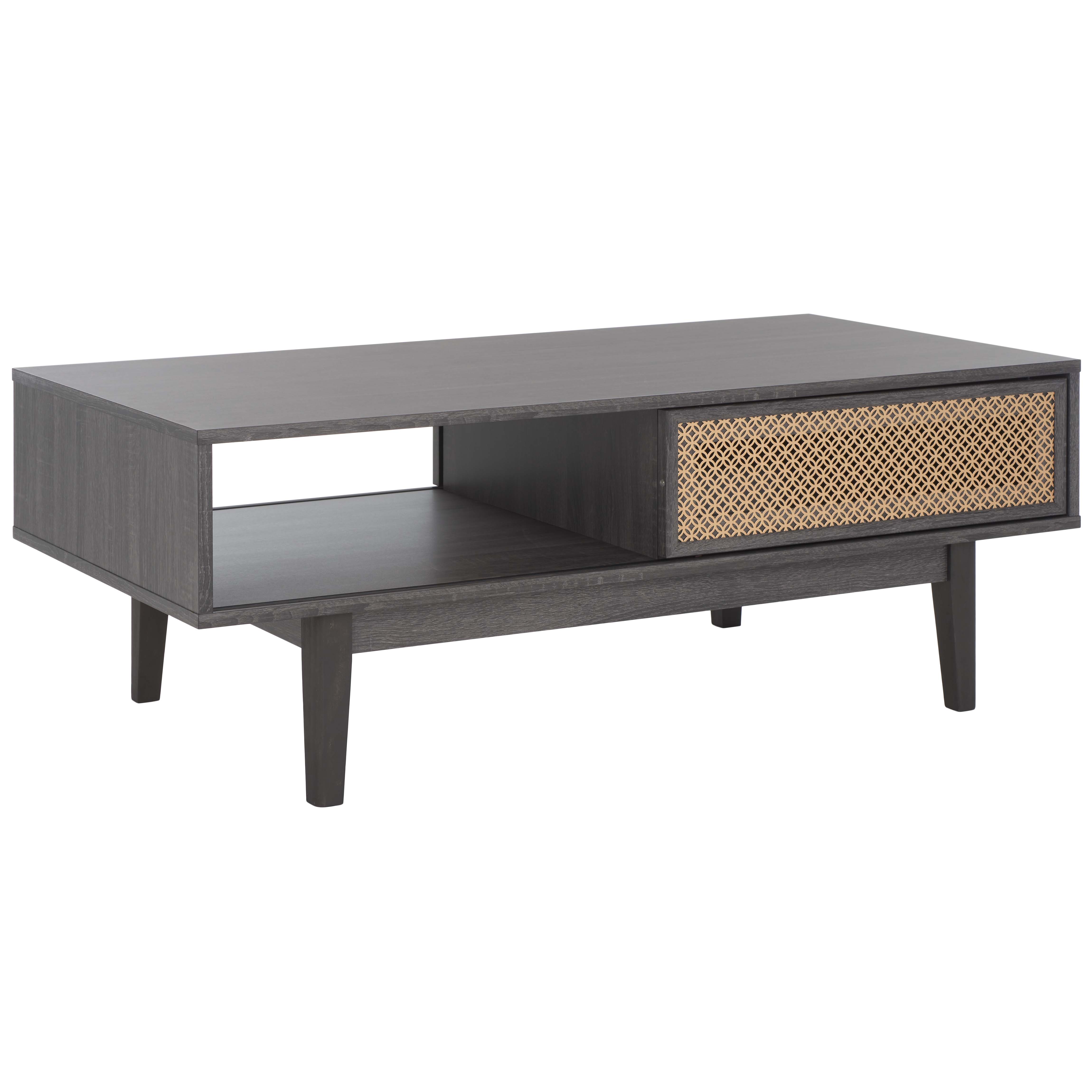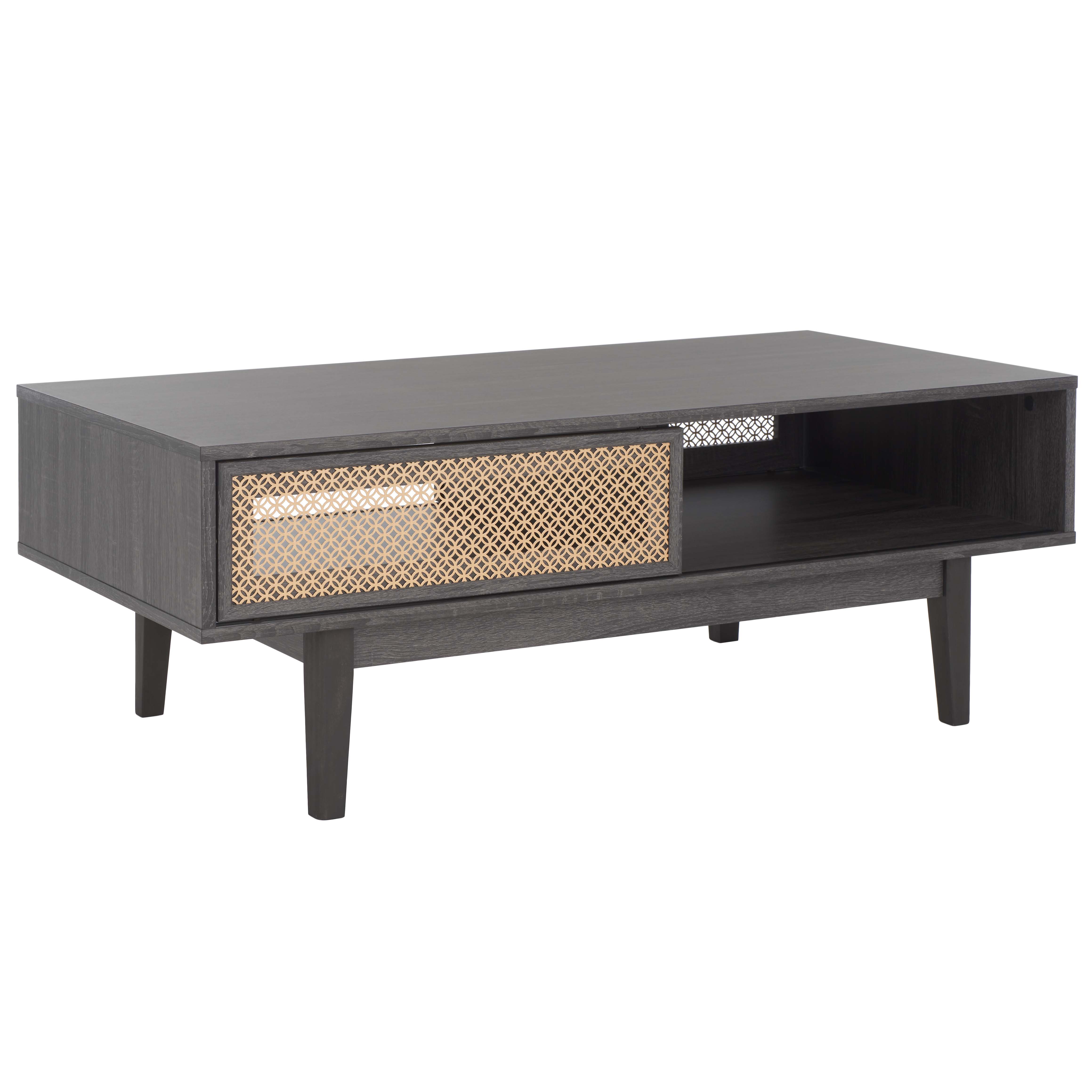 Bring elevated style and functionality to your living space with our stunning Ceu coffee table. A streamlined design and mixed material elegance lend a chic and inviting presence to the coffee table. Its sleek, rectangular tabletop and tapered legs vouch for a modern appeal. It highlights the rich grains of wood to create a stunning contrast with the intricate gold metal work to offer a refined touch of luxury. Sophisticated and detail-rich, our coffee table features two sliding cabinets to organize and keep your essentials within easy reach.