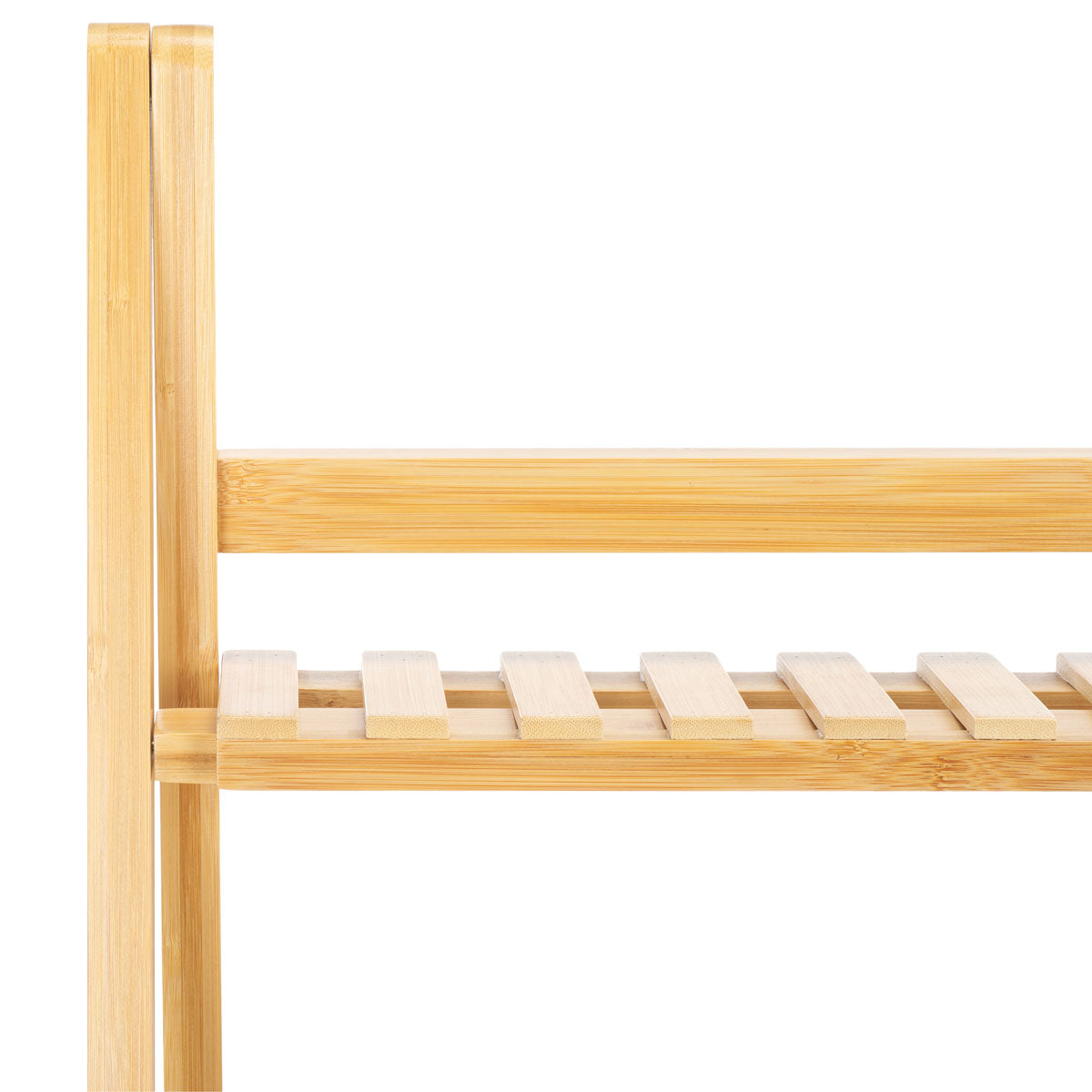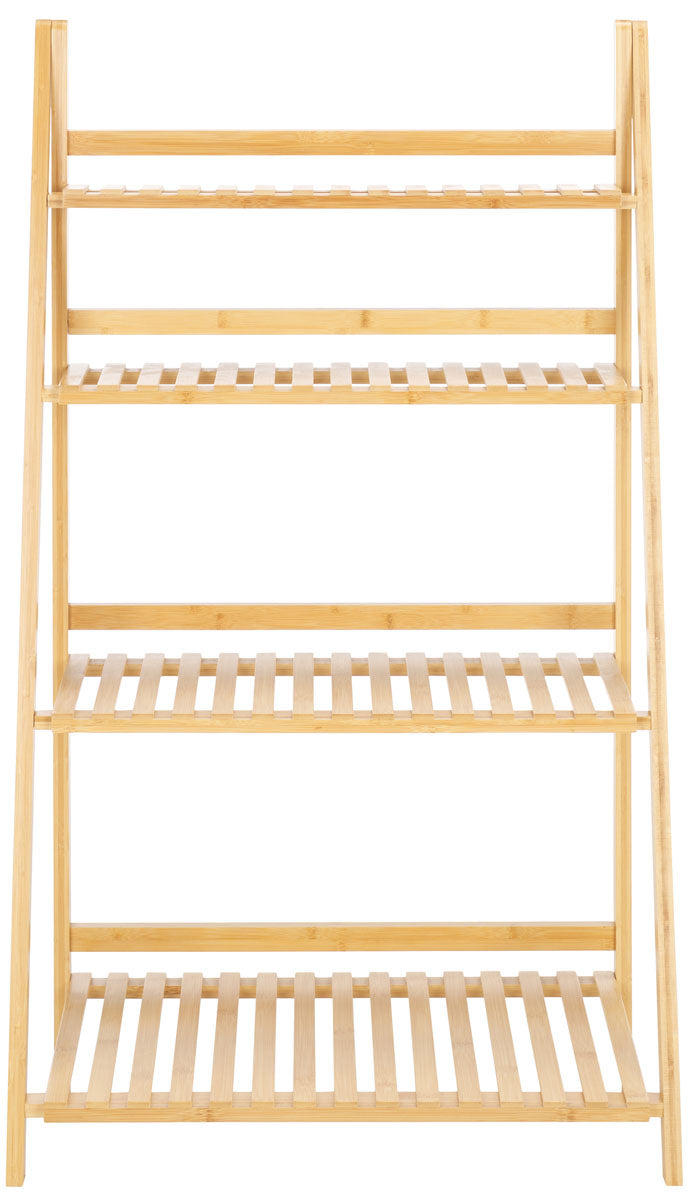 Bring ultimate convenience to your home with our handy and versatile Faisal 4 tier ladder shelf. Crafted in bamboo, the shelf charms with its natural and warm finish. It can serve as an elegant way to display your decorative objects, organize your knick-knacks or keep essentials within easy reach. Each shelf is slatted and gradually increases in depth to hold items of different shapes and sizes. Add to your bathroom, kitchen, or living space to keep each room organized and clutter-free.