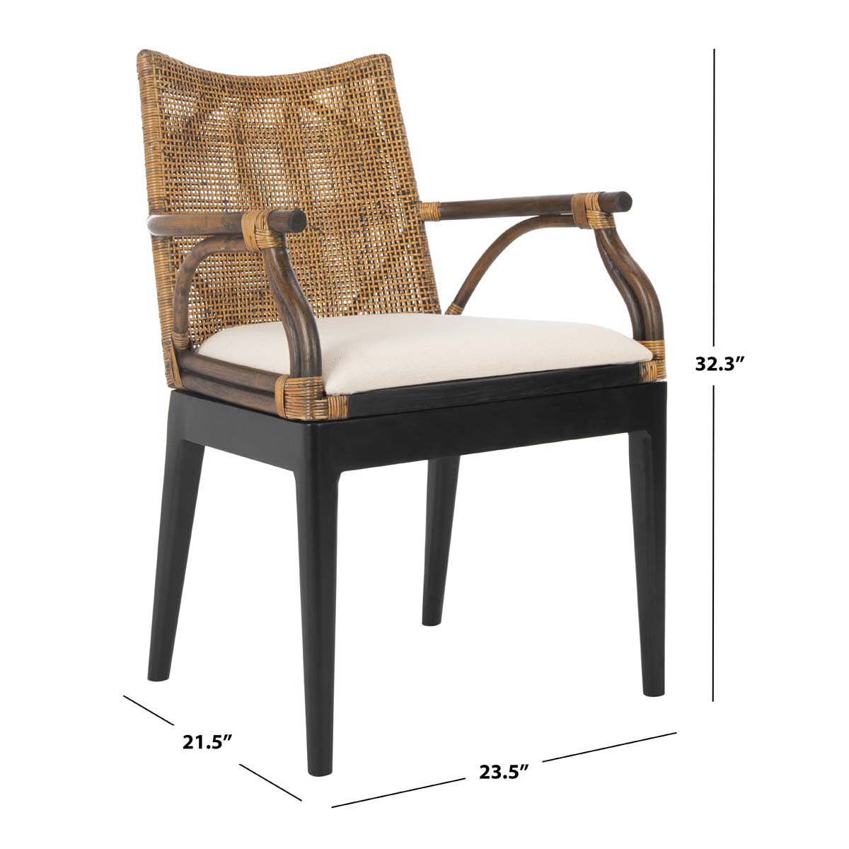 Safavieh Gianni Arm Chair - Brown / Black - Brown / Black Legs / White Cushion / 21.5" X 23.5" X 32.3" is backordered and will ship as soon as it is back in stock.