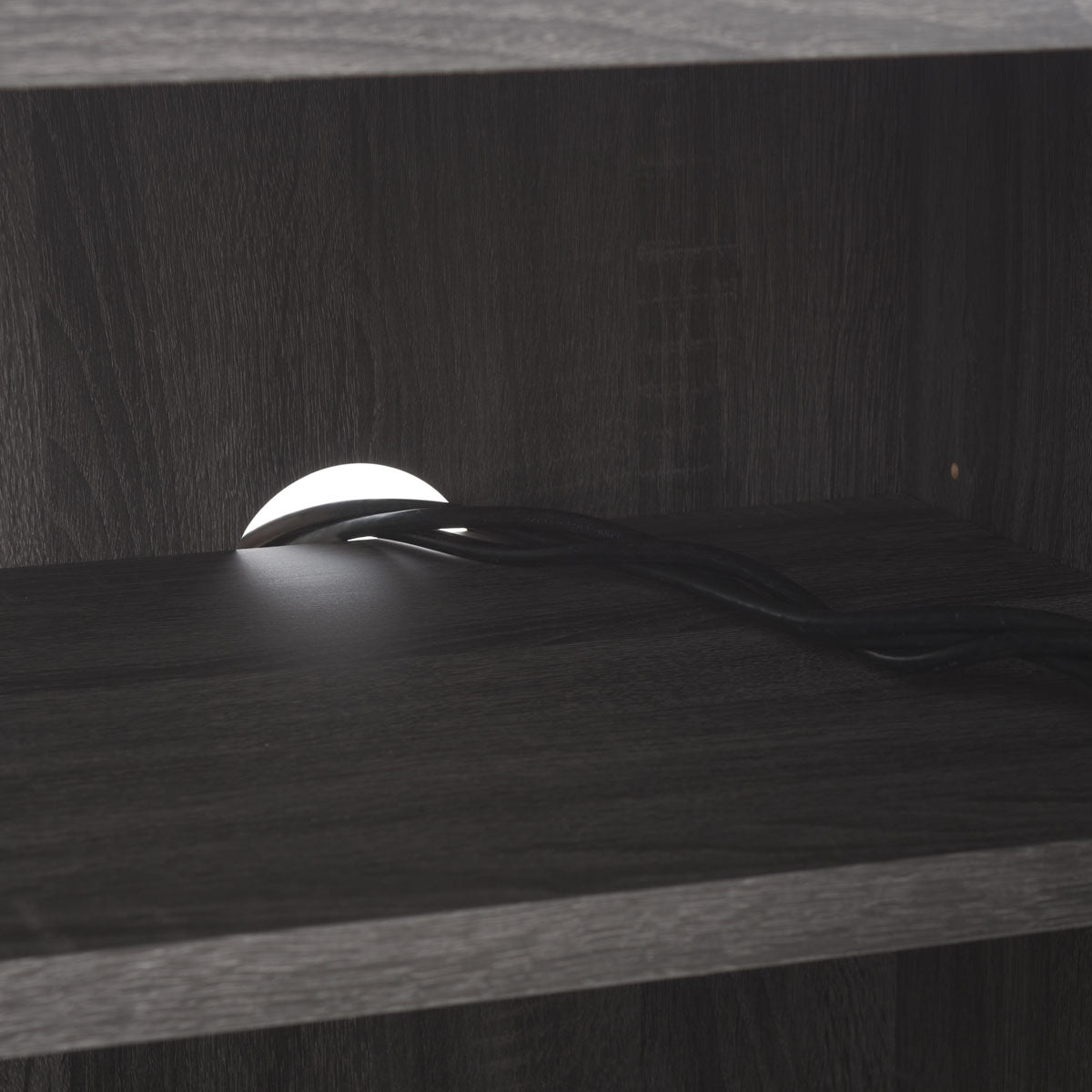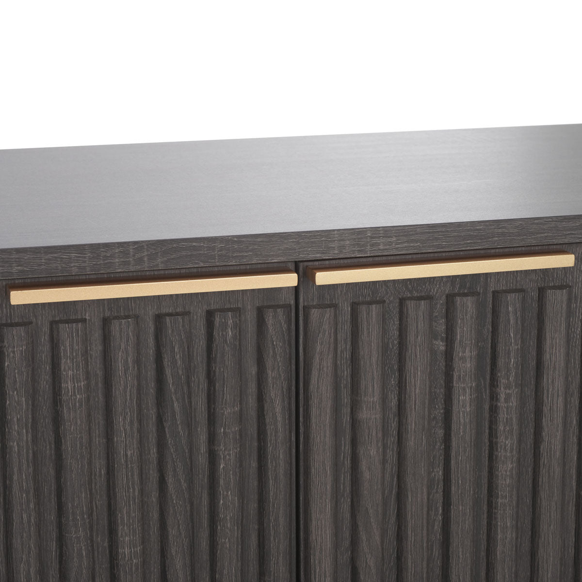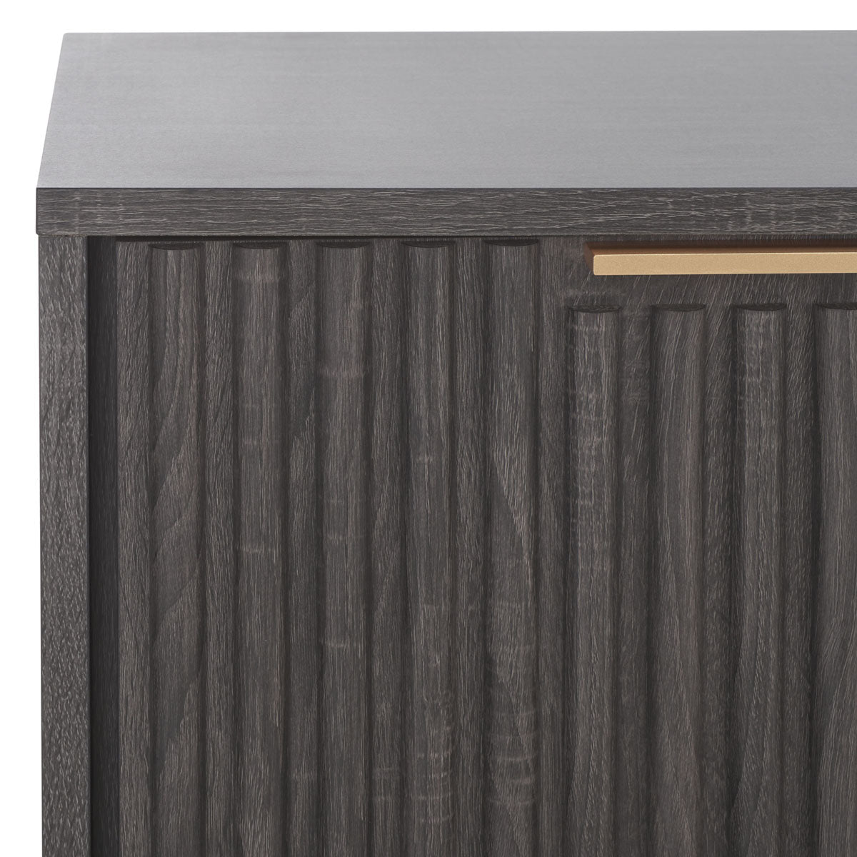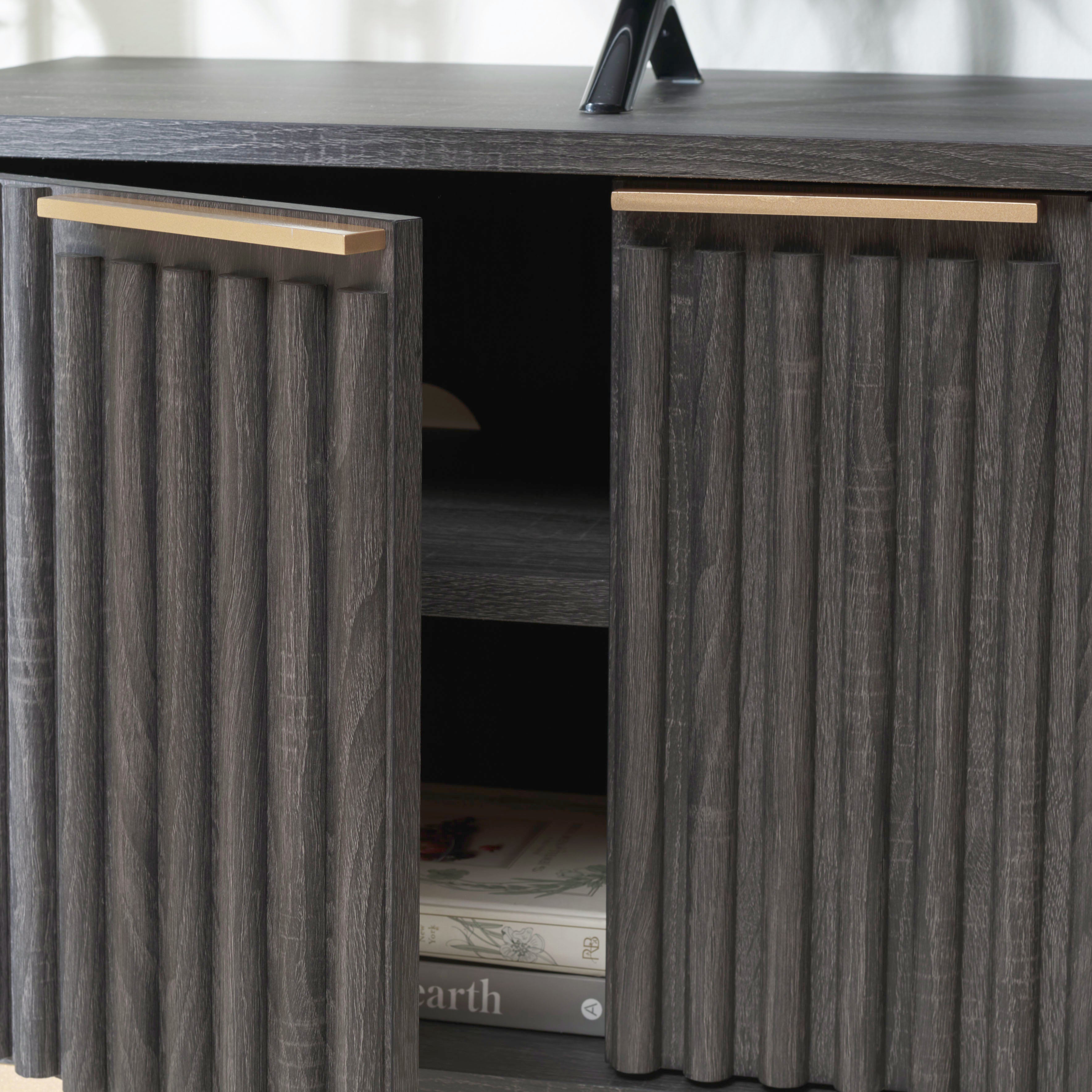 Add a smart and elegant storage unit to your home with our stylish Lylia media stand. It showcases the timelessness of mid-century design in a thoughtfully detailed and streamlined design. The clean and linear profile of the media unit is perched upon tapered legs. The media stand showcases rich grains of wood in a distressed black finish for a versatile and charming appeal. Its tambour doors allow full access to the adjustable shelves to house all your media essentials. The three drawers are perfect for storing your knick-knacks, keeping your space organized at all times.