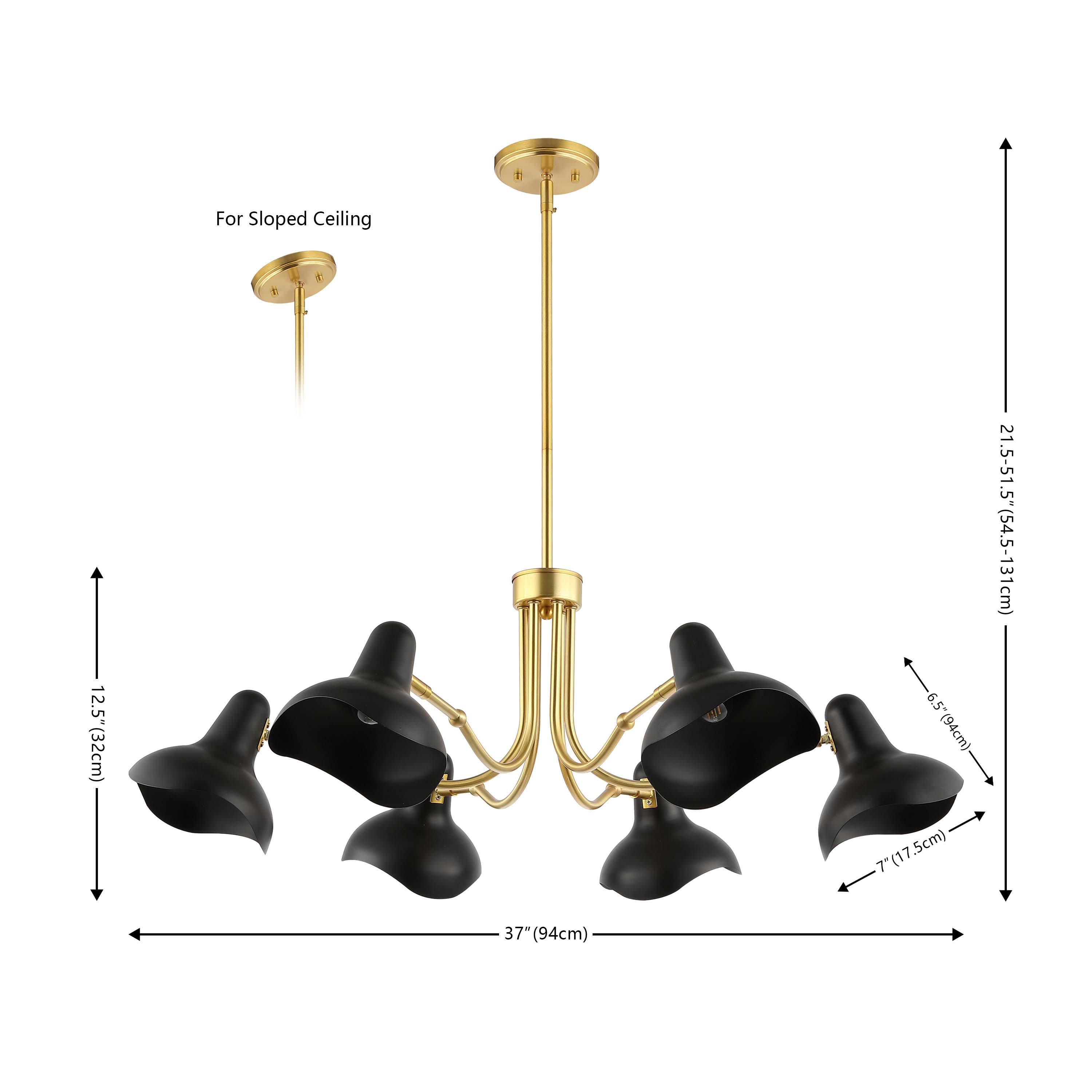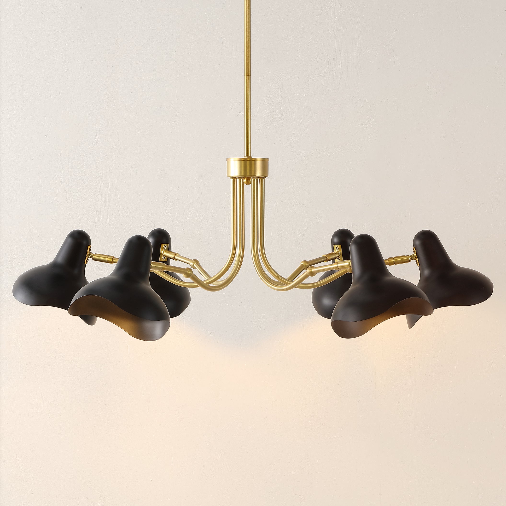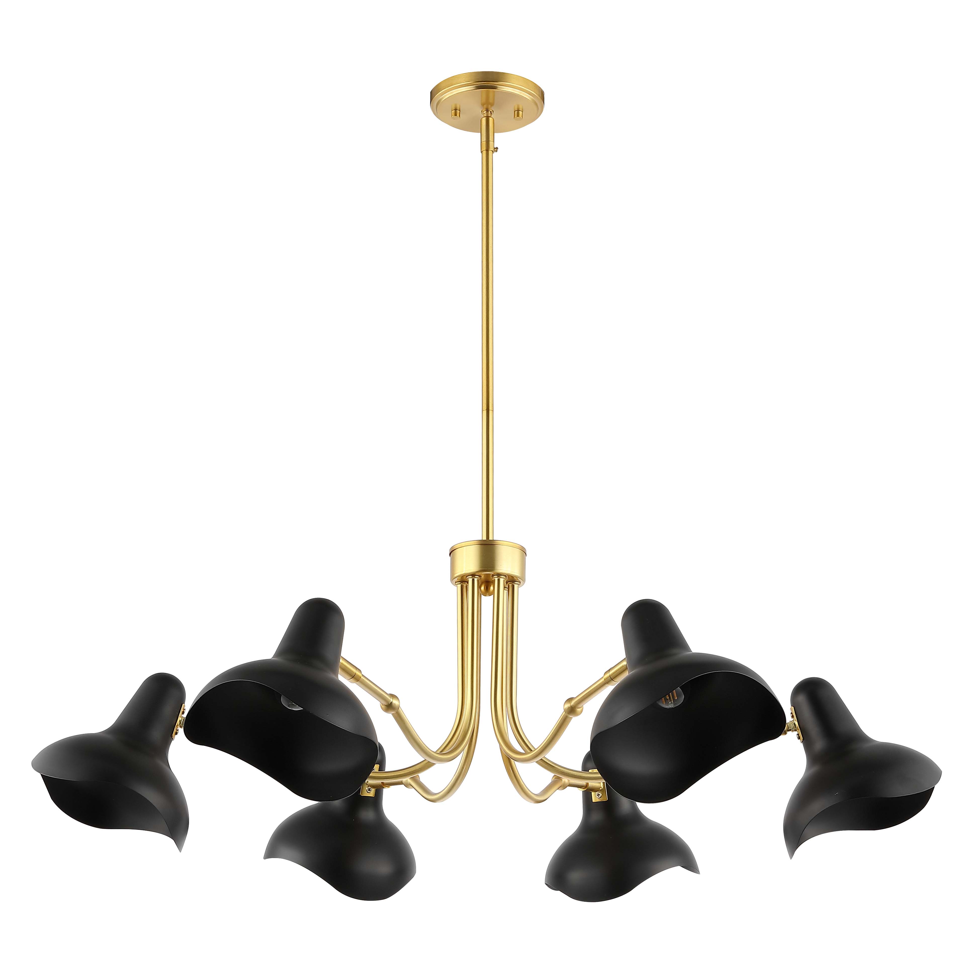 Embrace a chic and stylish centerpiece for your home with our Mykola chandelier. Showcasing eye-catching details and contrasting finishes, our mid-century-inspired chandelier is set to make a stunning impact. The chandelier receives a dramatic edge with its striking and beautifully stylized metallic shades. Suspended from curved arms with a contrasting black and brass finish, our chandelier adds definition and drama to any room. Its six lights focus light downwards to create a lovely ambience in your entryway, living room, or dining space.