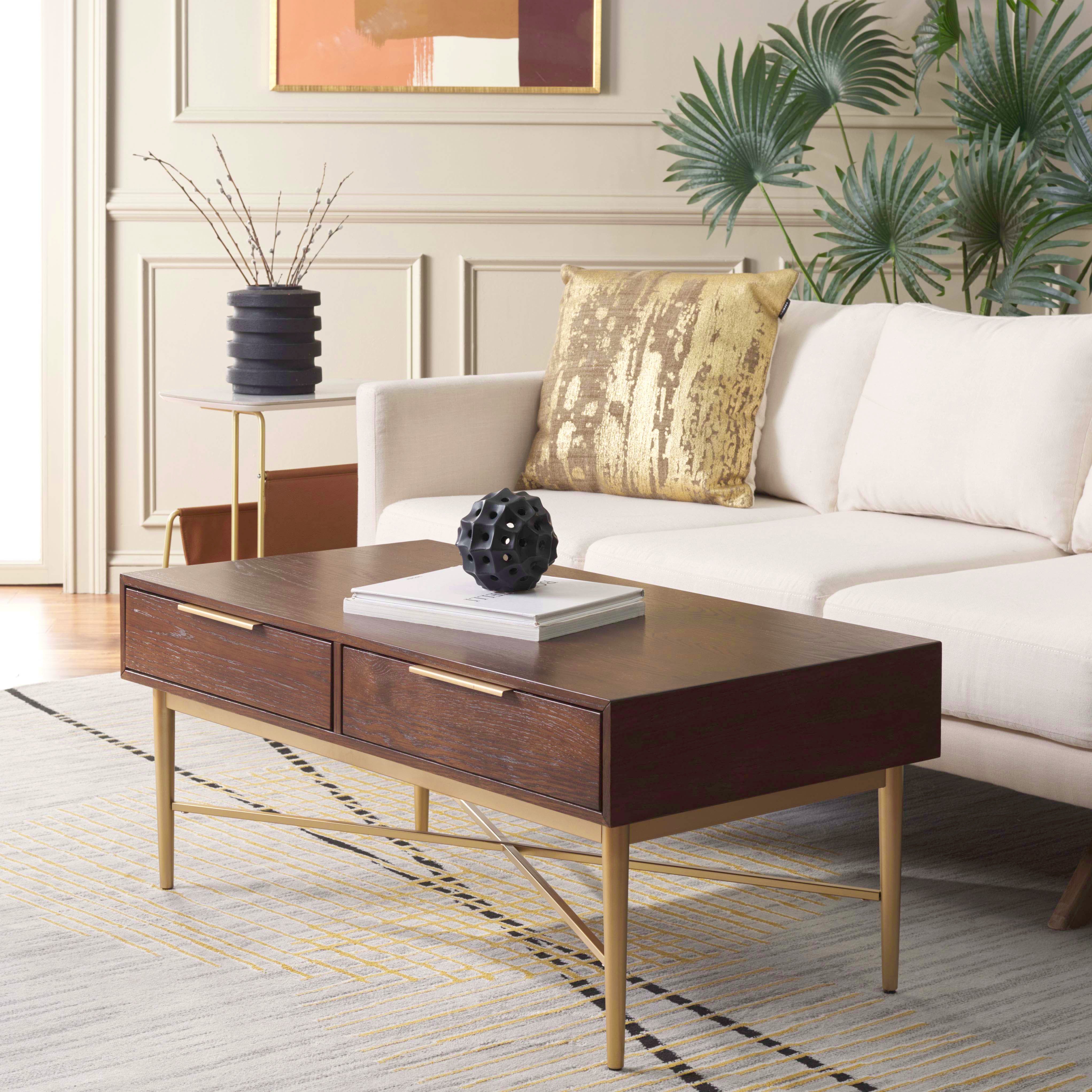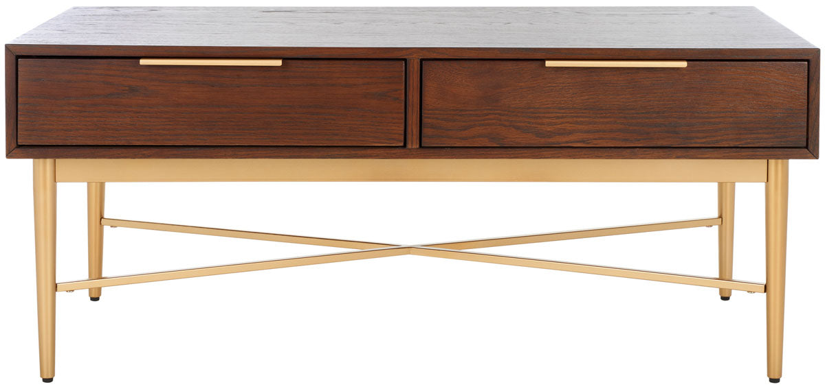 Safavieh Pierre 2 Drawer Coffee Table Walnut / Gold