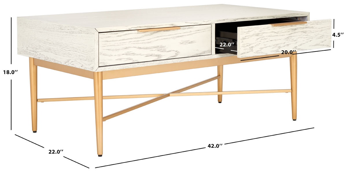 Safavieh Pierre 2 Drawer Coffee Table White Washed / Gold