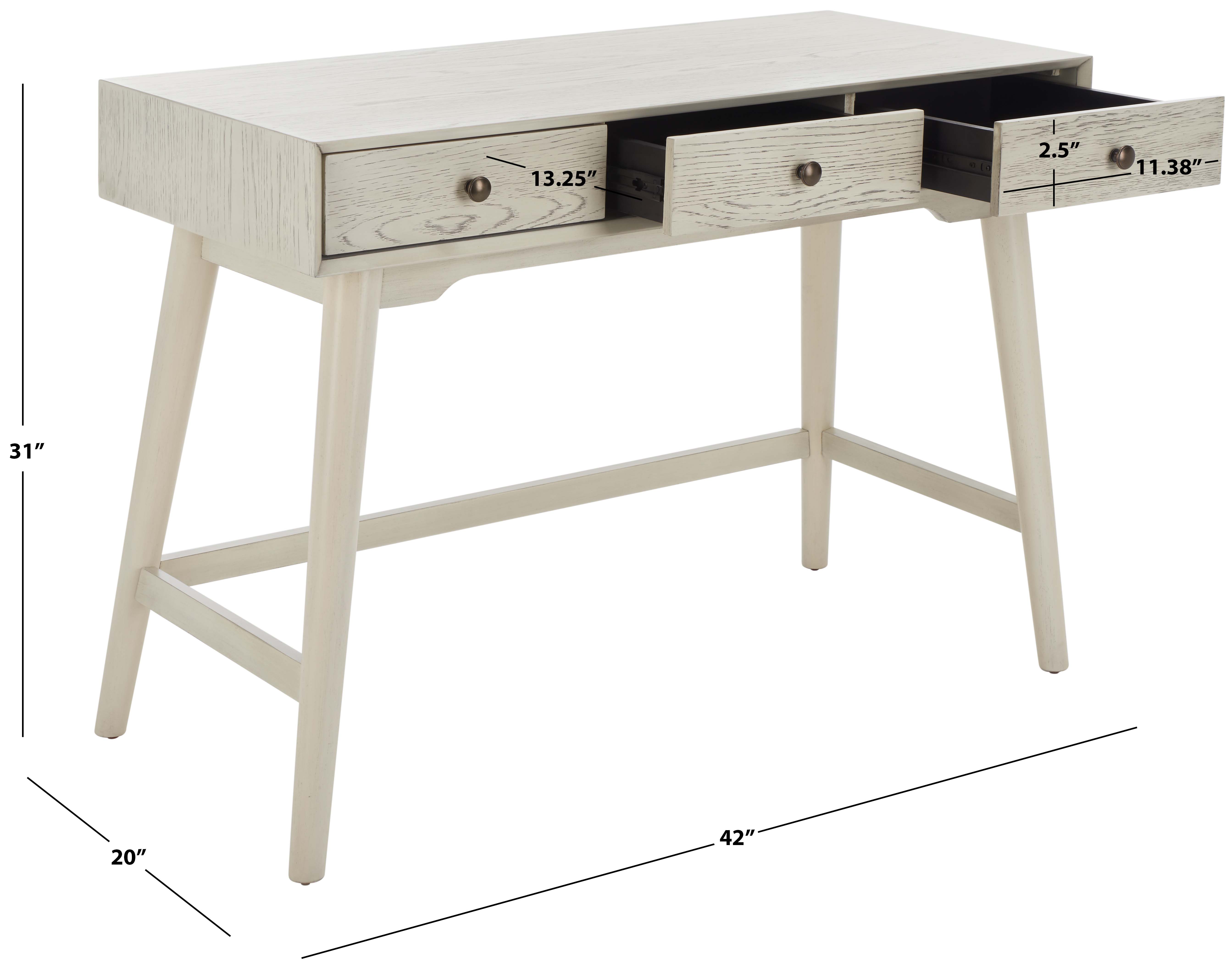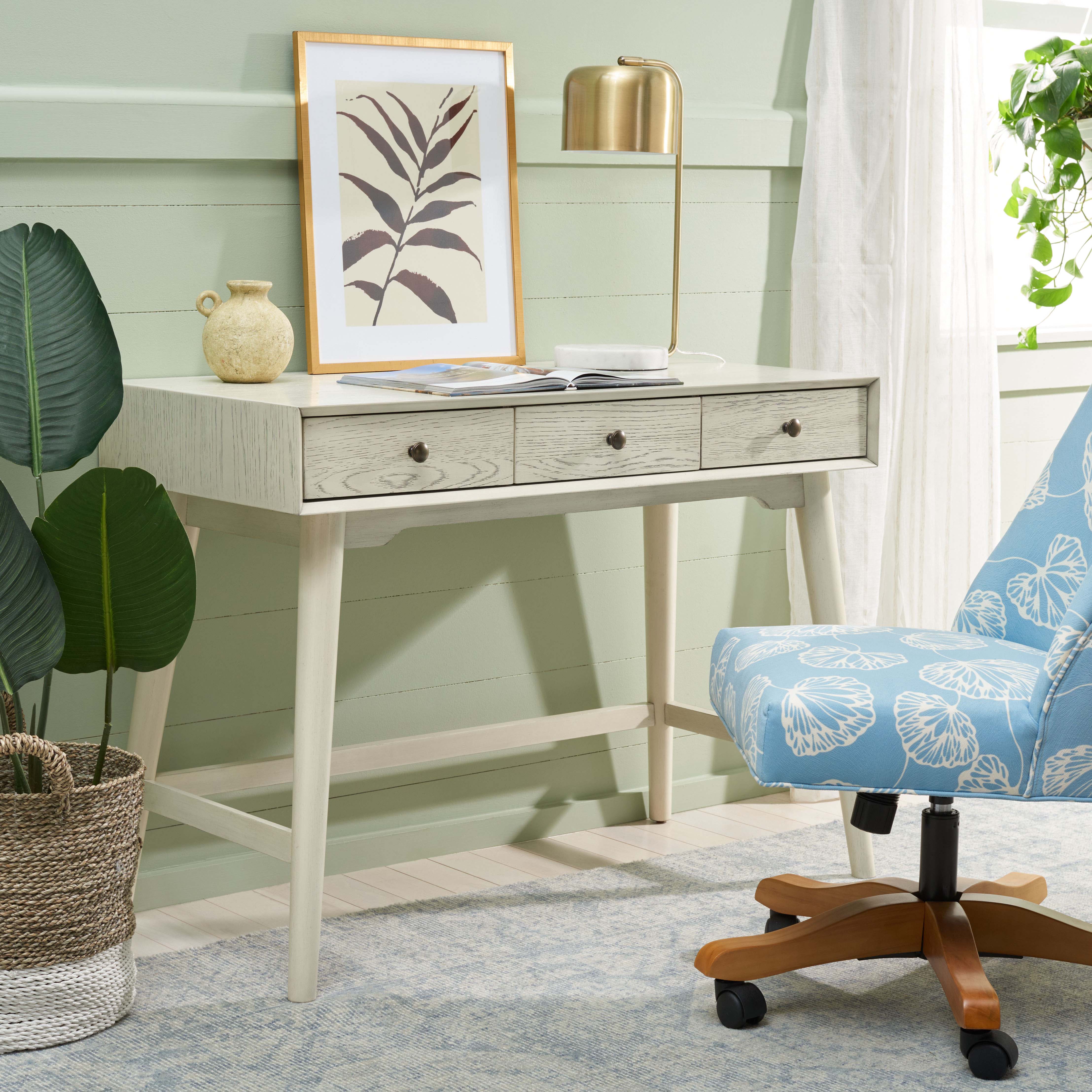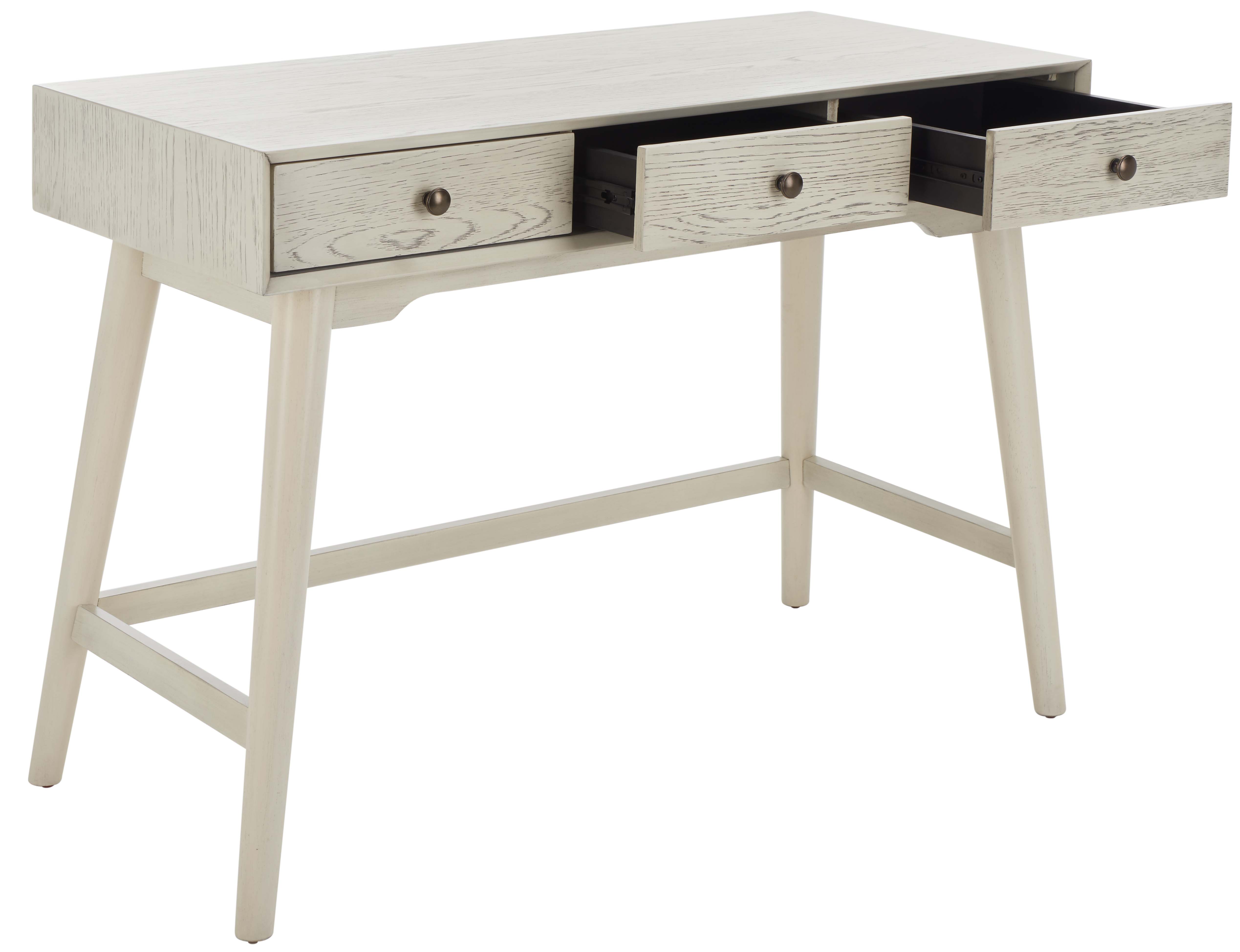 Transform your home office into an ultra-chic workspace with this sophisticated Scully Desk. Taking inspiration from classic Mid-Century designs, Scullys soft whitewash finish gives any interior a soothing French farmhouse vibe, while three drawers provide ample space for pens and supplies.