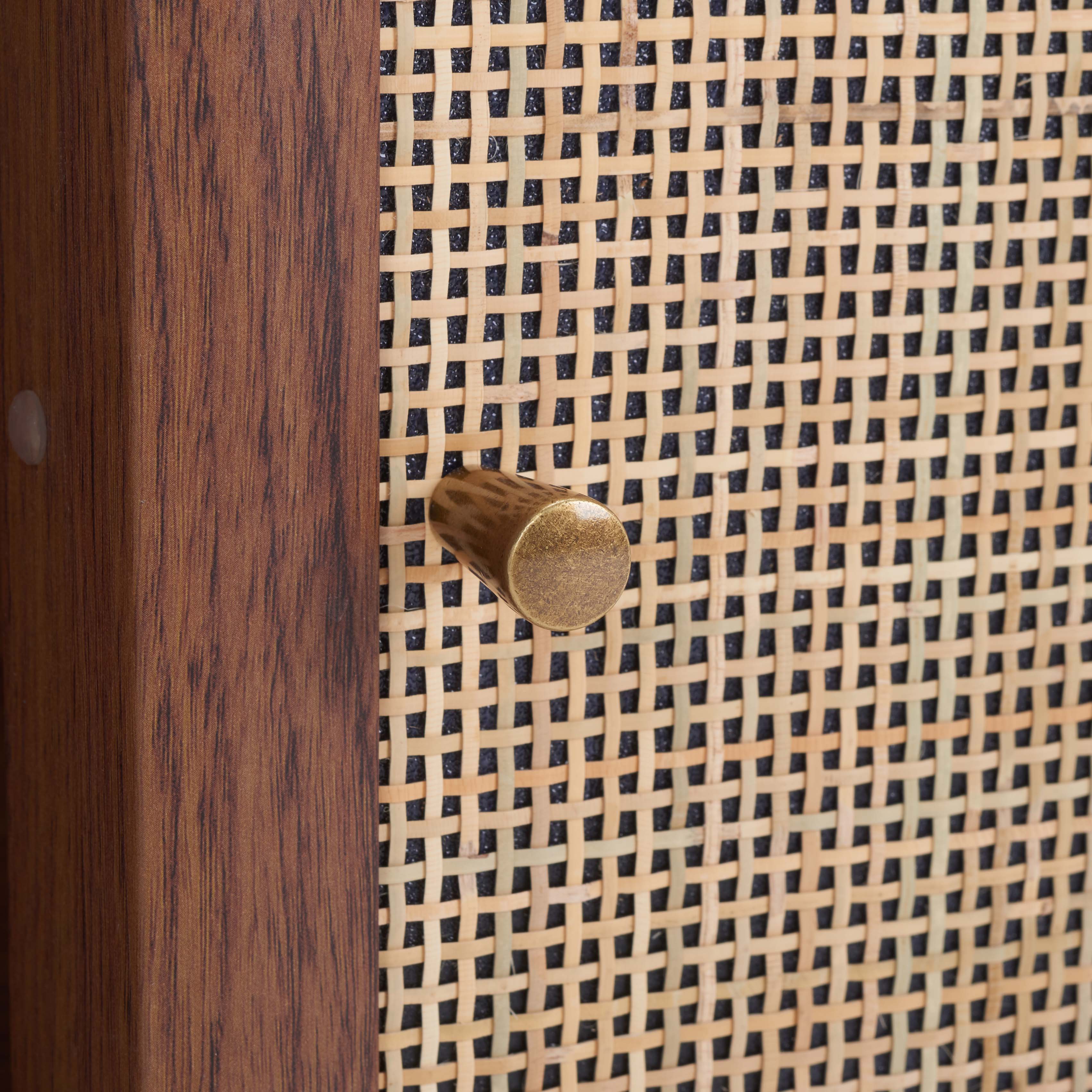 Bring a dose of warmth and style to your space with our Silvanna 2 door coffee table. Our stunning coffee table unites a functional design with the warmth of natural material. It features a rattan mesh upon the front panel to accentuate its modern and airy profile. Enriched in the rich textures of a walnut veneer, our coffee table is sure to brighten up your living room. It features two sliding doors and four shelves to keep all your belongings organized and within easy reach.