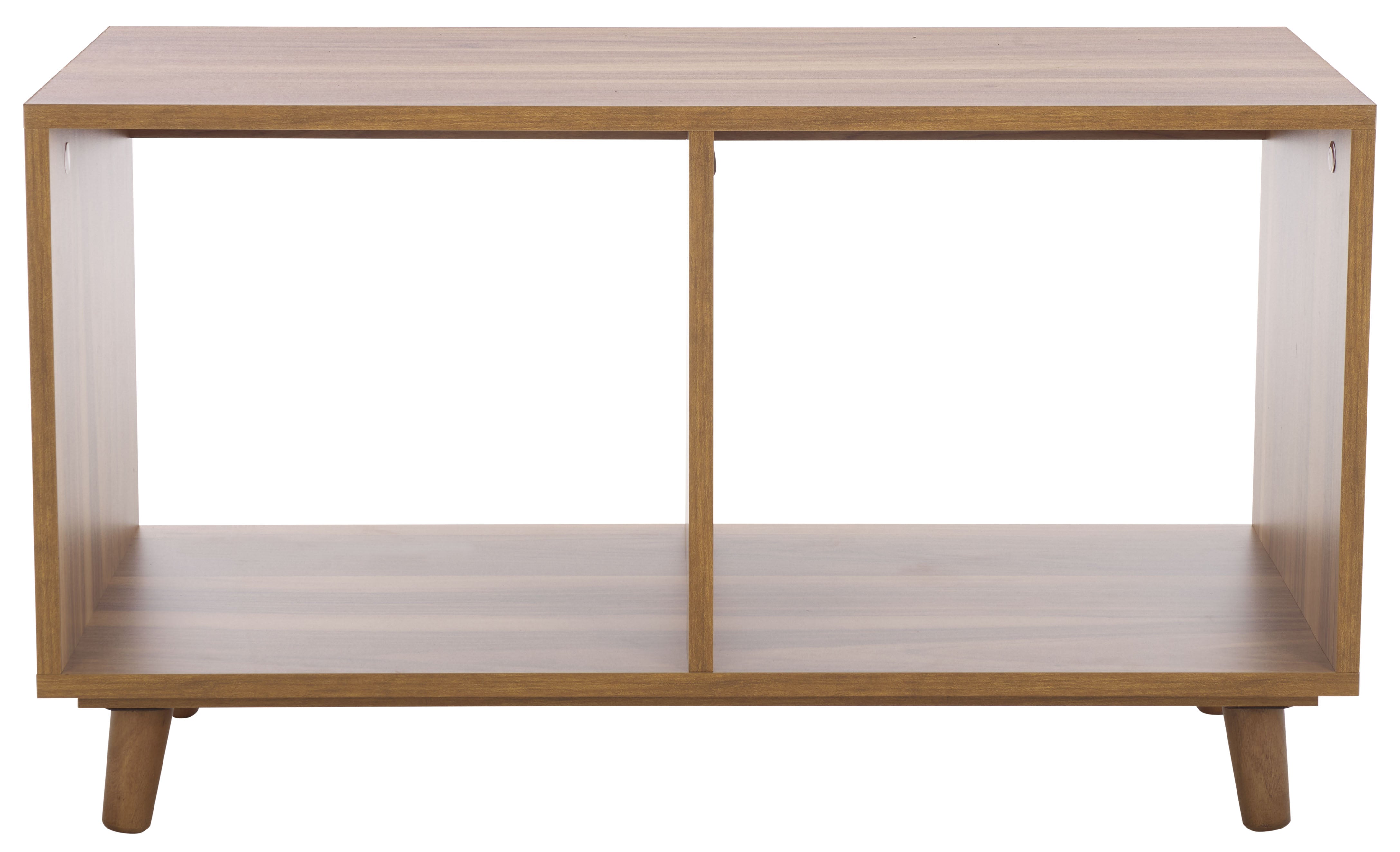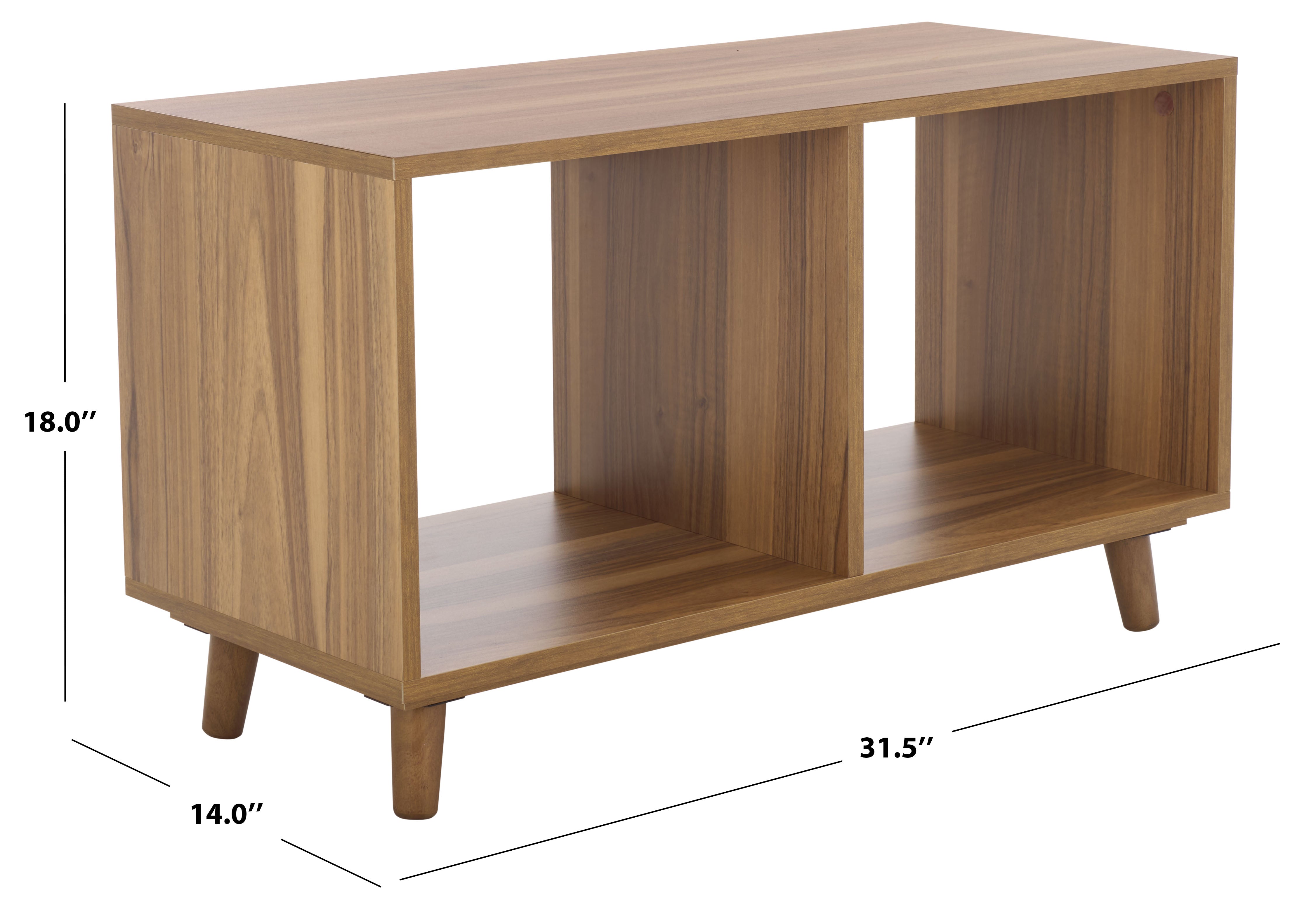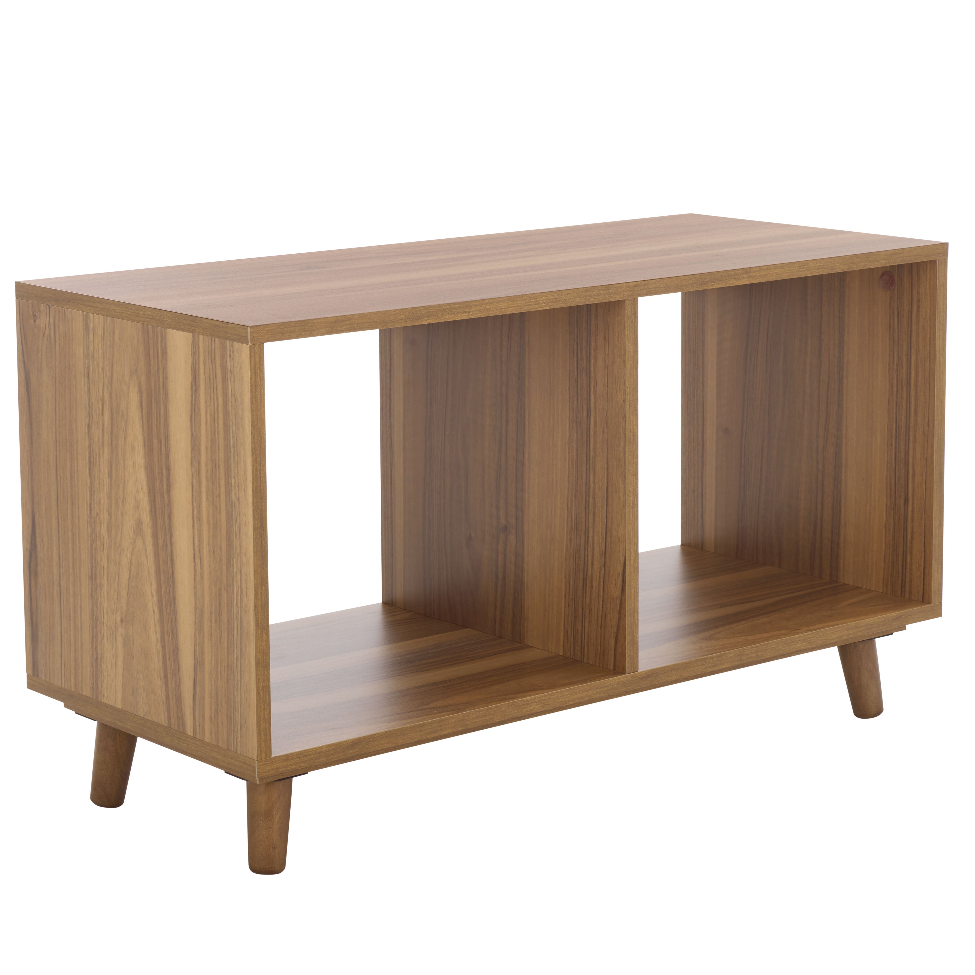 Introducing the Yona Horizontal 2 Shelf Open Shelf Accent Table in a warm brown color. This table features a sleek horizontal design with two open shelves, providing ample space to display books, plants, or personal items. The rich brown finish adds a touch of sophistication, making it a versatile addition to any living room, bedroom, or entryway. The Yona Table blends practical storage with a timeless look, enhancing your space with its stylish presence.