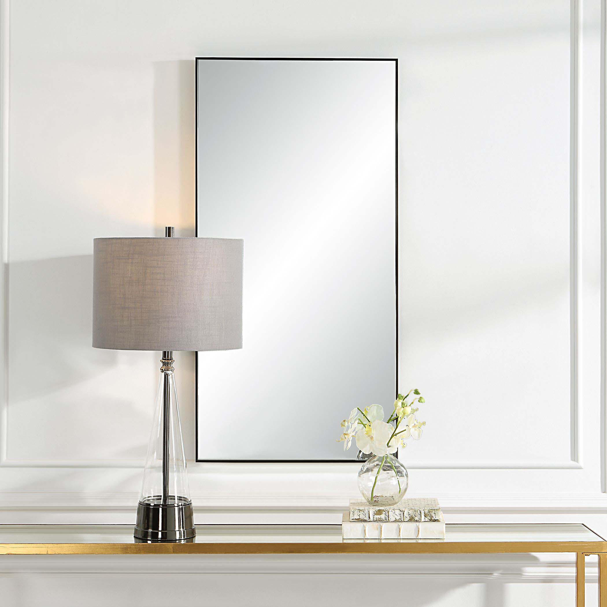 This thin frame, with black finish and plain mirror, creates a simple, clean design that will complete any space. It is perfect over a bathroom vanity, in a foyer or wherever you want an updated, contemporary look. May be hung either vertically or horizon