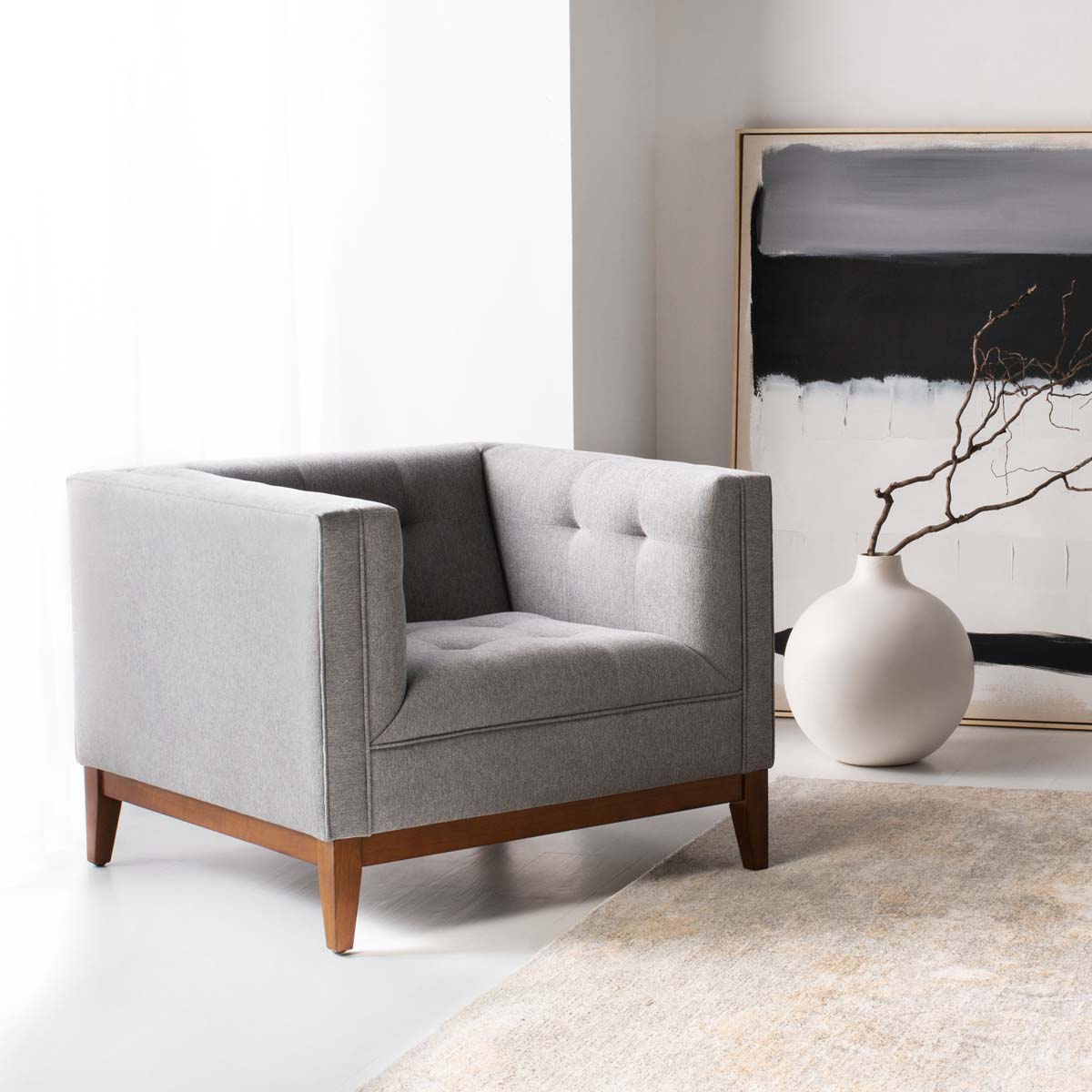 Safavieh Couture Garnet Linen Tufted Arm Chair - Light Grey