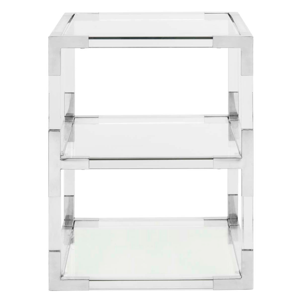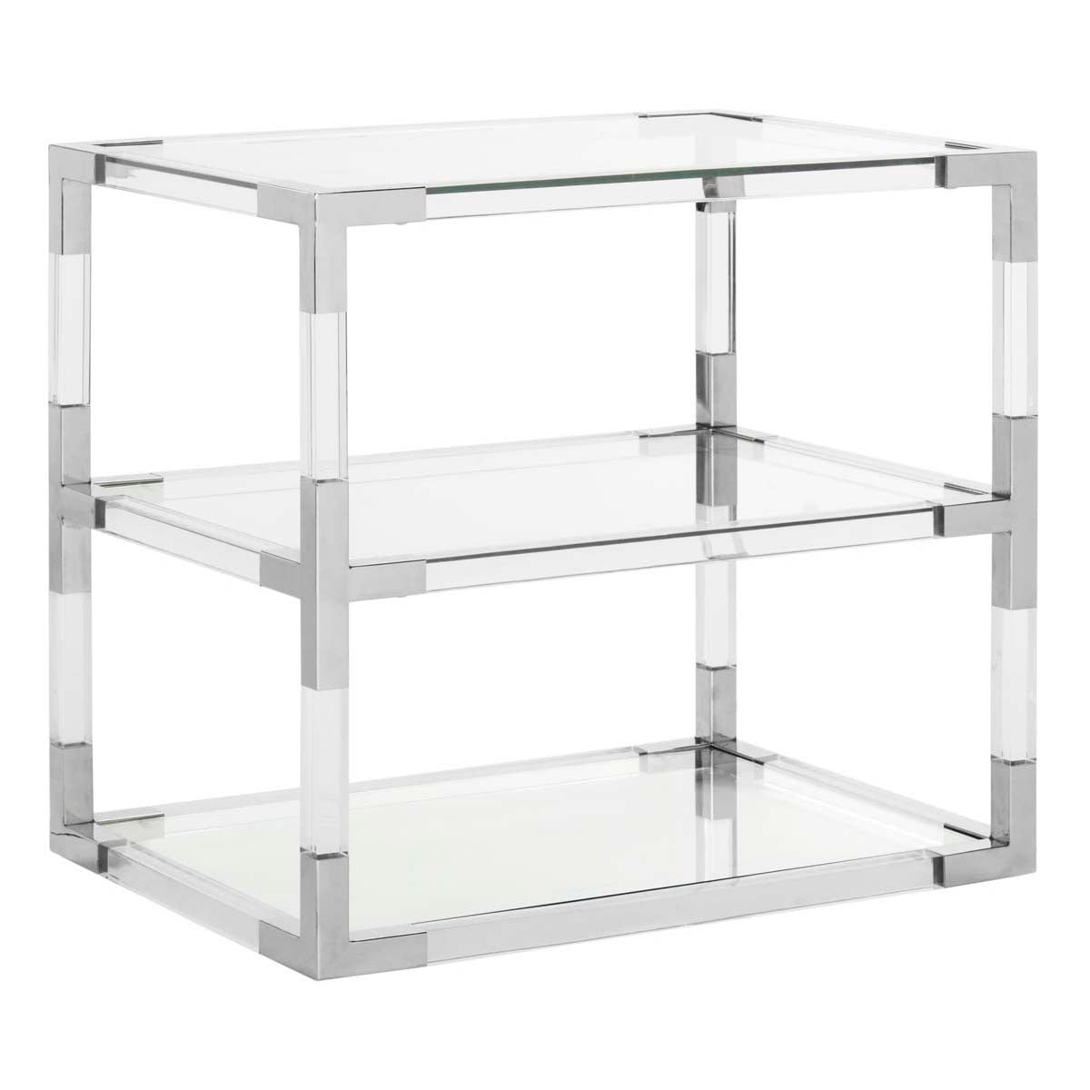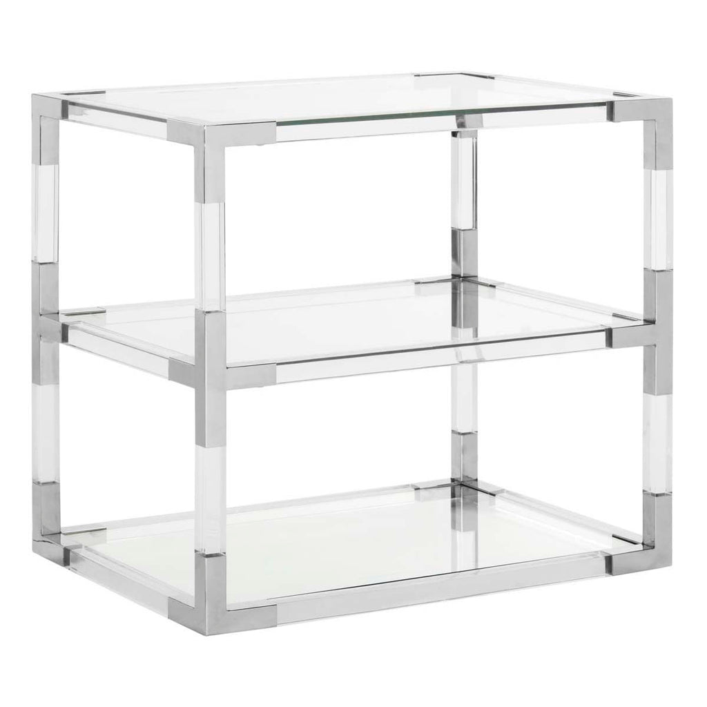 Three times the charm. The Louisa End Table is a petit princess. Its acrylic and glass shelves are anchored by sophisticated chrome details that create instant rapport in any decor. Ideal for ensuring all of life's indulgences are at hand.