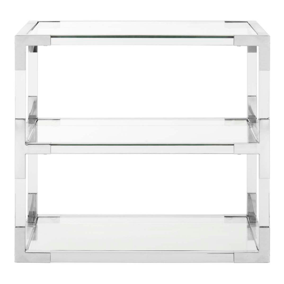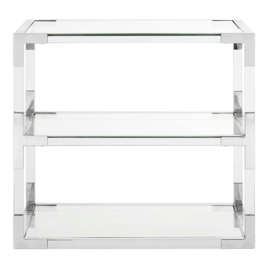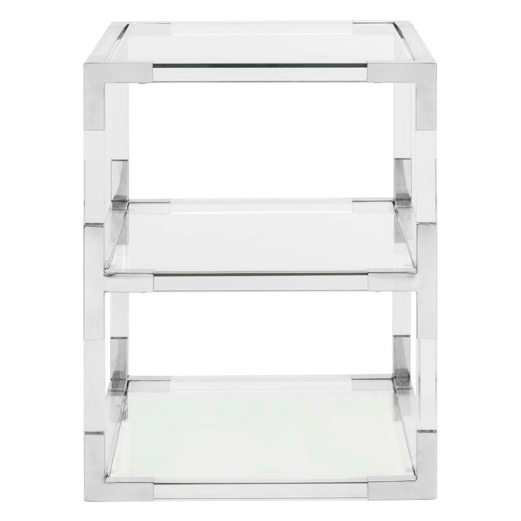 Three times the charm. The Louisa End Table is a petit princess. Its acrylic and glass shelves are anchored by sophisticated chrome details that create instant rapport in any decor. Ideal for ensuring all of life's indulgences are at hand.