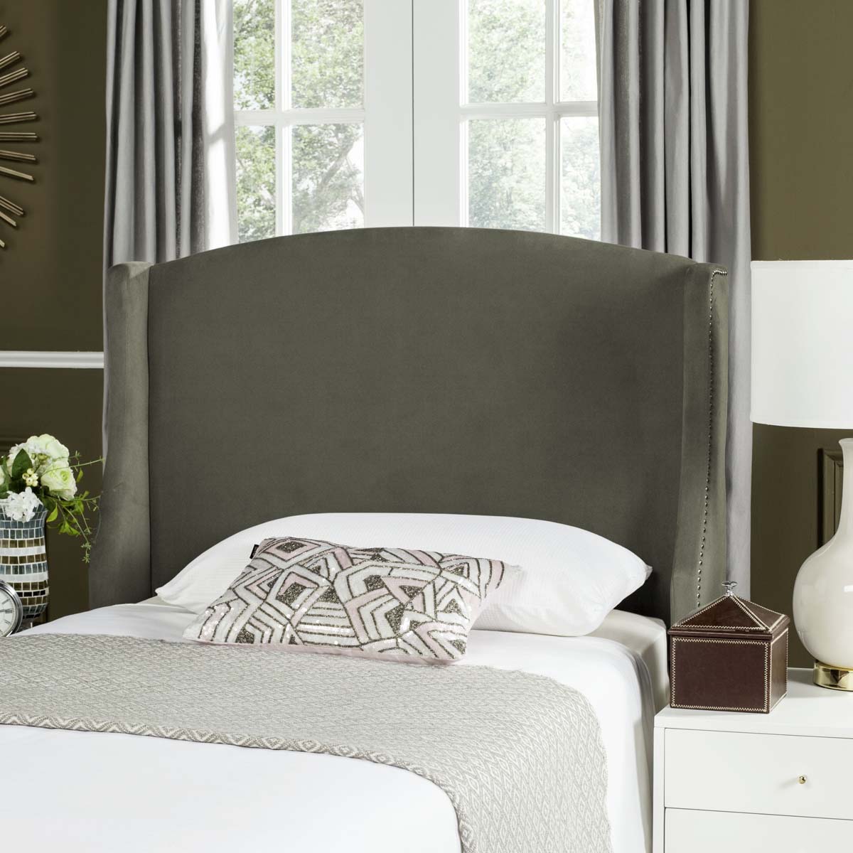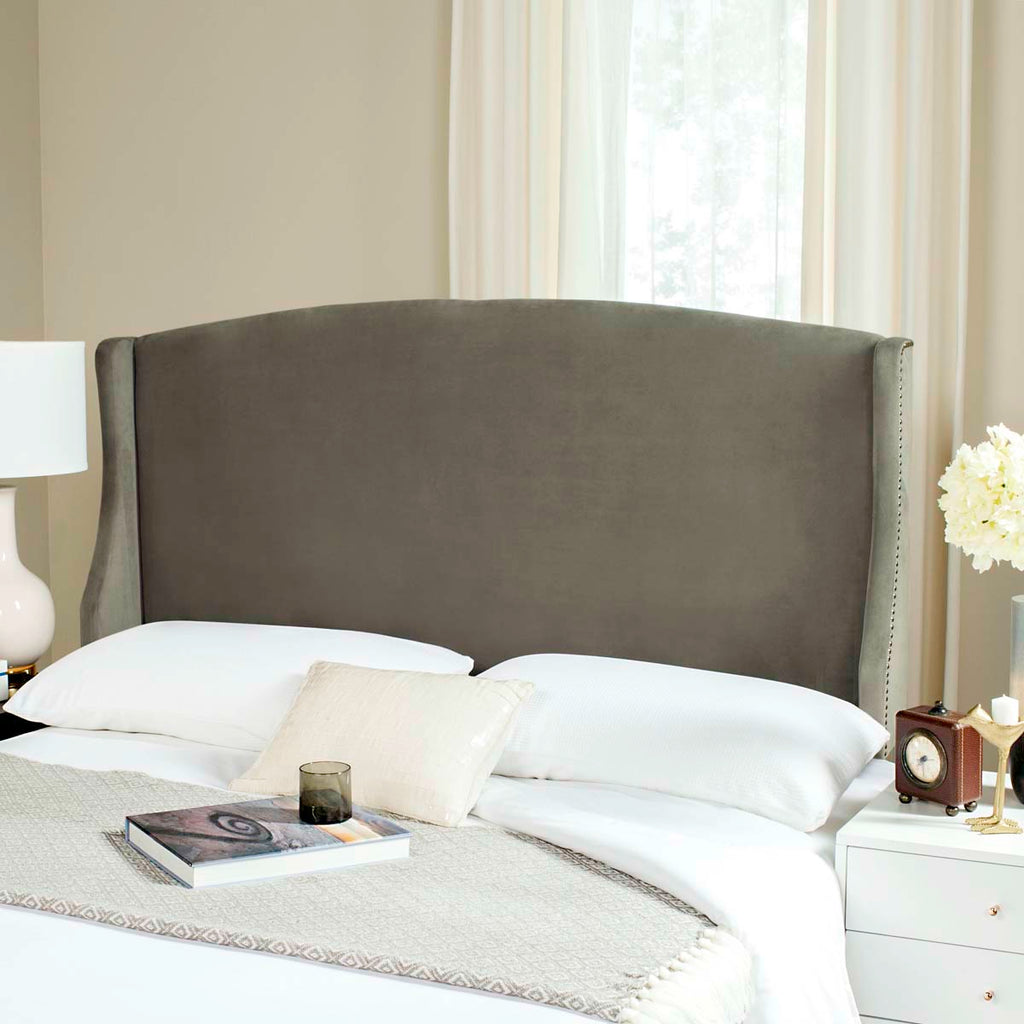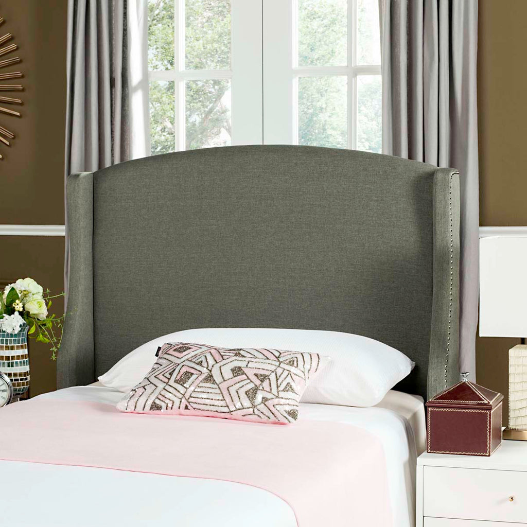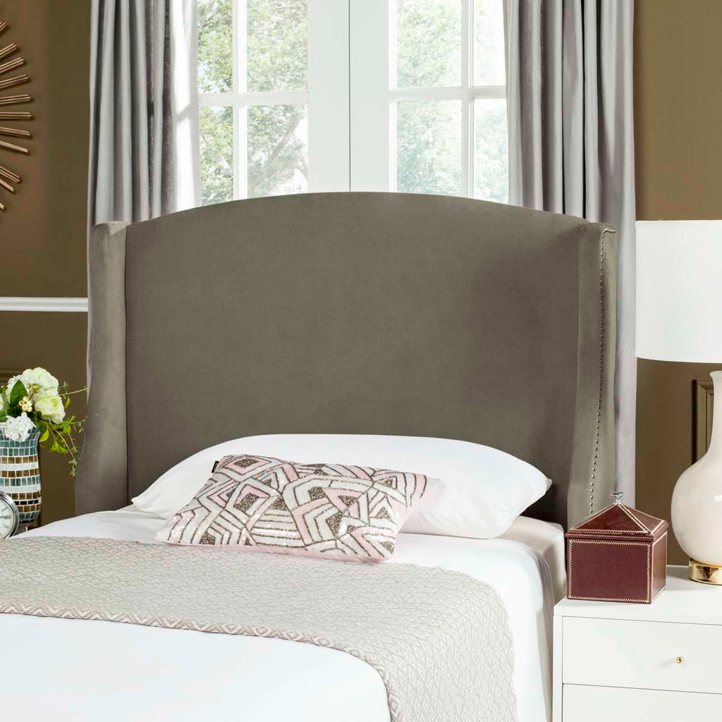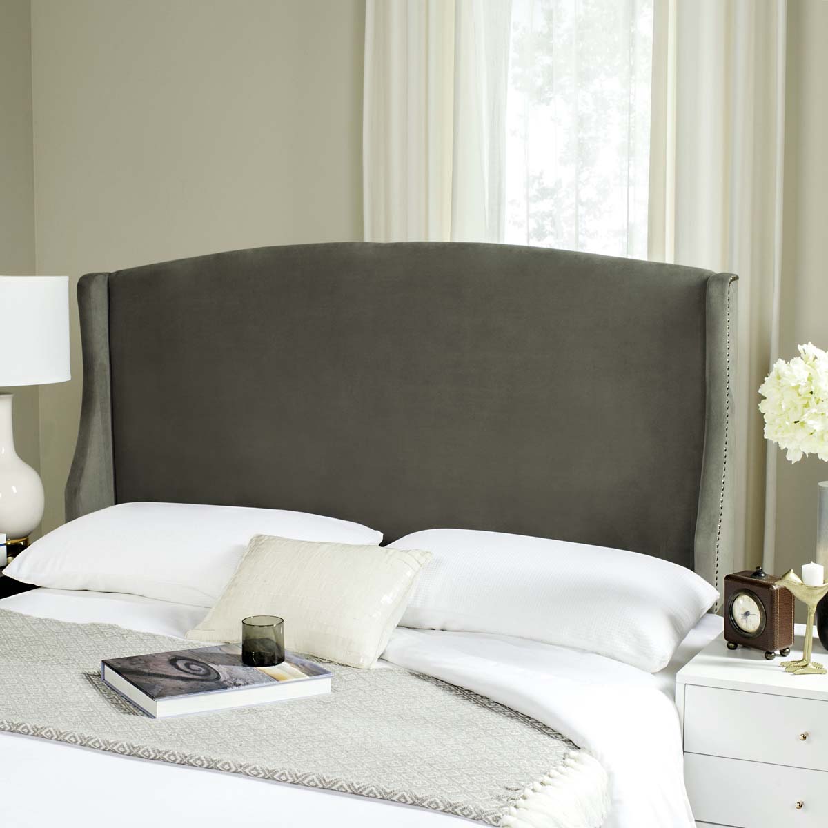 Inspired by the modern home of Milan's most sought after interior designer, clean lines and a graceful disposition make this winged headboard a modern classic. Its neutral palette finished with silver nailheads creates the aura of instant luxury.