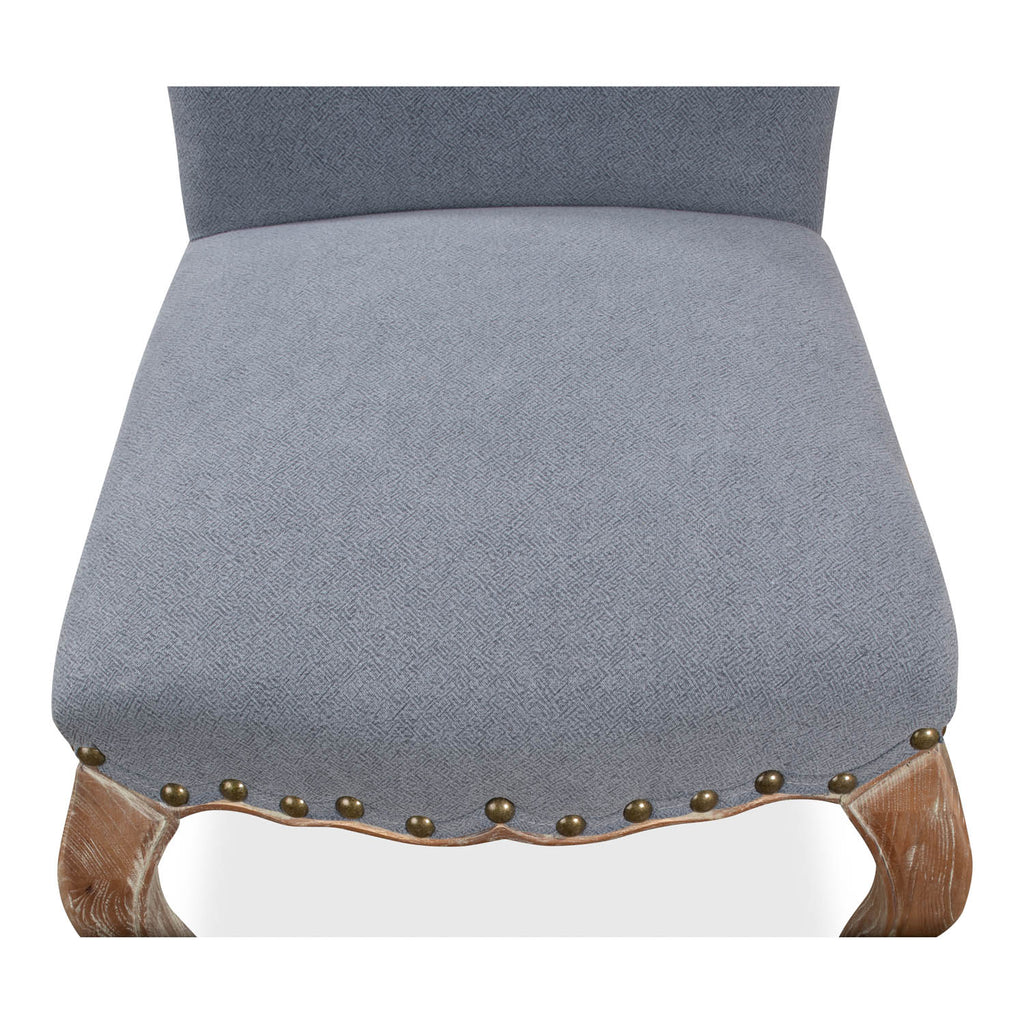 Material: Oak; Blue Wrinkled Linen ;Tacks