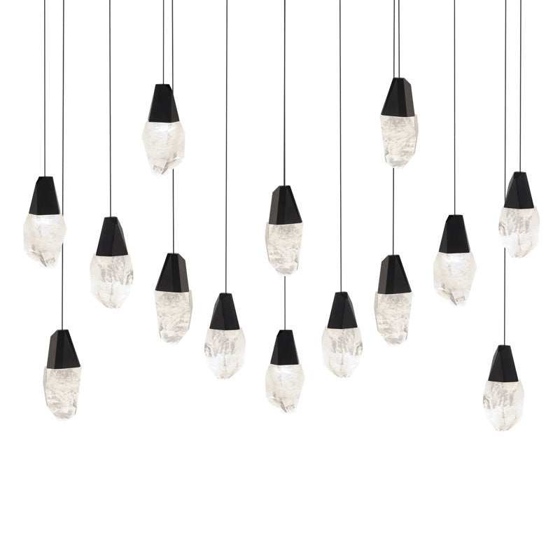 Martini 14 Multi-Light Pendant (Linear Canopy) in Black with Optic Haze Quartz | Schonbek - BPD20214LOH-BK