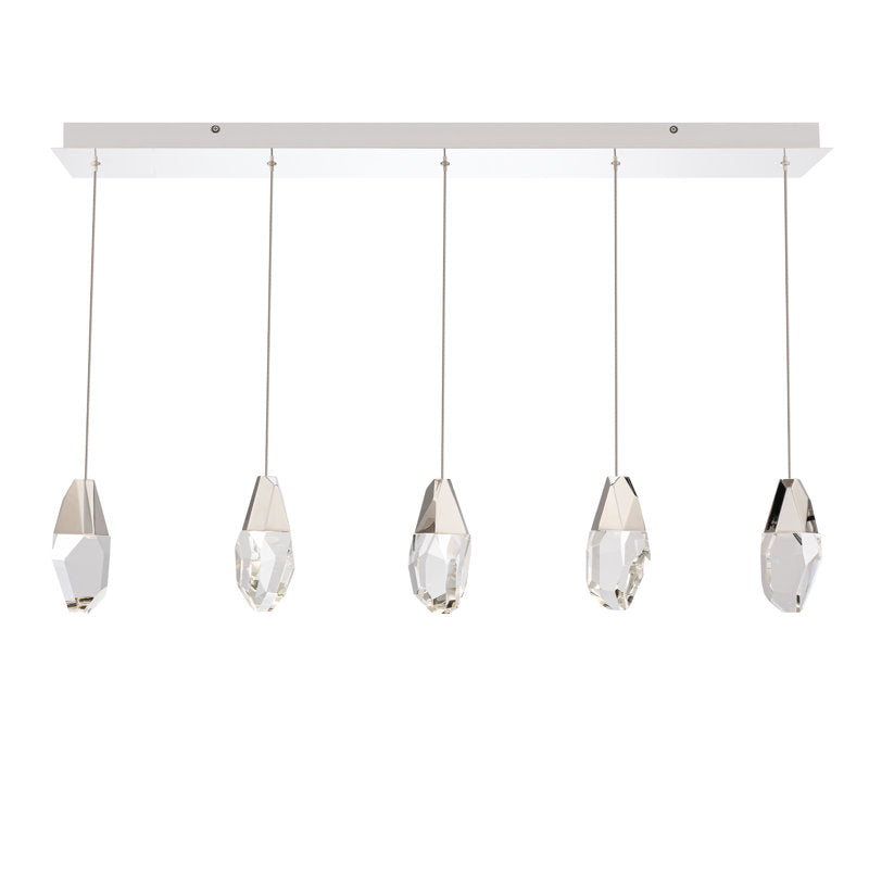 Martini 5 Multi-Light Pendant (Linear Canopy) in Polished Nickel with Optic Haze Quartz | Schonbek - BPD20205LOH-PN