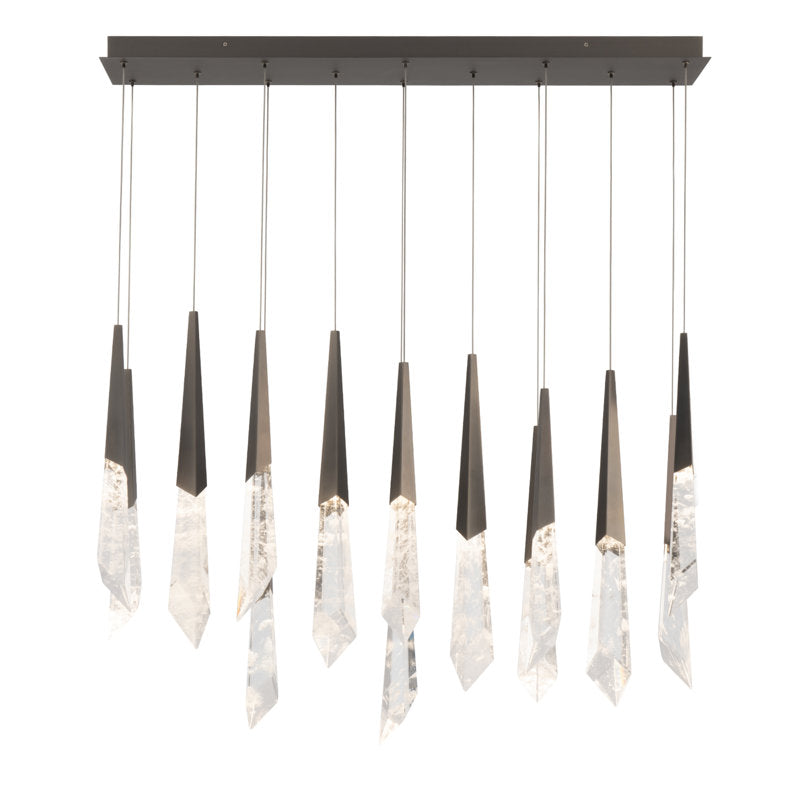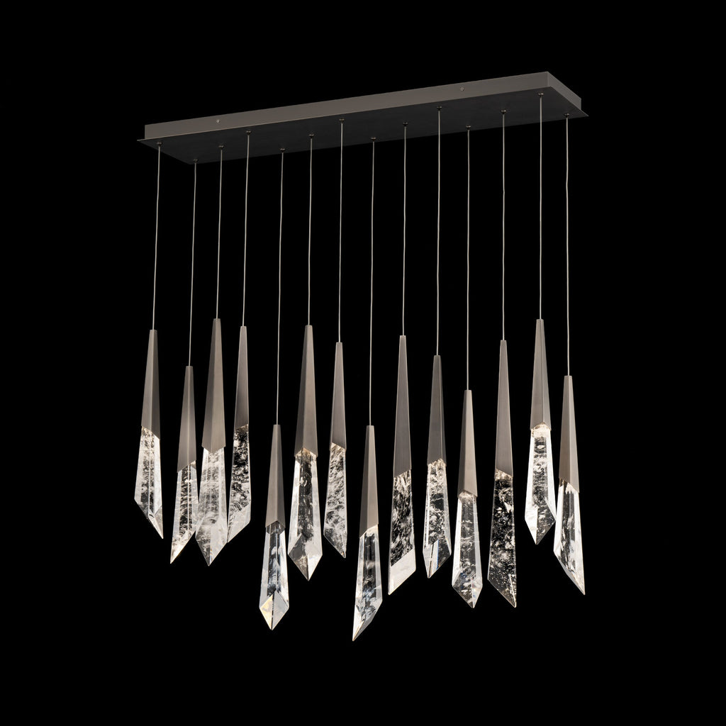 A dramatic character you can't help but fall in love with. The Solitude chandelier features Schonbek optic haze crystal composed of natural quartz gemstone that illuminates and gravitates. Crystal spears juxtapose heroically with bolts of luminous energy.