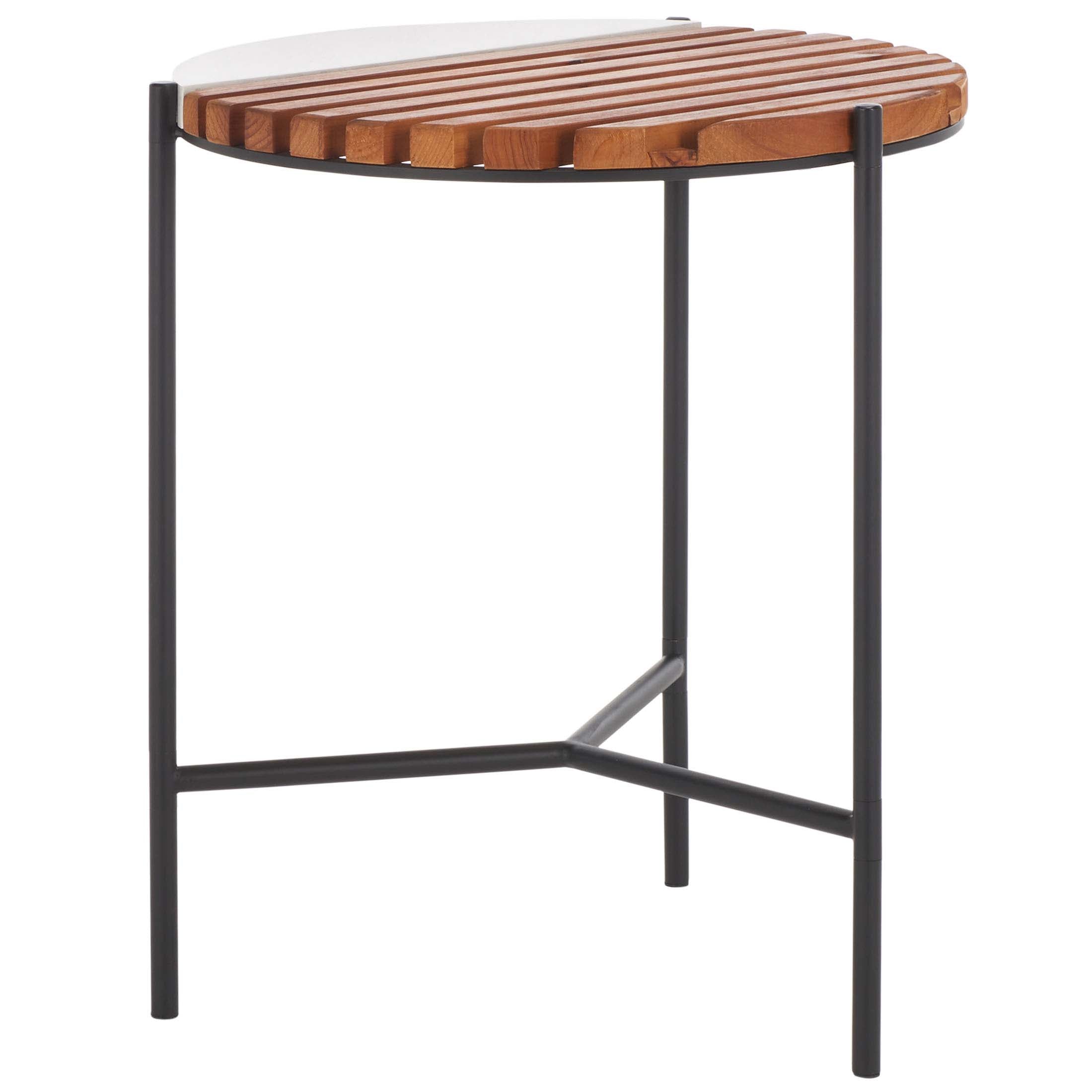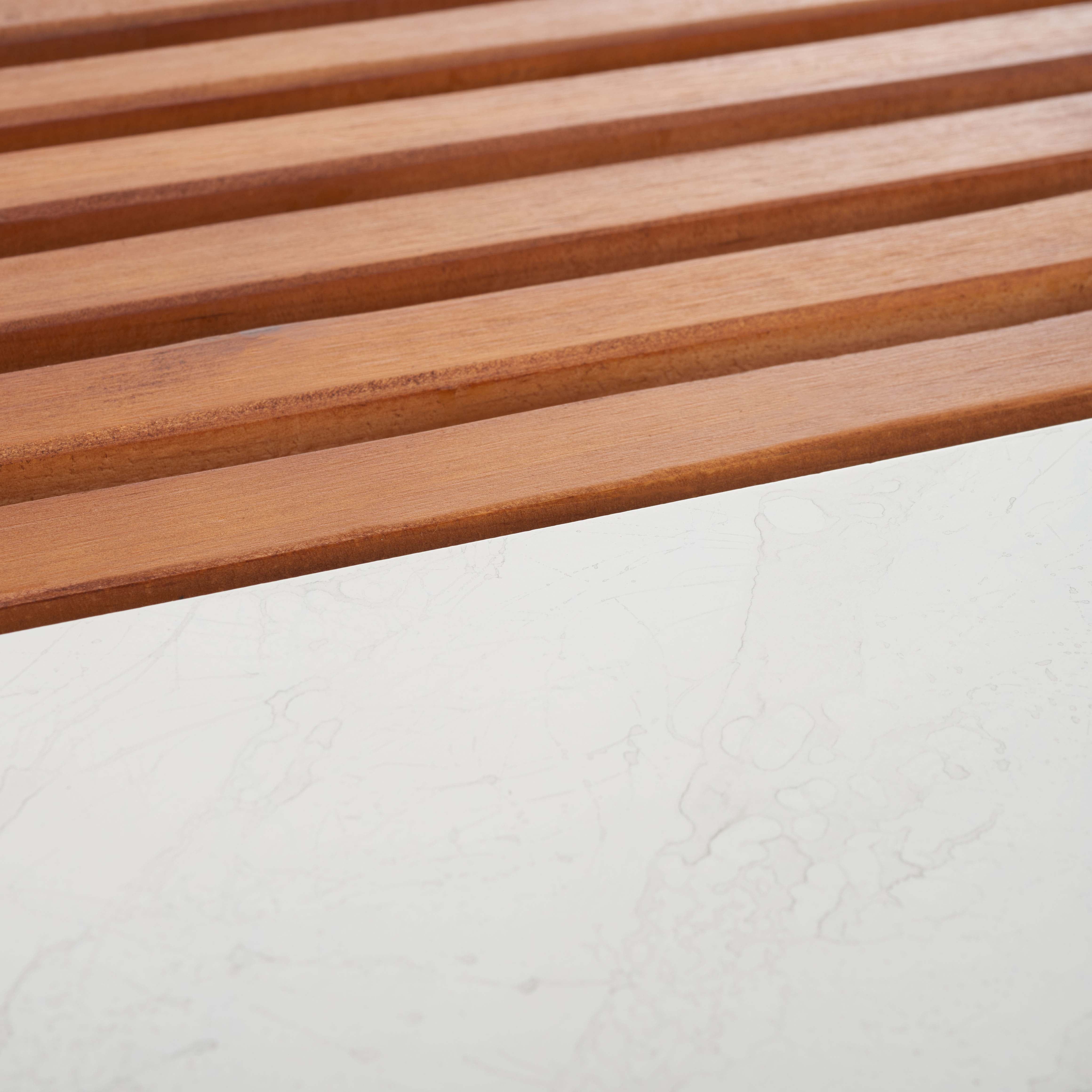 Anything but average, this Dallas End Table is daring and dramatic. Artistic asymmetry is beautifully displayed with its slatted brown wood and faux white marble top, creating an eye-catching visual display that revitalizes any room, making Dallas a cutting-edge favorite.
