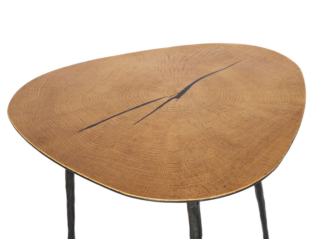 The OAKLEY occasional table collection comes in five sizes to be functional and beautiful in any setting you use it in. It's crafted from forged steel and features a European white oak cross cut veneer on the table surface with a unique silicone filled "check" for character. Nesting the different tables into larger groups make a huge impact and statement.
