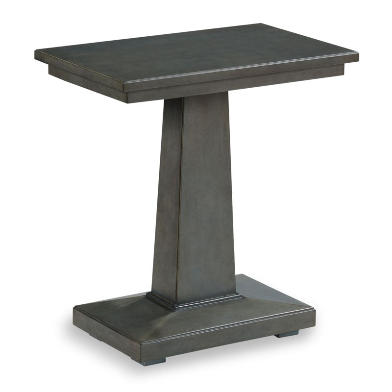 A rectangular chairside table with a tapering square column above a rectangular base.