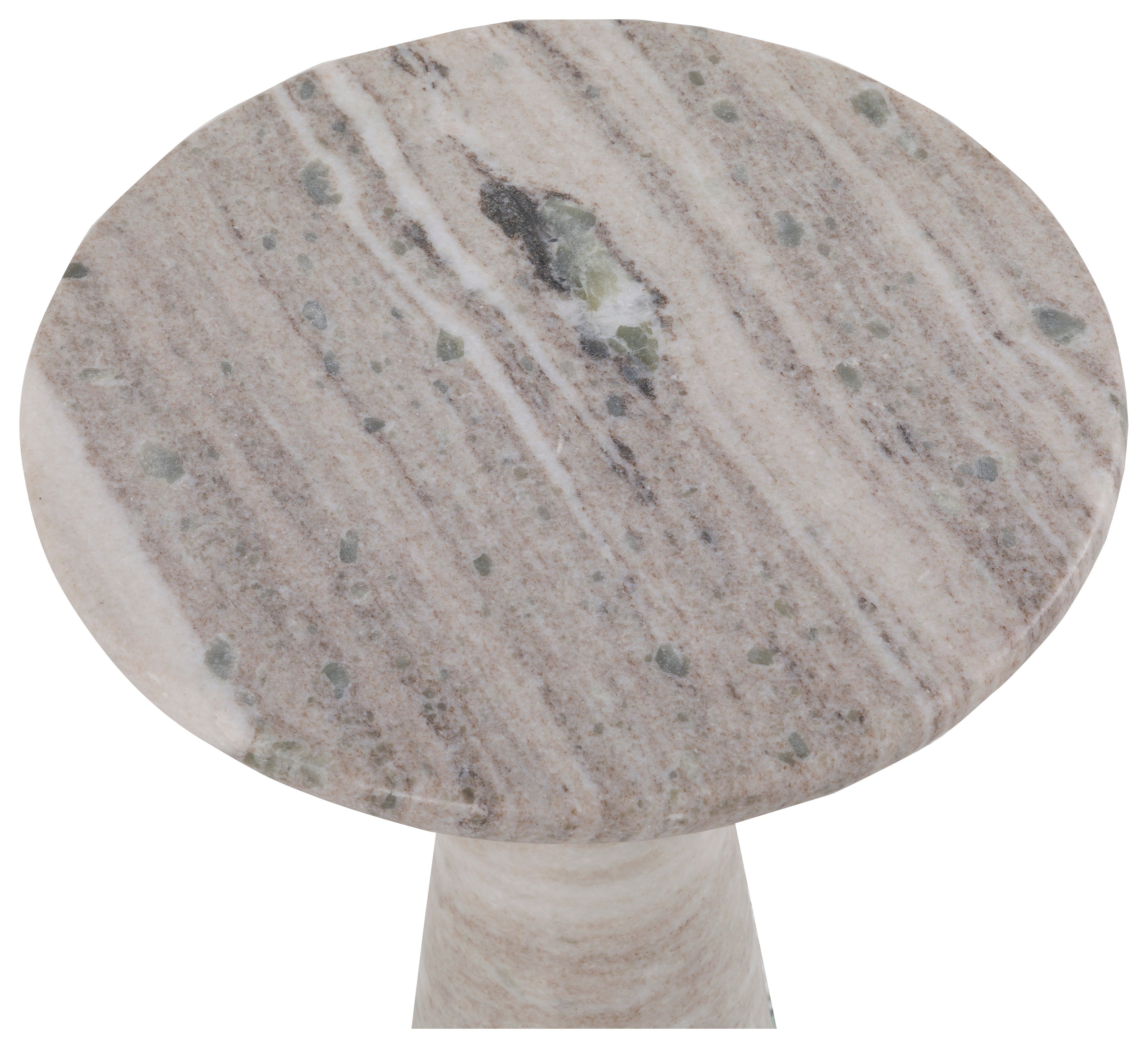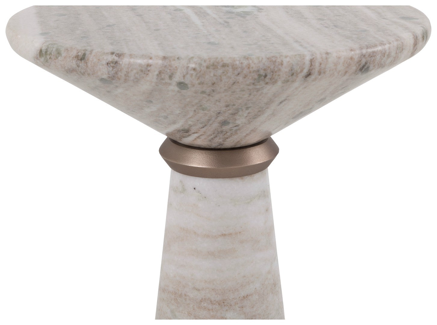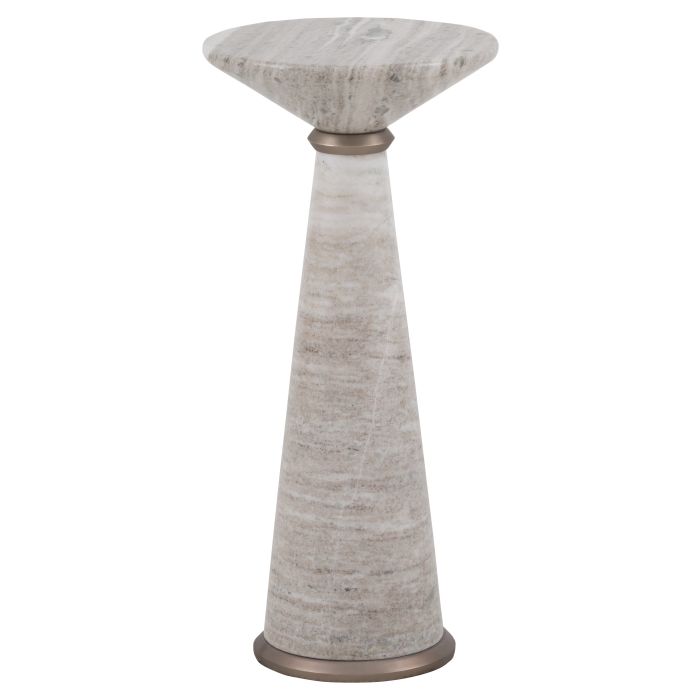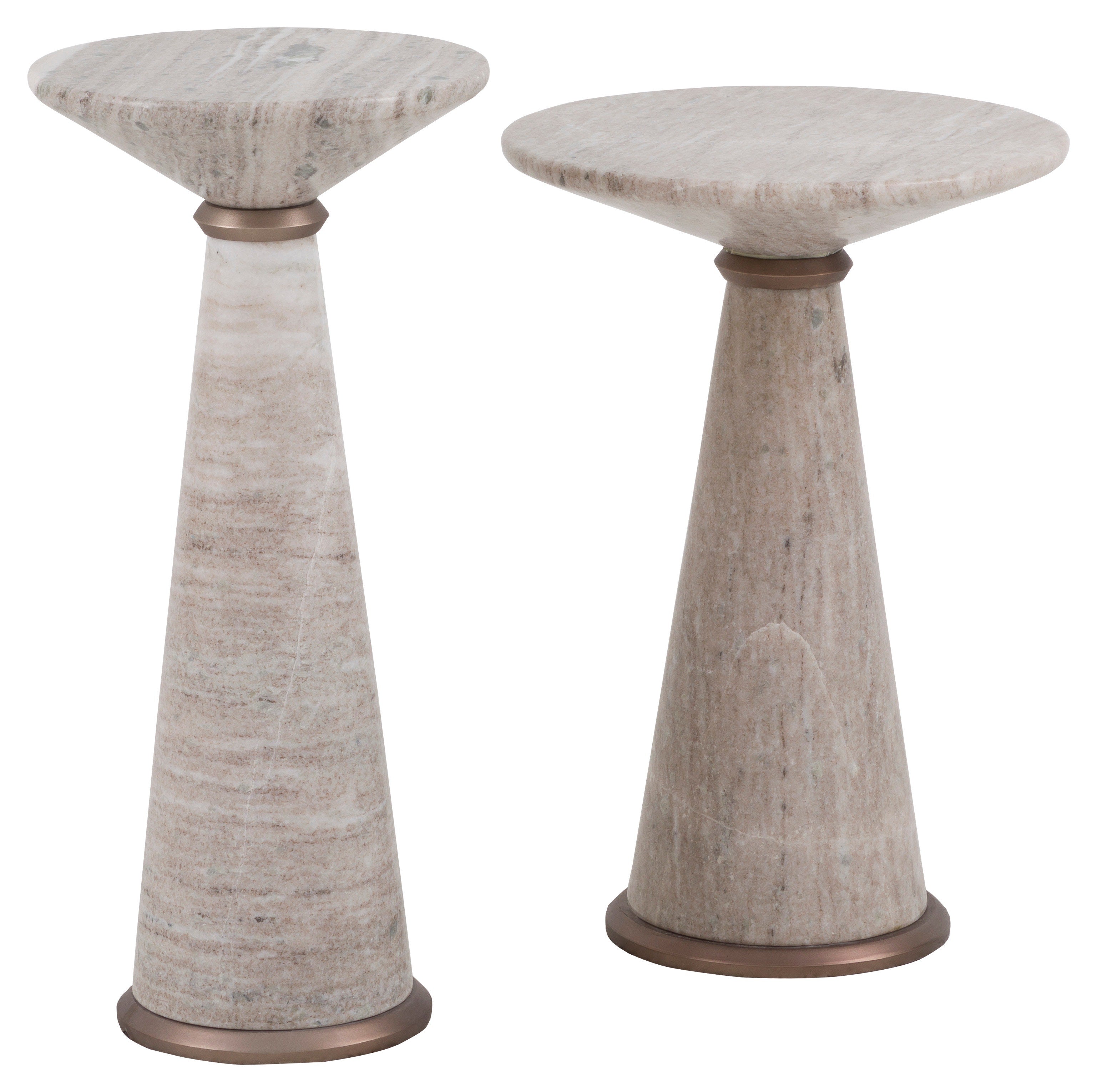 These martini tables feature a circular or cylindrical design, often compact in size, making them perfec for placing drinks or small decorative items within arm's reach. The distinguishing feature is the use of high-quality marble for both the tabletop and the base. The matte marble surface showcases the natural beauty of the stone's unique veining and color variations. This table adds an element of sophistication and opulence to any room.