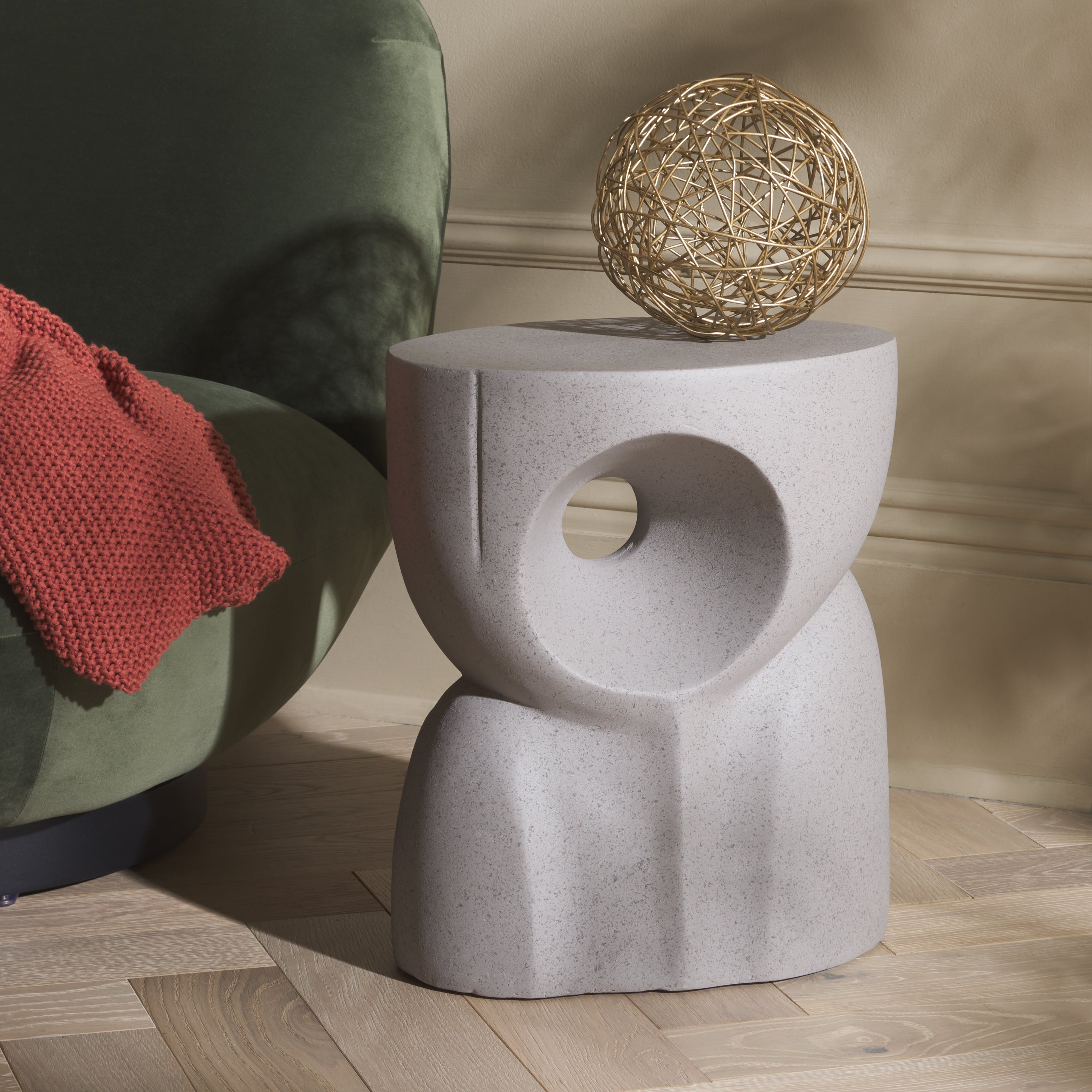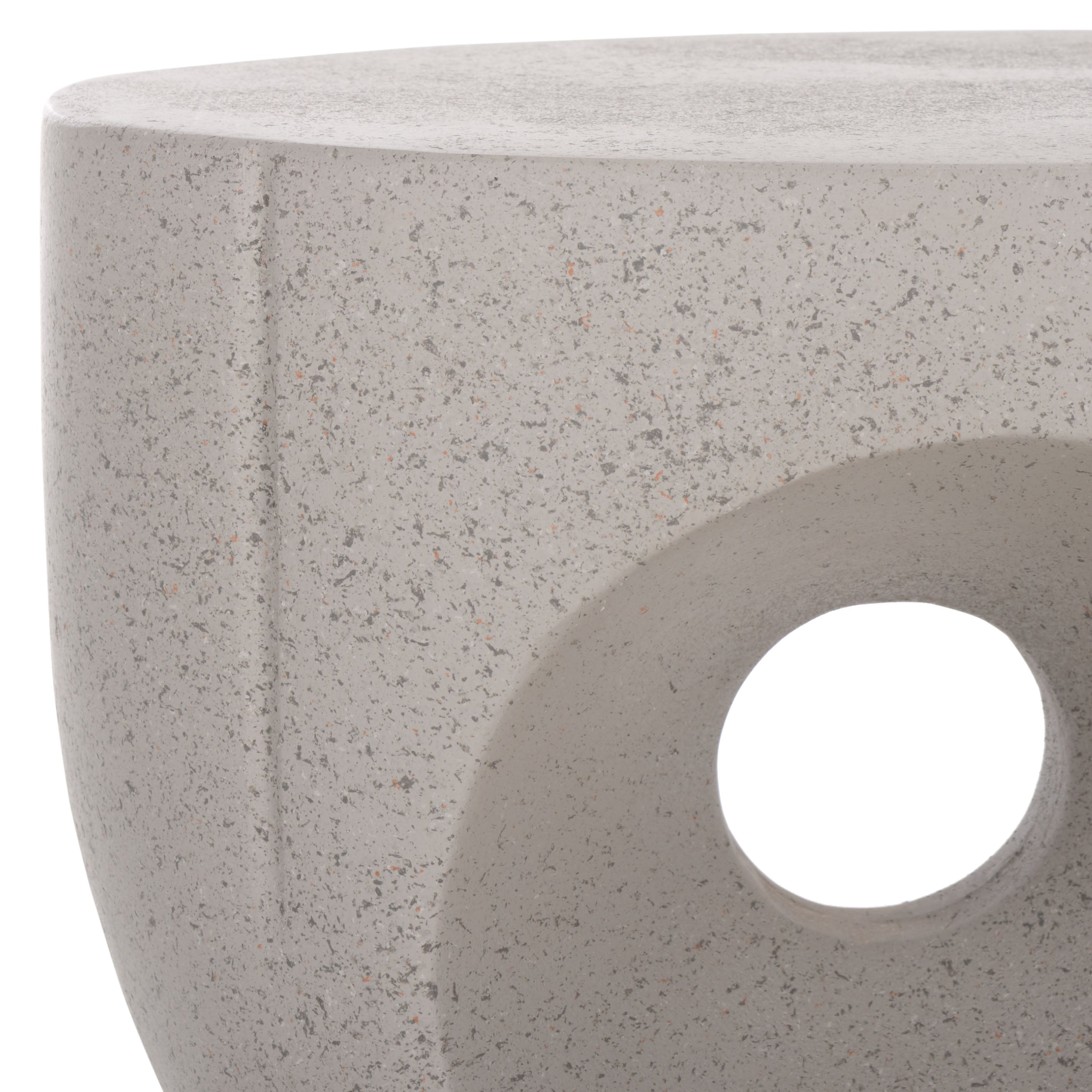 Add gallery-worthy impact to any corner with our Abbi accent table. With an organic and sculptural silhouette, our accent table attains an artful and eye-catching presence. Its gorgeous curves and striking cut-out invite curiosity and make the eye linger. Crafted from a durable material, our accent table showcases a subtly speckled, plaster-like finish. It creates an elevated display of your decor items and keeps essentials within easy reach to serve as the perfect complement to an art-forward reading nook, lounge, or bedroom.