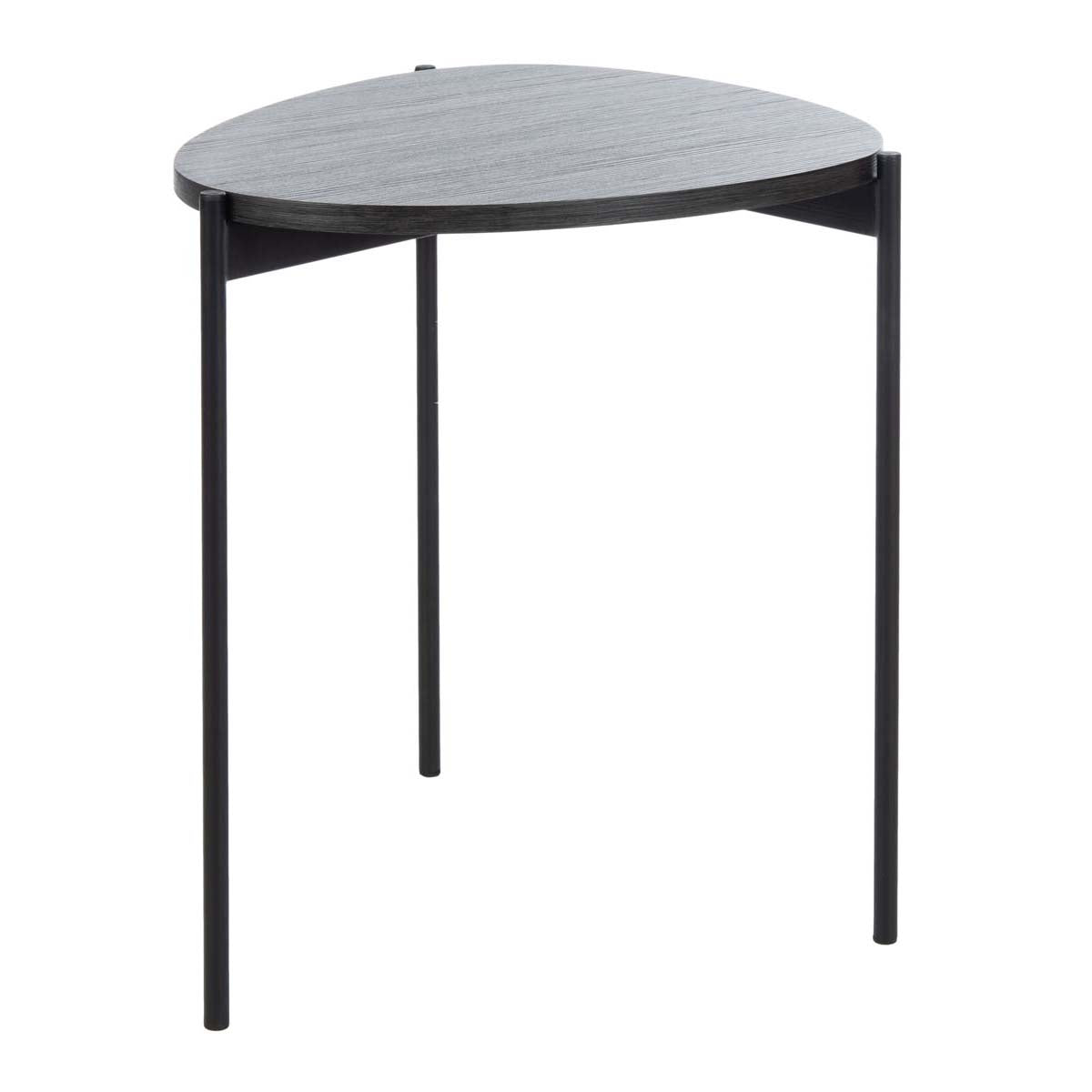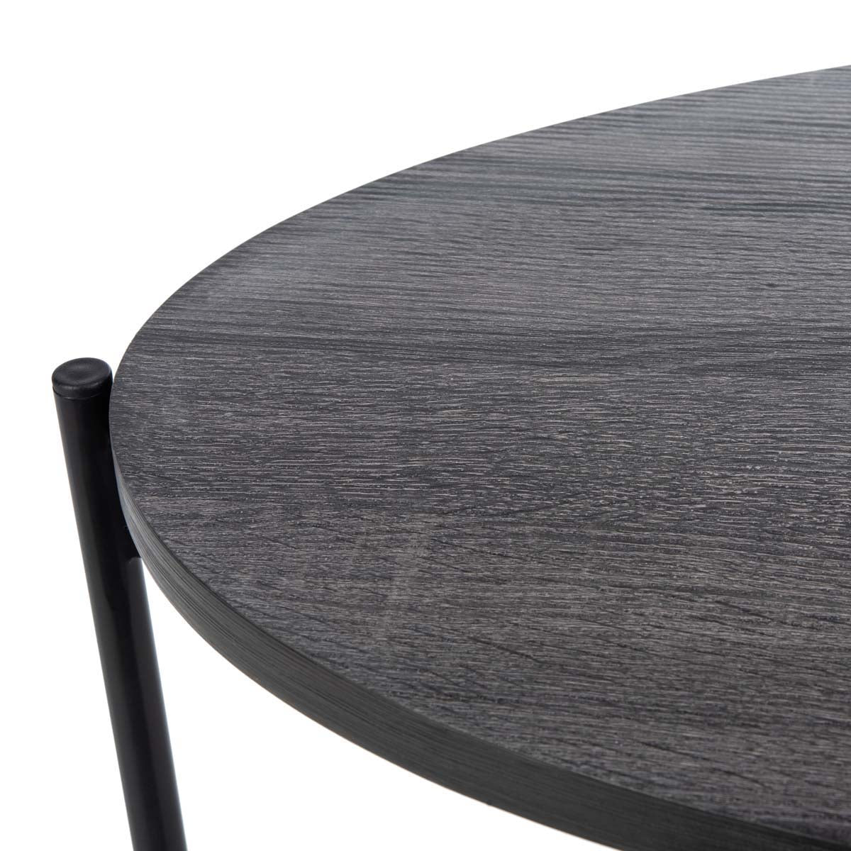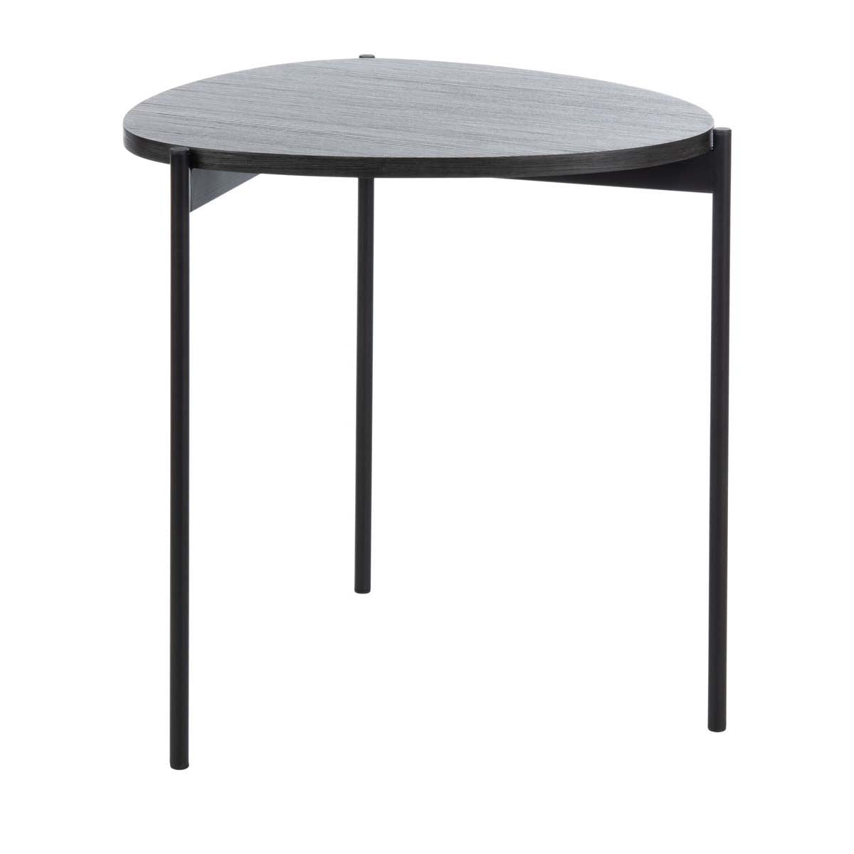 An instant invitation to gather, the warm Scandinavian style of this chic contemporary side table transforms any living room. Designed with a smooth minimalist dark grey oak finish, its wood top and three slender black iron legs make it a modern luxury.