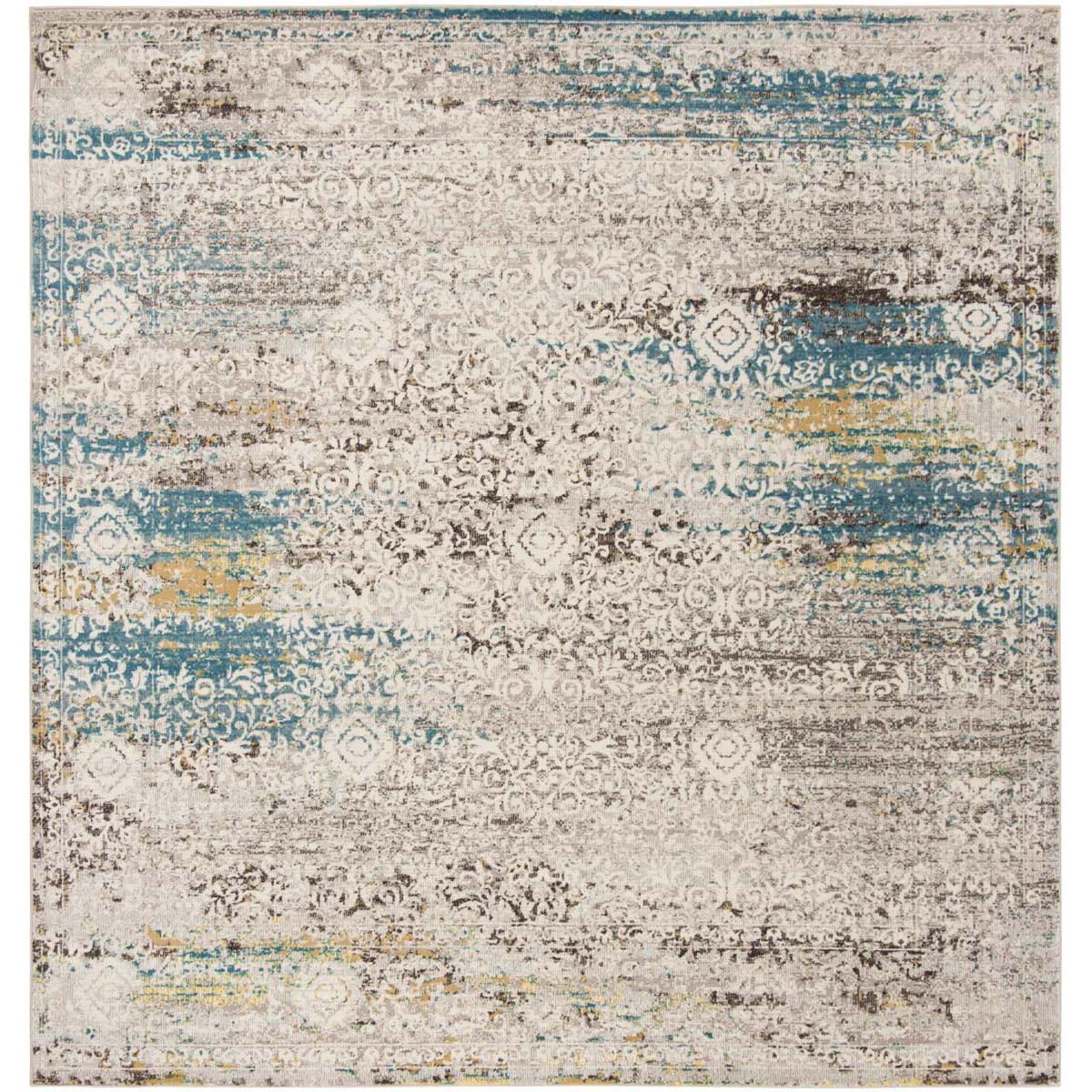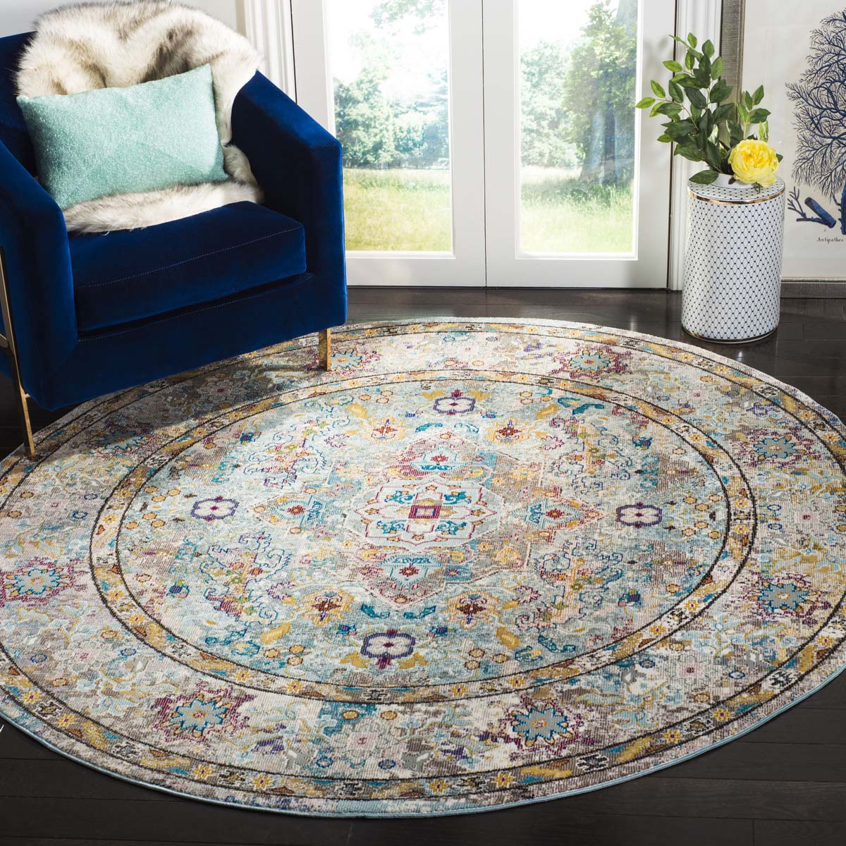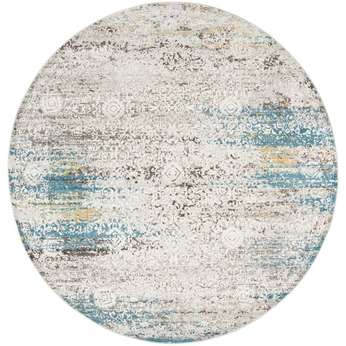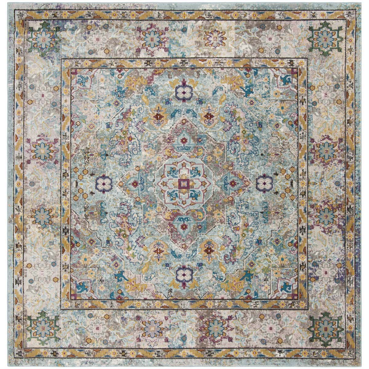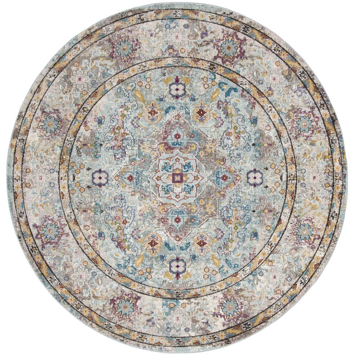 Designed with a sophisticated transitional style, it seamlessly blends traditional charm with contemporary flair, making it a versatile addition to any decor. The rug features a harmonious blend of beige and blue tones that are accented with subtle hints of gold, red, and green, creating a rich yet understated backdrop that complements a variety of color schemes.