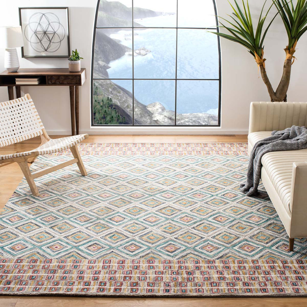 The trendy new look of rustic-chic decor is marvelously captured in the tribal-art inspired designs and sublime color palette of the Aspen Collection. Simple yet expressive, Aspen revives tribal motifs with fashionable hues and a comfort-soft feel underfoot. Made using pure wool in a low loop pile, this striking collection is perfectly styled for classy-casual home decor.