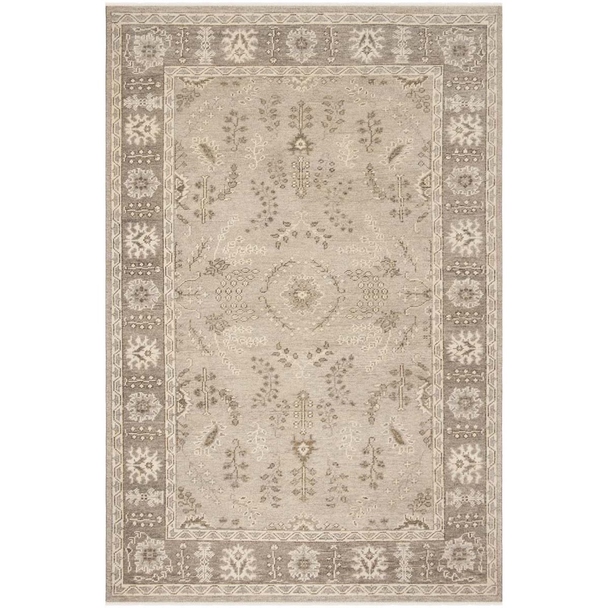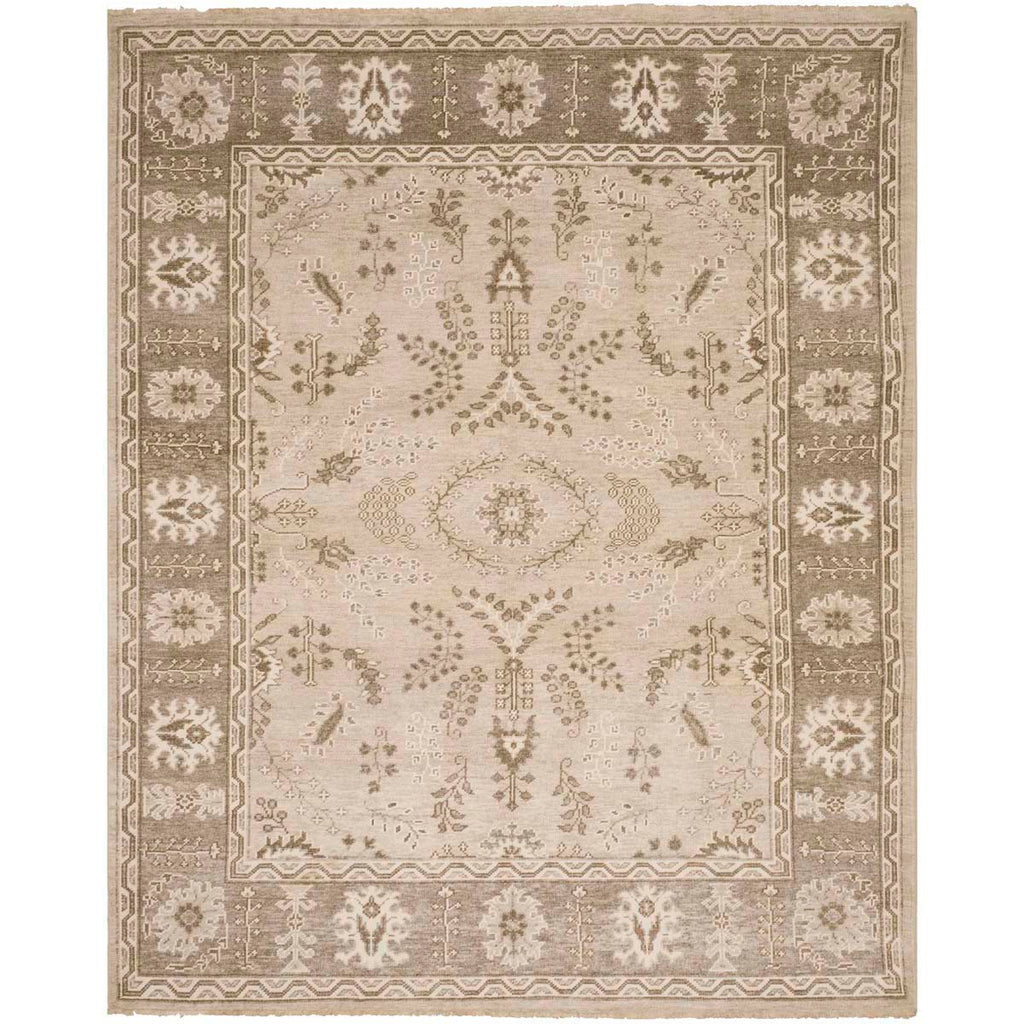 The same exquisite aesthetic that created the Taj Mahal and the jewels of Mughal emperors now inspires an Oushak rug of extraordinary detail. Hand-knotted of high quality wool by artisans in India, this overall floral design is updated with fresh fashion colors.