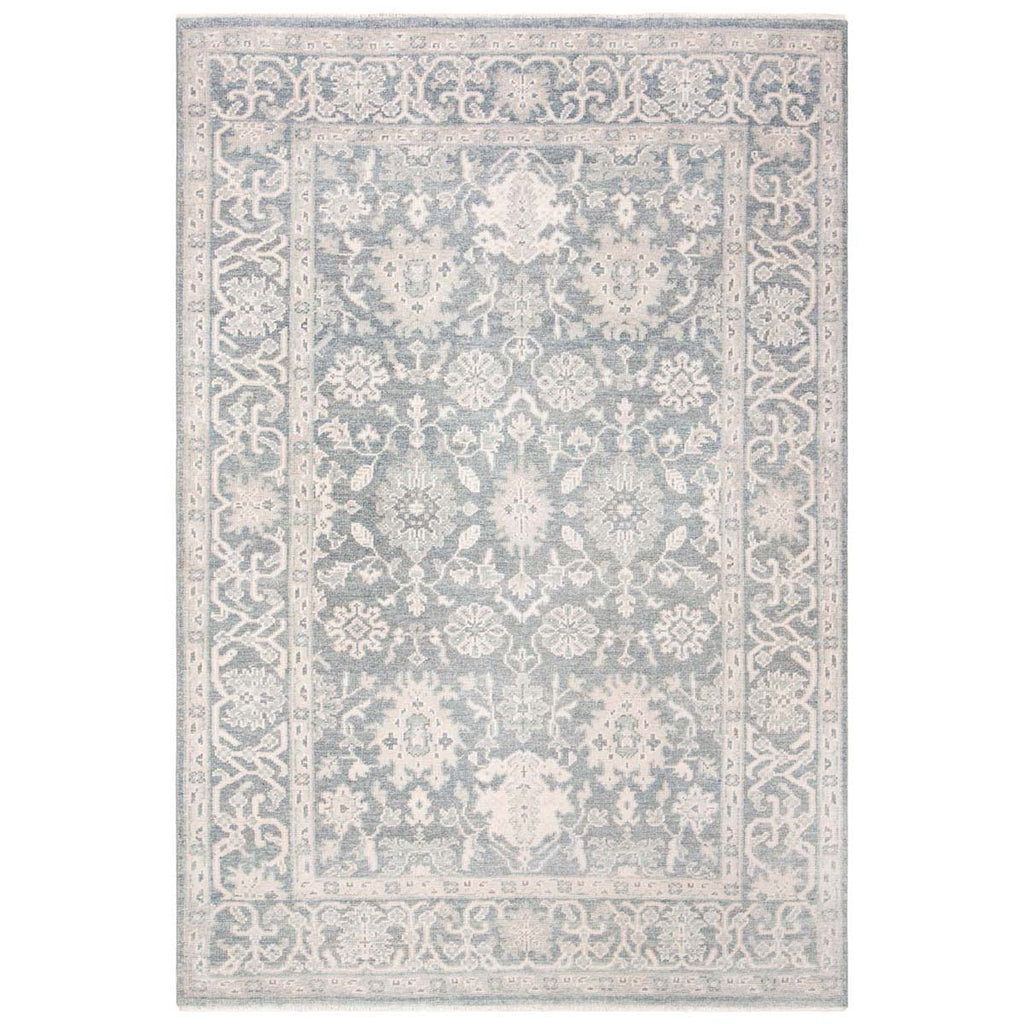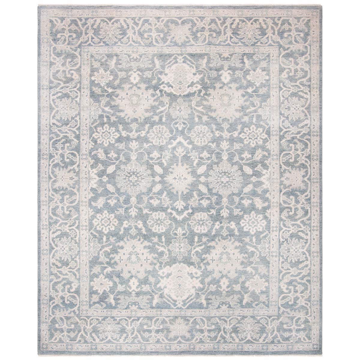 The same exquisite aesthetic that created the Taj Mahal and the jewels of Mughal emperors now inspires an Oushak rug of extraordinary detail. Hand-knotted of high quality wool by artisans in India, this overall floral design is updated with fresh fashion colors.