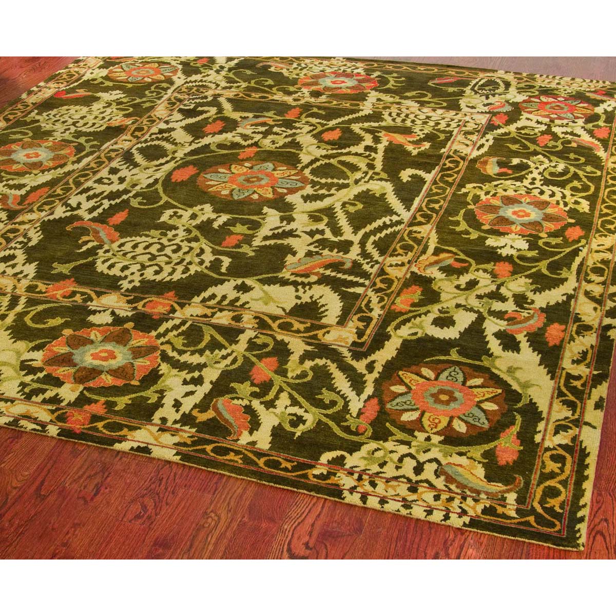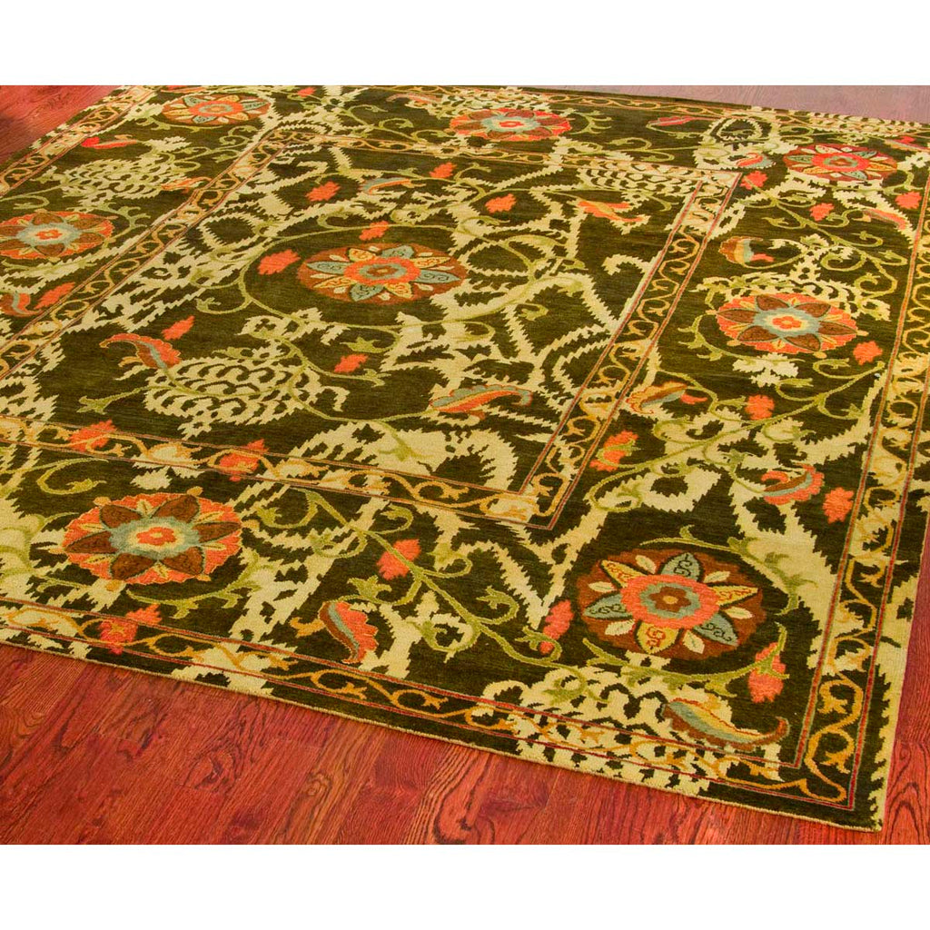 Our new rug redefines globalism, connecting the cultures of Europe, Turkey and the Muslim world in a fresh new design and color palette. The Oushak weave attributed to Turkey is hand-knotted in India recreating the folk art-inspired Suzani needlepoint mo