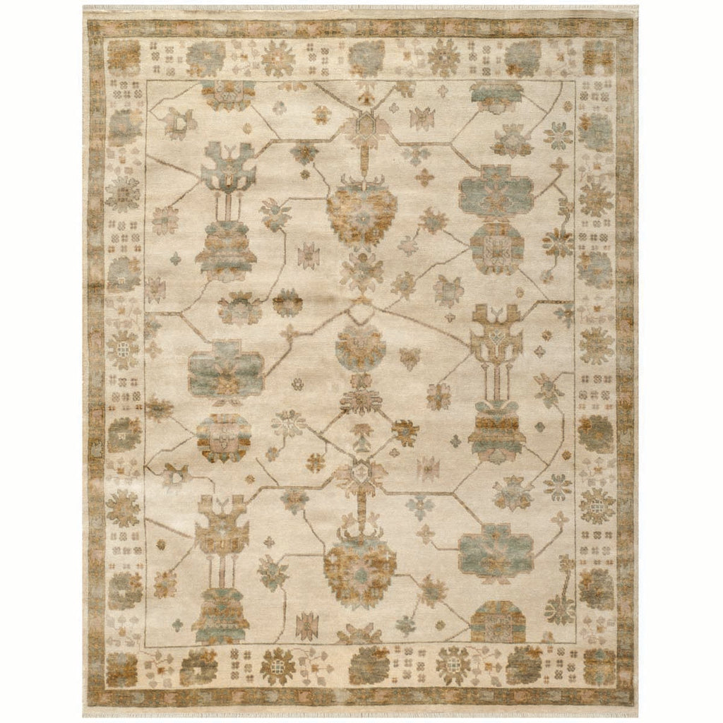 Updates the splendor of antique Oushak rug artistry for today’s décor. Features an heirloom design of classic blossoms, climbing vines, and detailed geometric motifs. The ideal area rug to add a touch of elegance to contemporary furnishings.