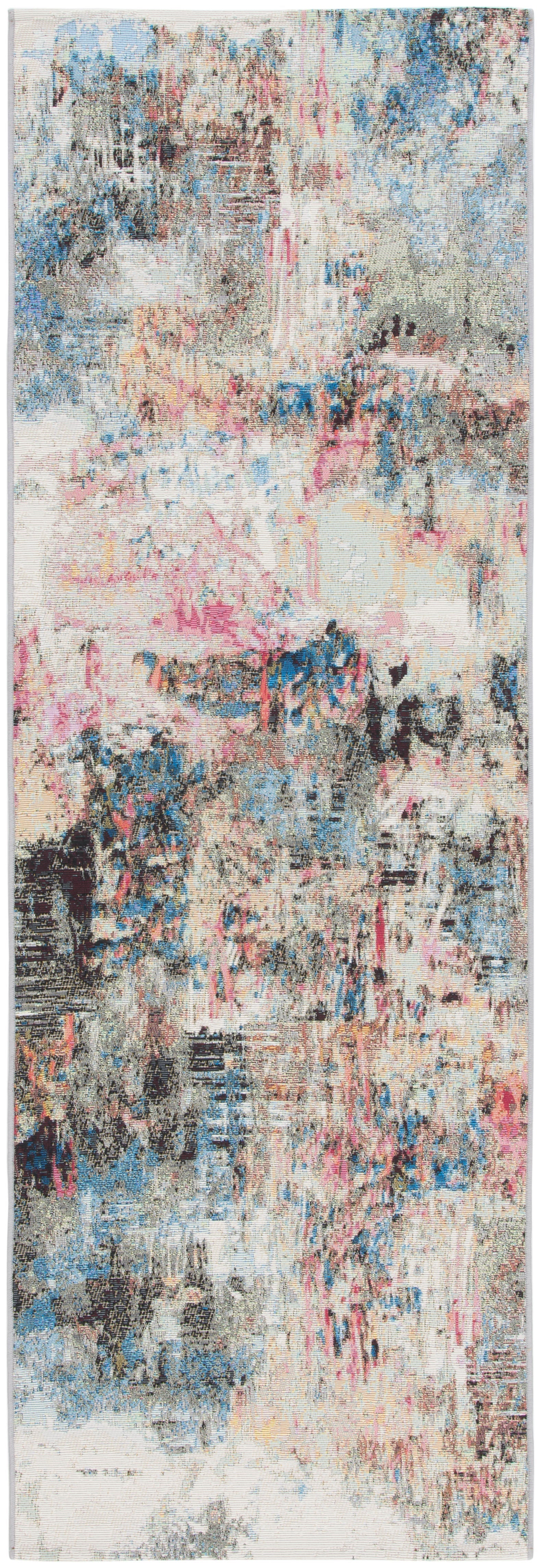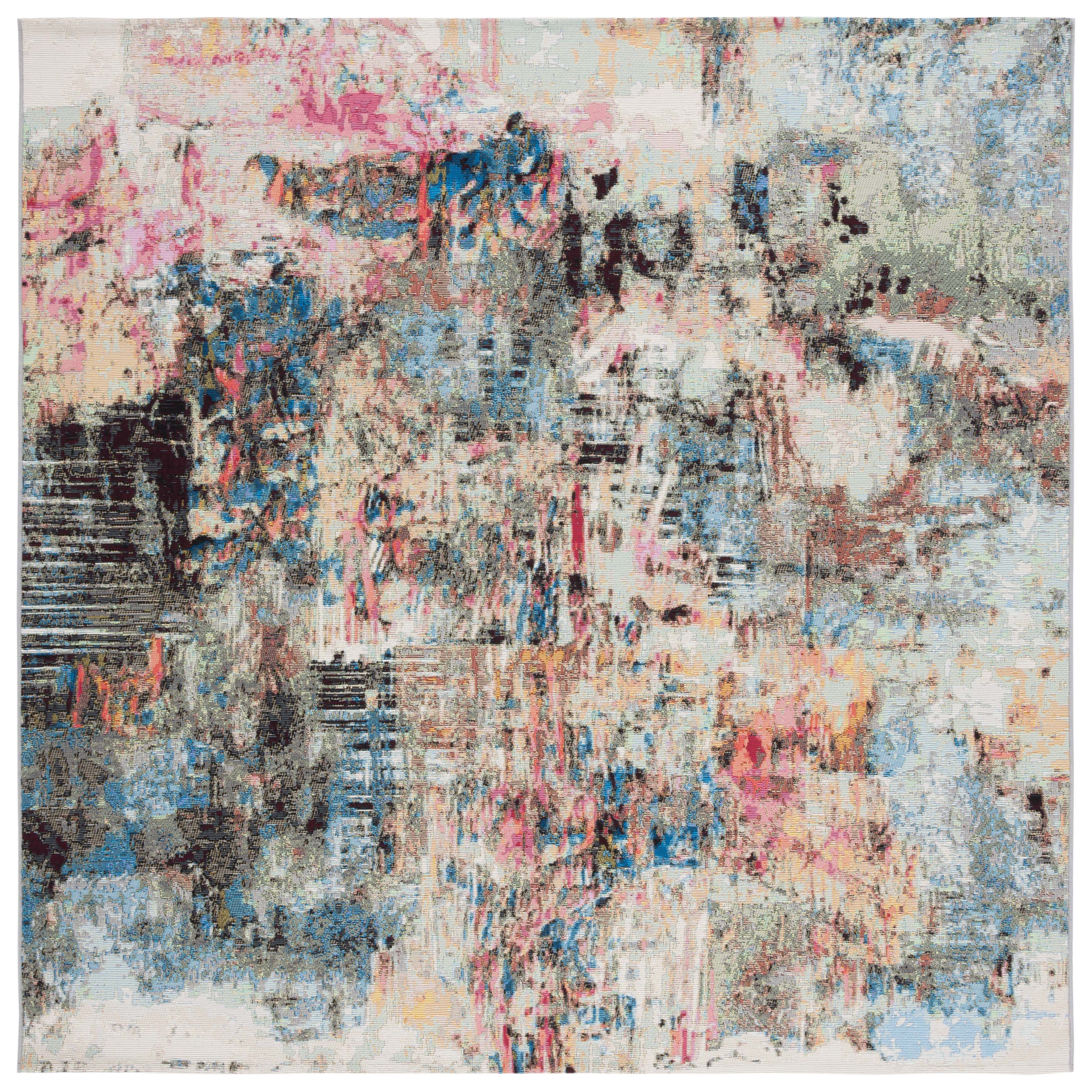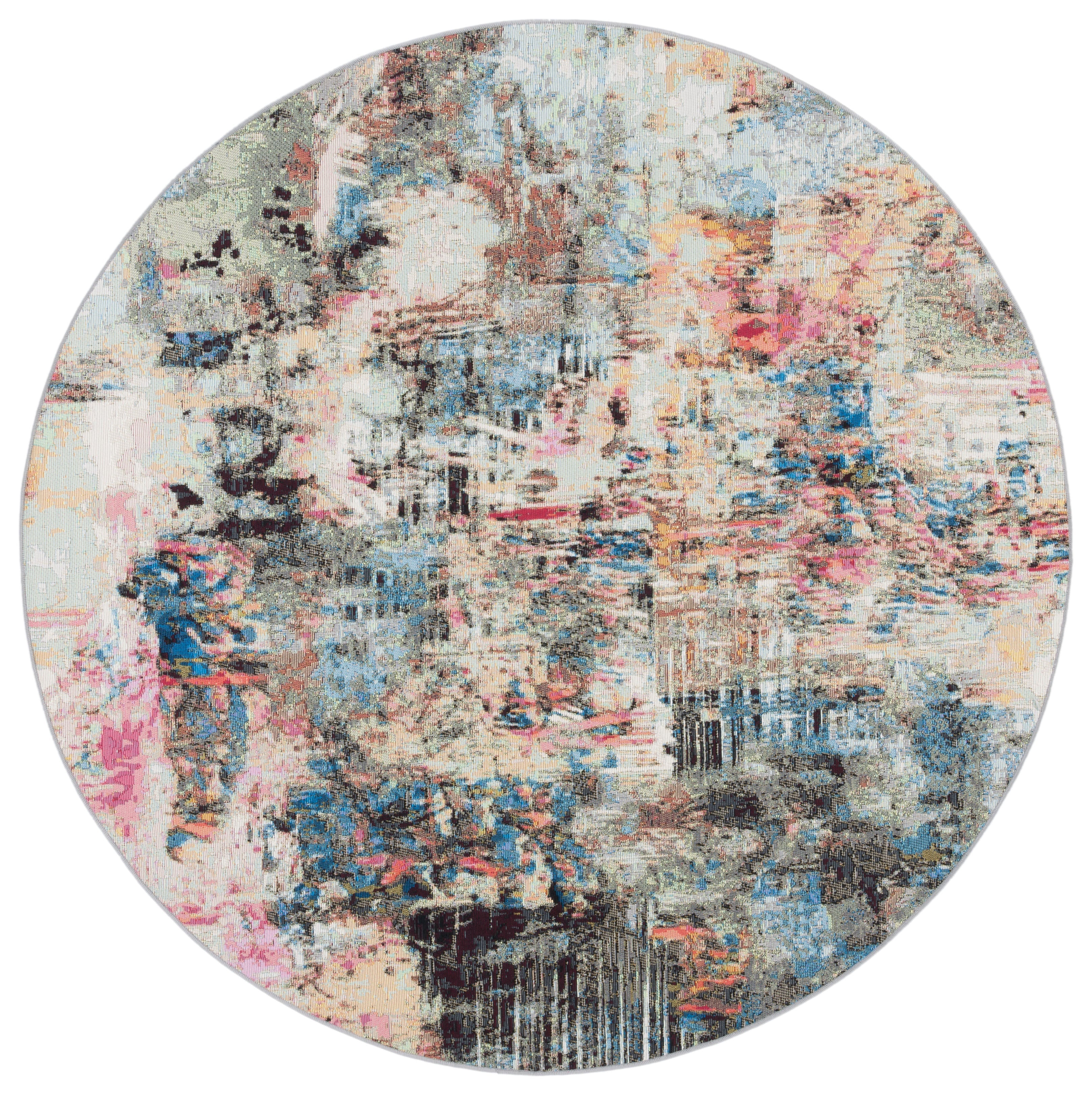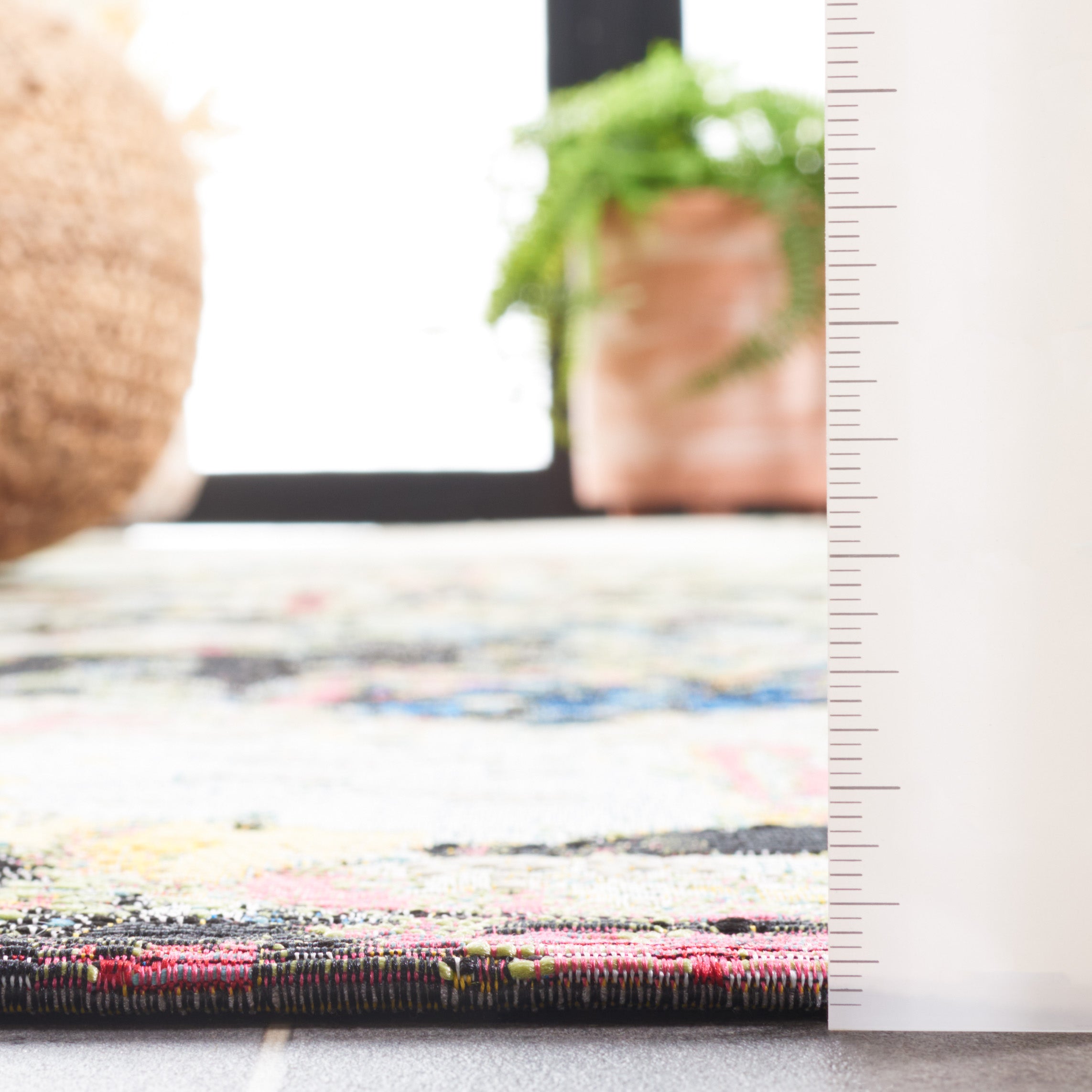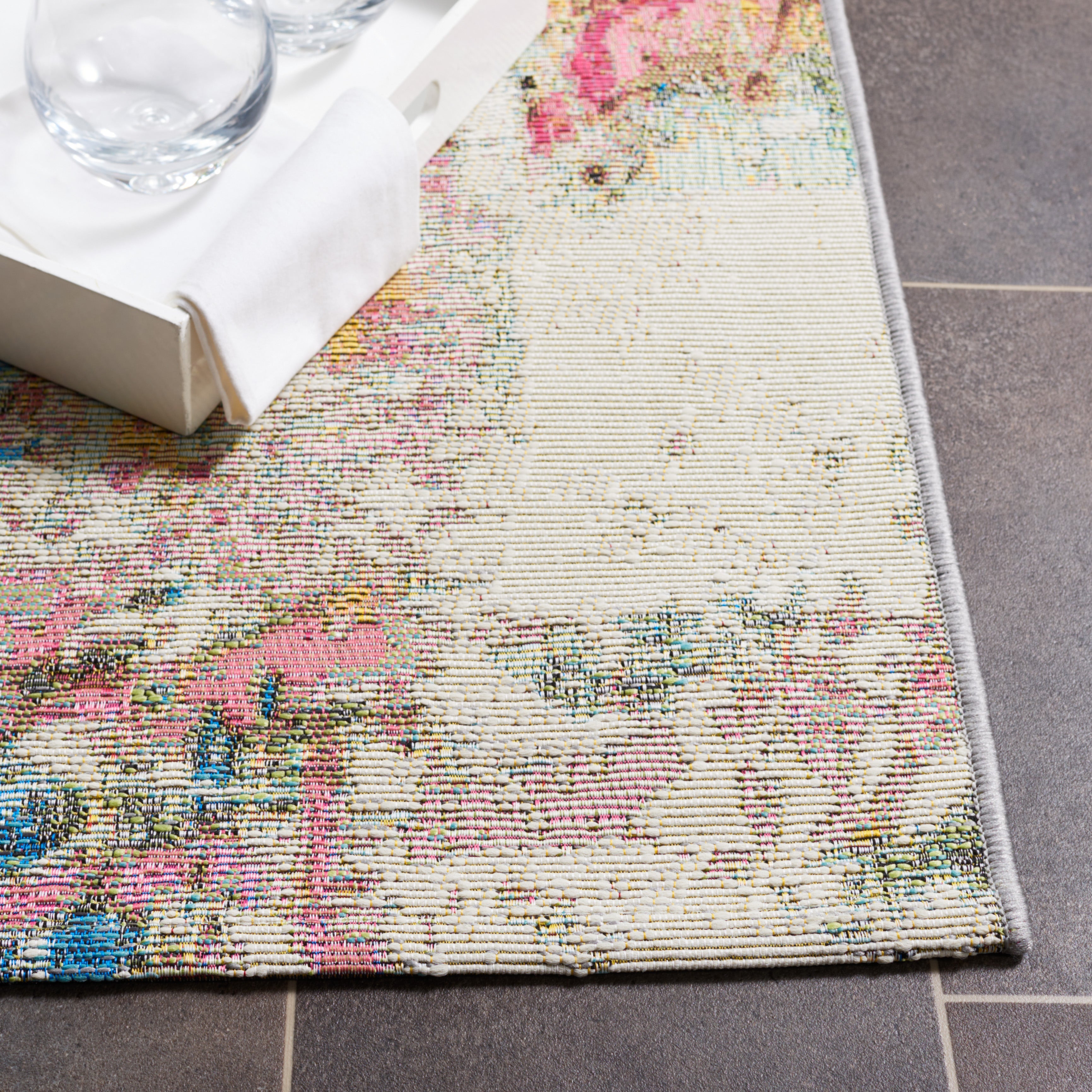 The area rug features a beautiful and intricate pattern that melds a palette of green ivory with subtle hints of black rust, creating a visually stunning artistic statement that embodies modern aesthetics. The pattern, despite the gentle wear appearance, is rich in detail and sure to captivate the eye, enhancing any indoor or outdoor setting.