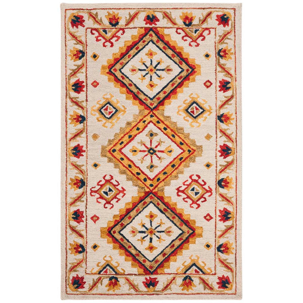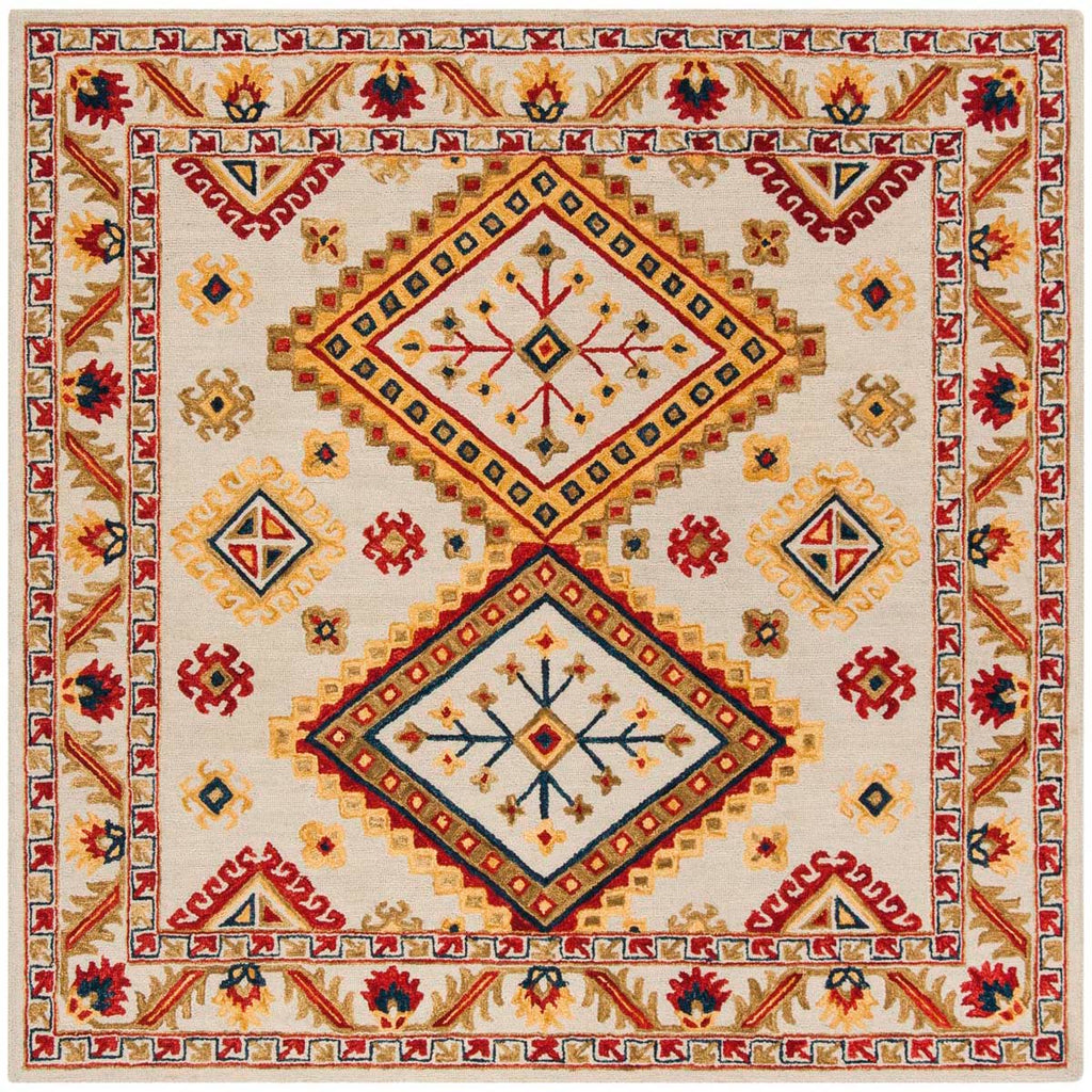 The trendy new look of rustic-chic decor is marvelously captured in the tribal-art inspired designs and sublime color palette of the Aspen Collection. Simple yet expressive, Aspen revives tribal motifs with fashionable hues and a comfort-soft feel underfoot. Made using pure wool in a low loop pile, this striking collection is perfectly styled for classy-casual home decor.