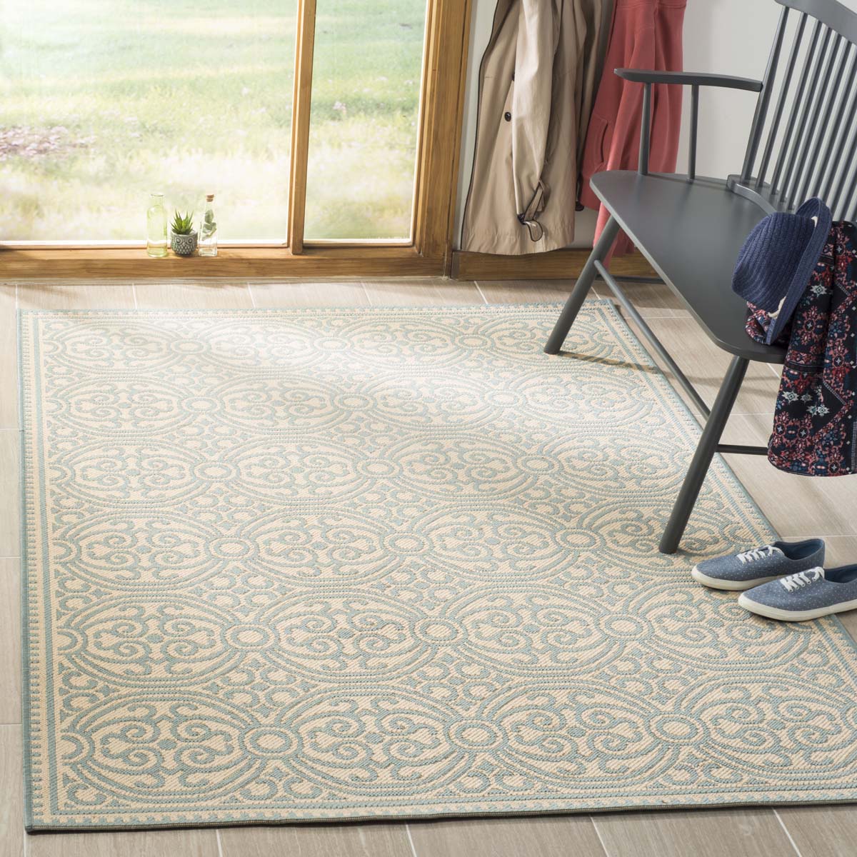 Safavieh Linden 100 Rug Collection LND134K - Aqua / Cream