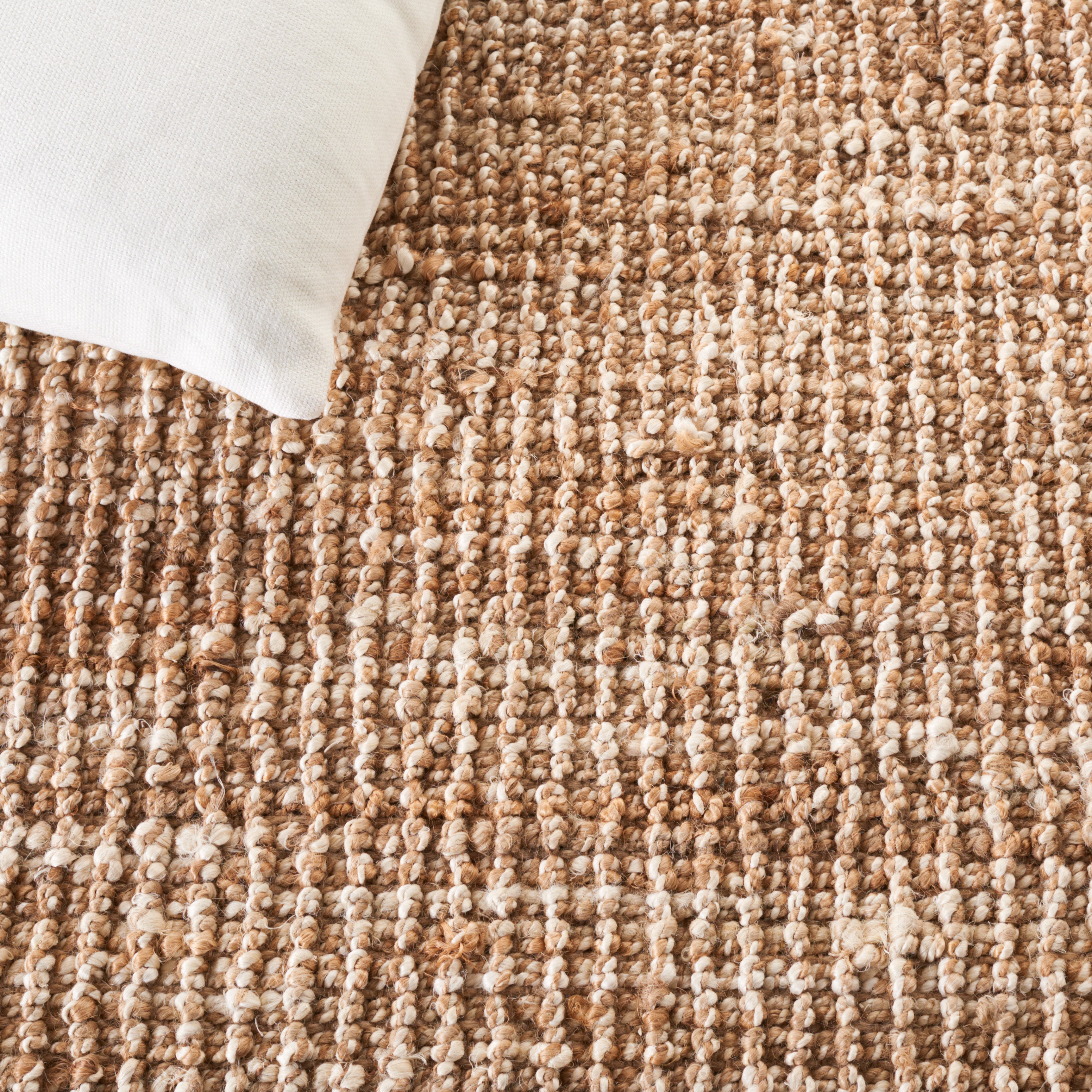 The flat weave style is not just pleasing to the eye; it's practical for high-traffic areas, offering worry-free maintenance. The textured pattern of the rug, rich in natural variances of brown and beige hues, creates a subtle yet distinct design that complements a variety of decor themes, from rustic to contemporary.