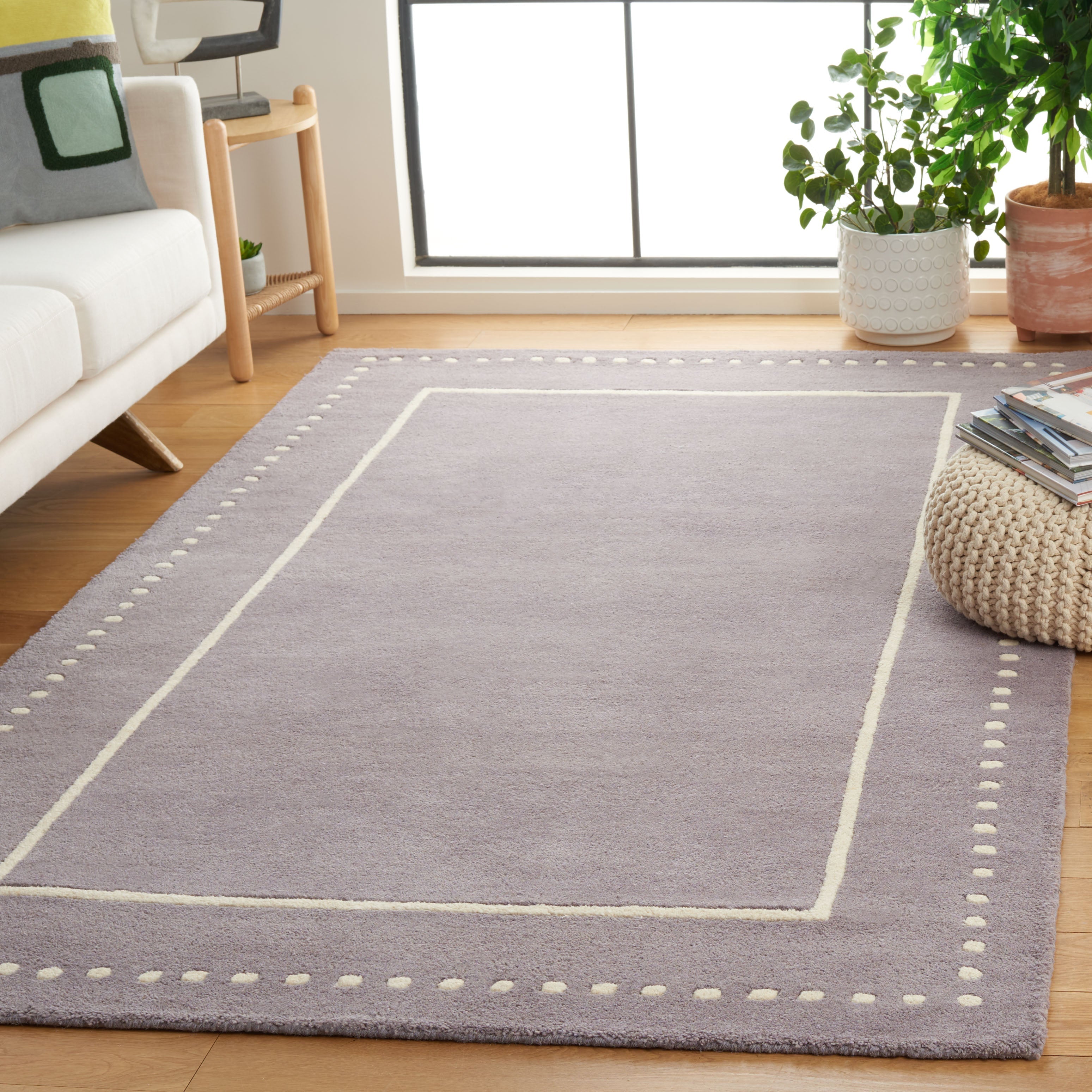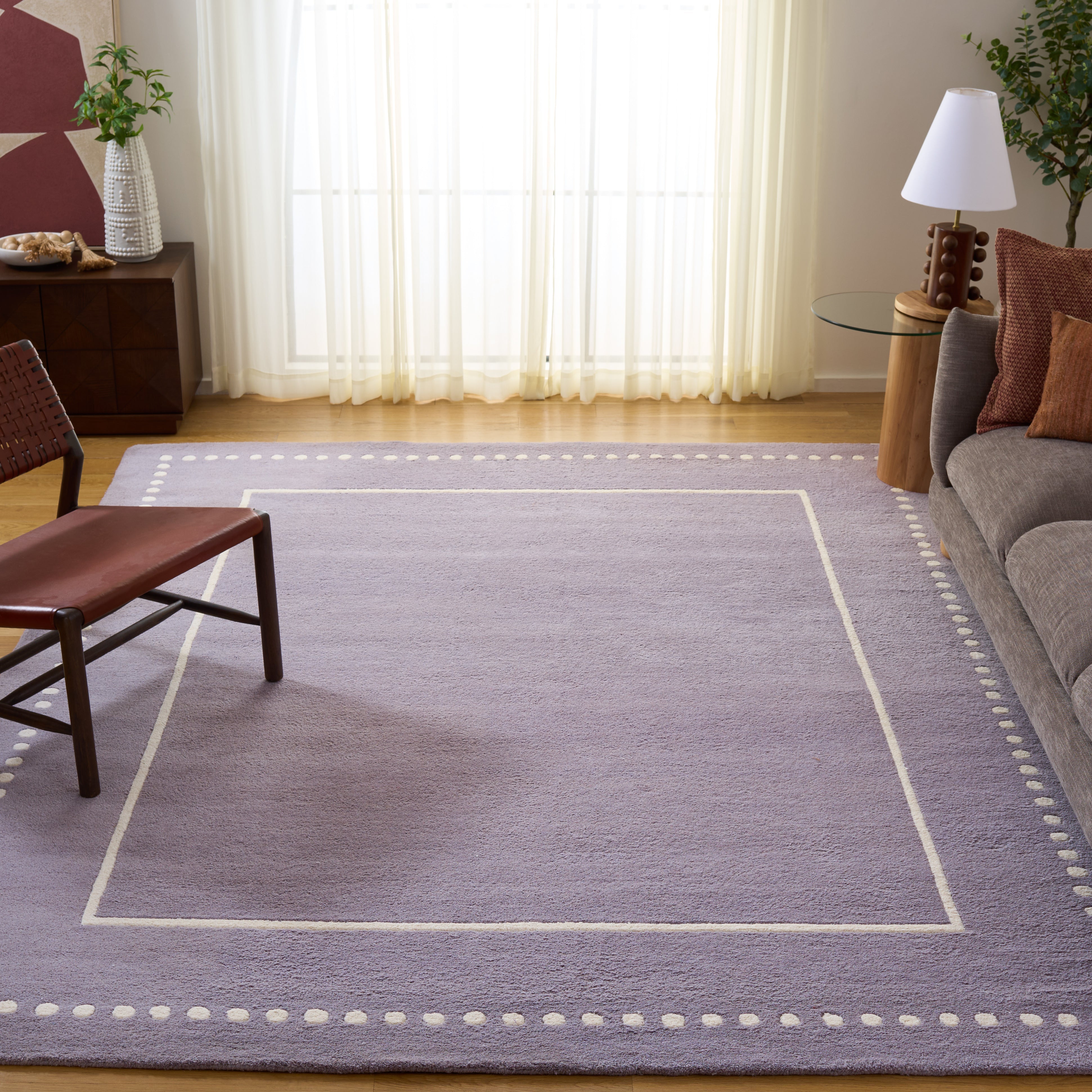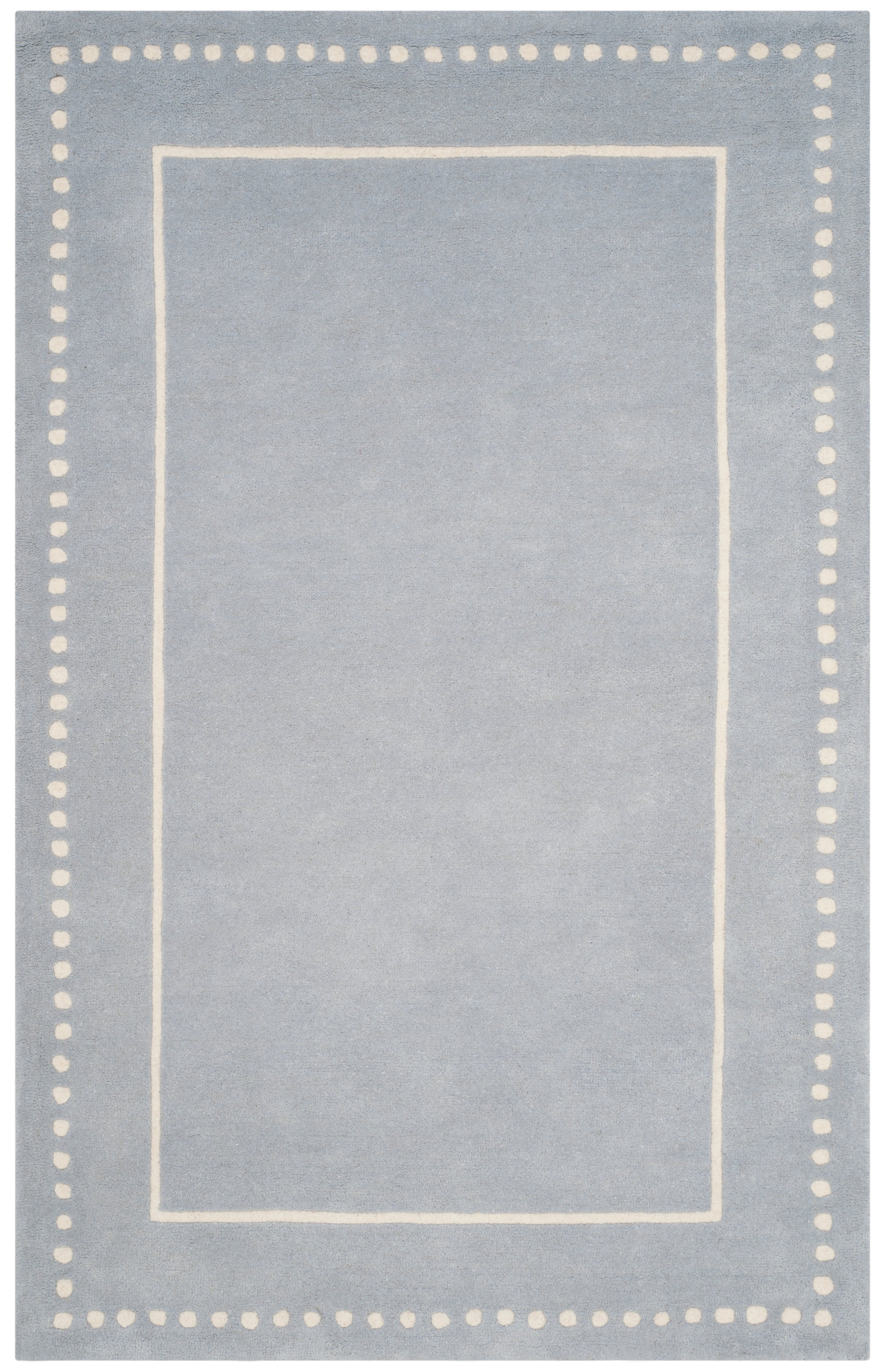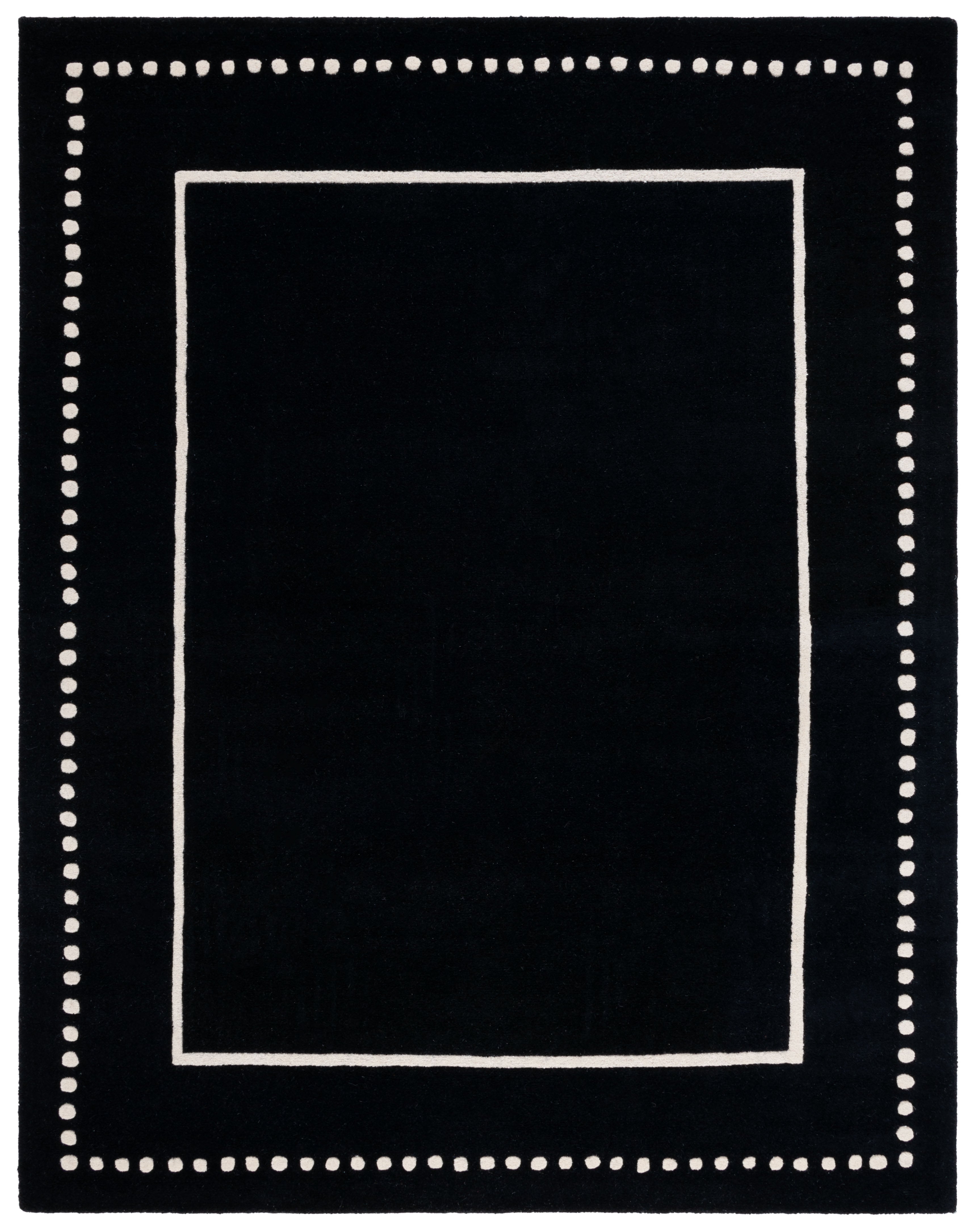 Featuring a plush pile height of 3/8", it provides the perfect combination of comfort and sophistication. The rug creates a serene and welcoming atmosphere. The appealing pattern, as depicted in the image, showcases a clean border with evenly spaced dot motifs, adding detail and interest without overwhelming the design.