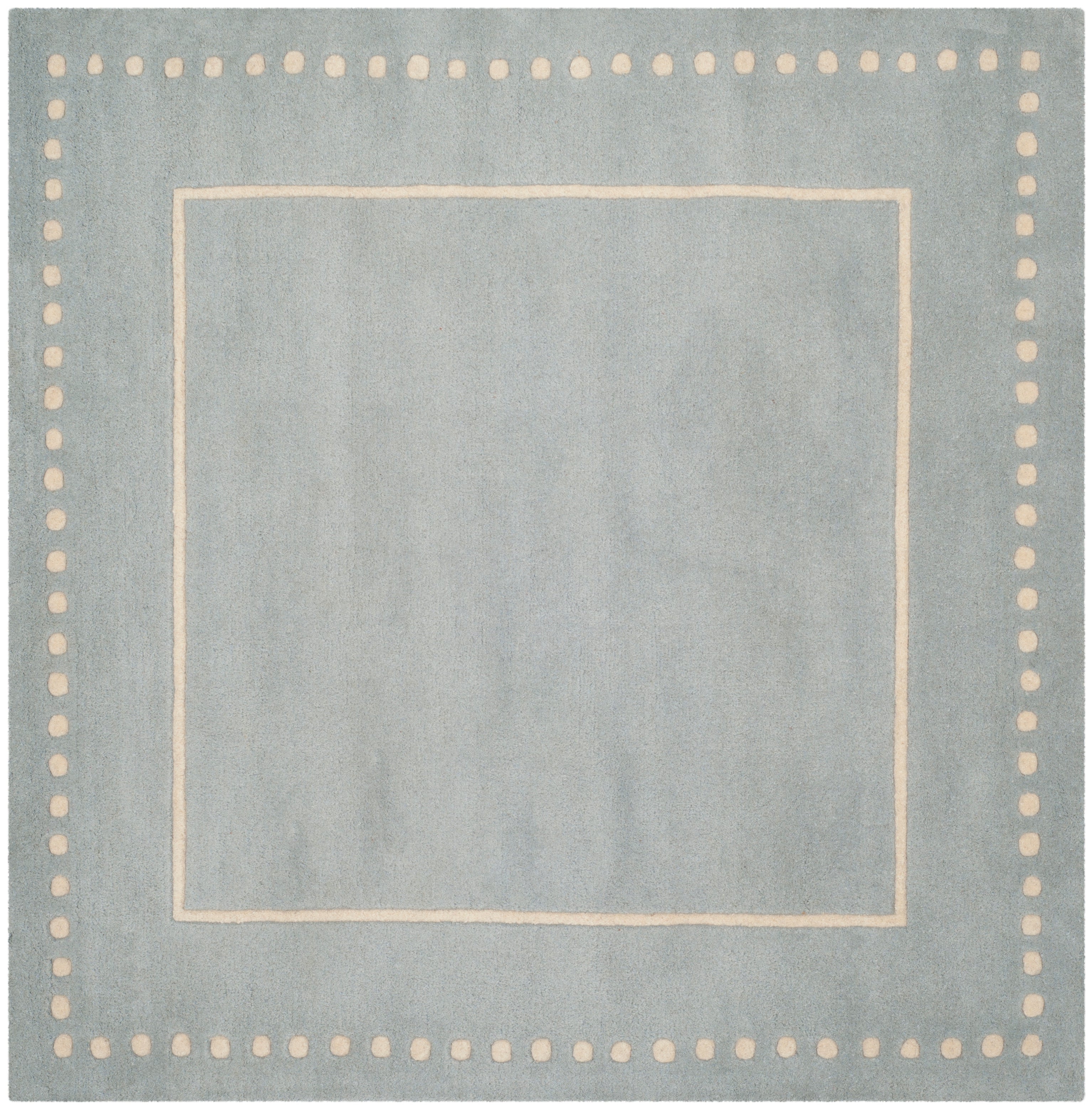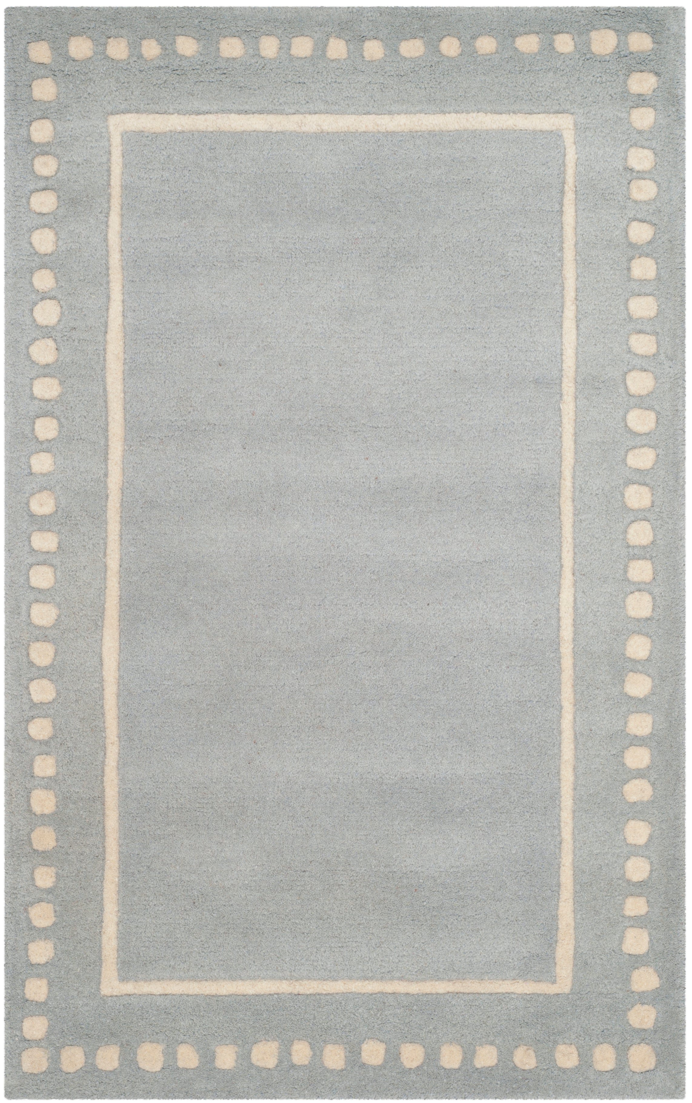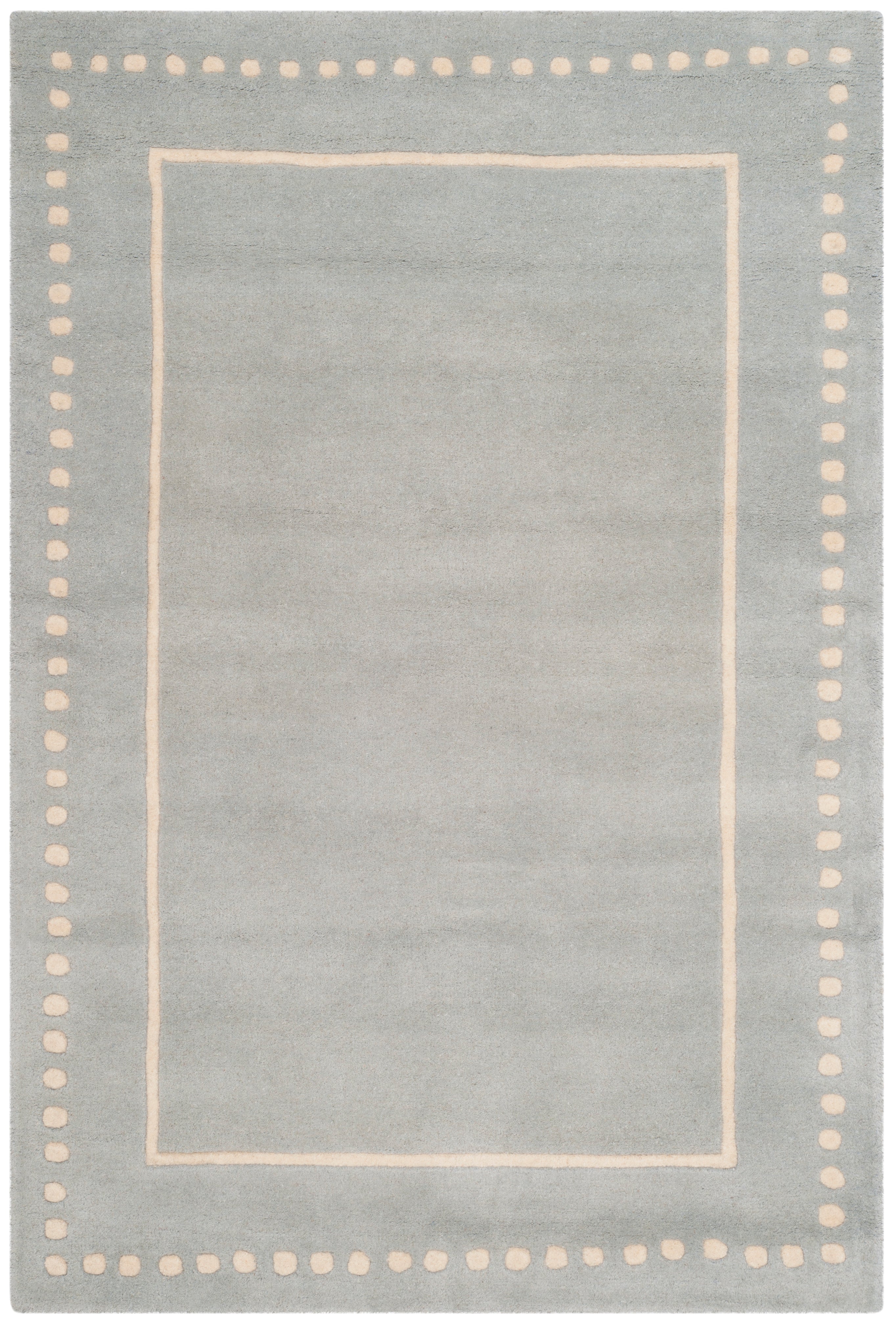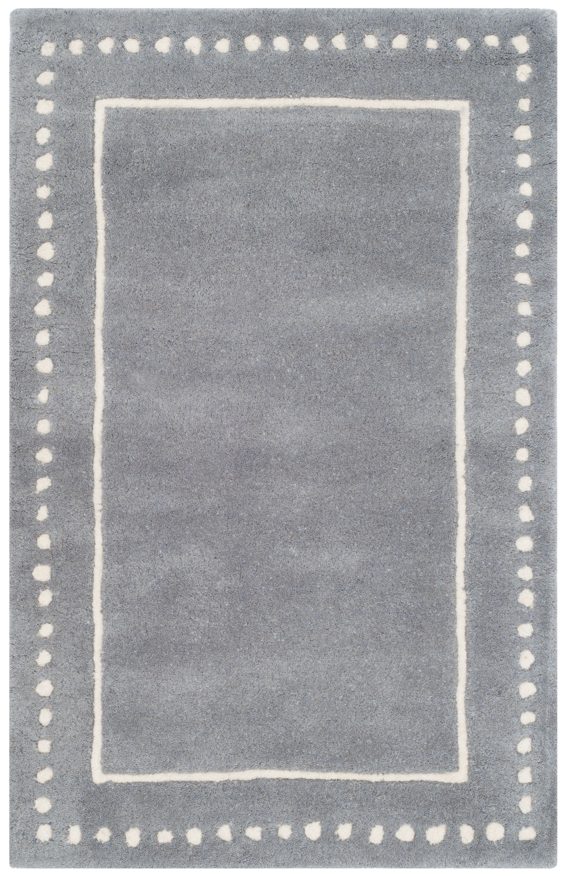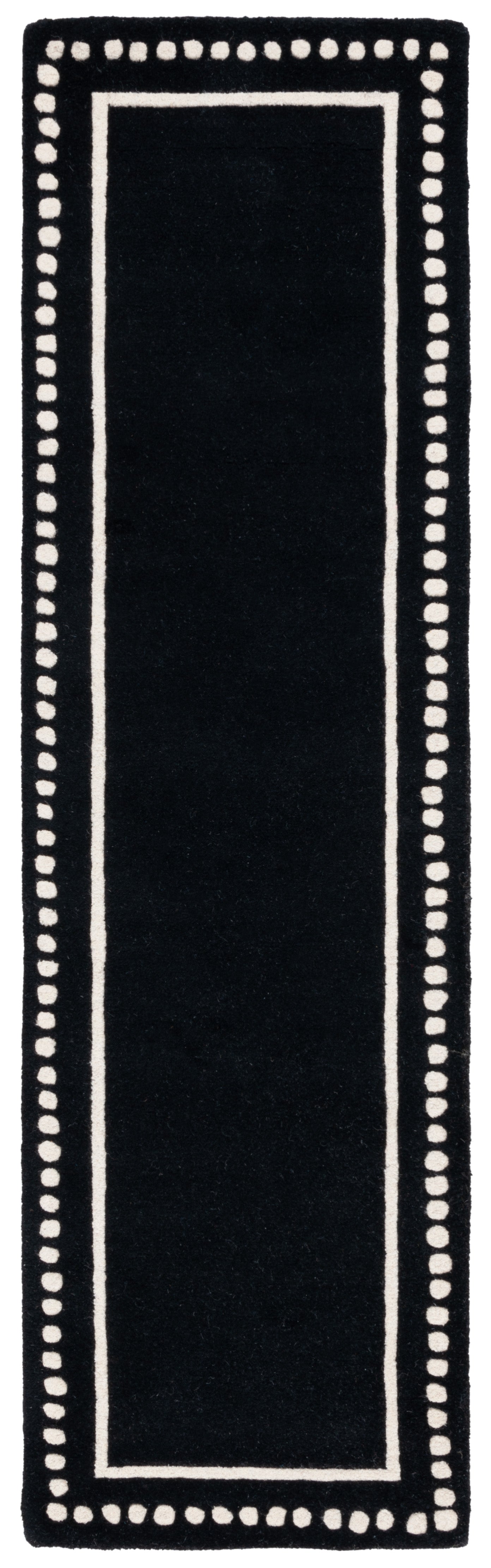 Featuring a plush pile height of 3/8", it provides the perfect combination of comfort and sophistication. The rug creates a serene and welcoming atmosphere. The appealing pattern, as depicted in the image, showcases a clean border with evenly spaced dot motifs, adding detail and interest without overwhelming the design.